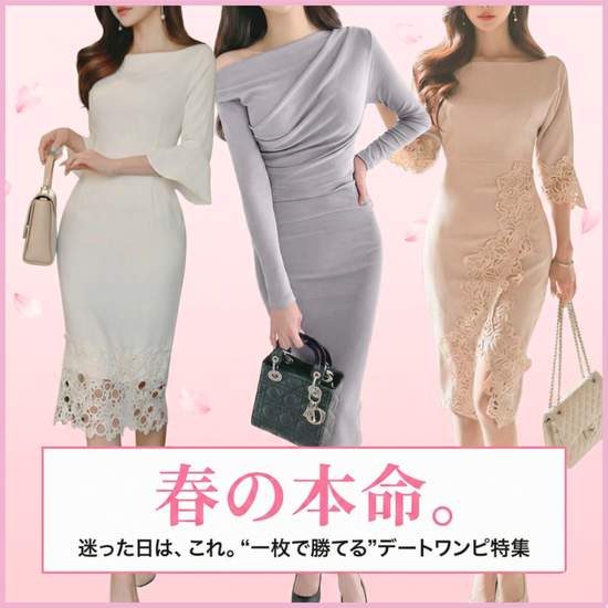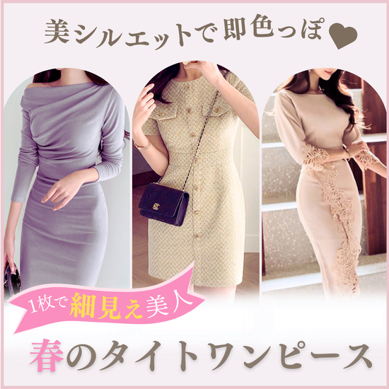 体のラインをきれいに拾って、着るだけで"女っぽい"が完成するタイトワンピース♡ デートでも、気合いを入れたい日にも、これ一枚で「可愛い」と「色気」が同時に手に入ります。春素材の軽やかタイトが続々入荷中。