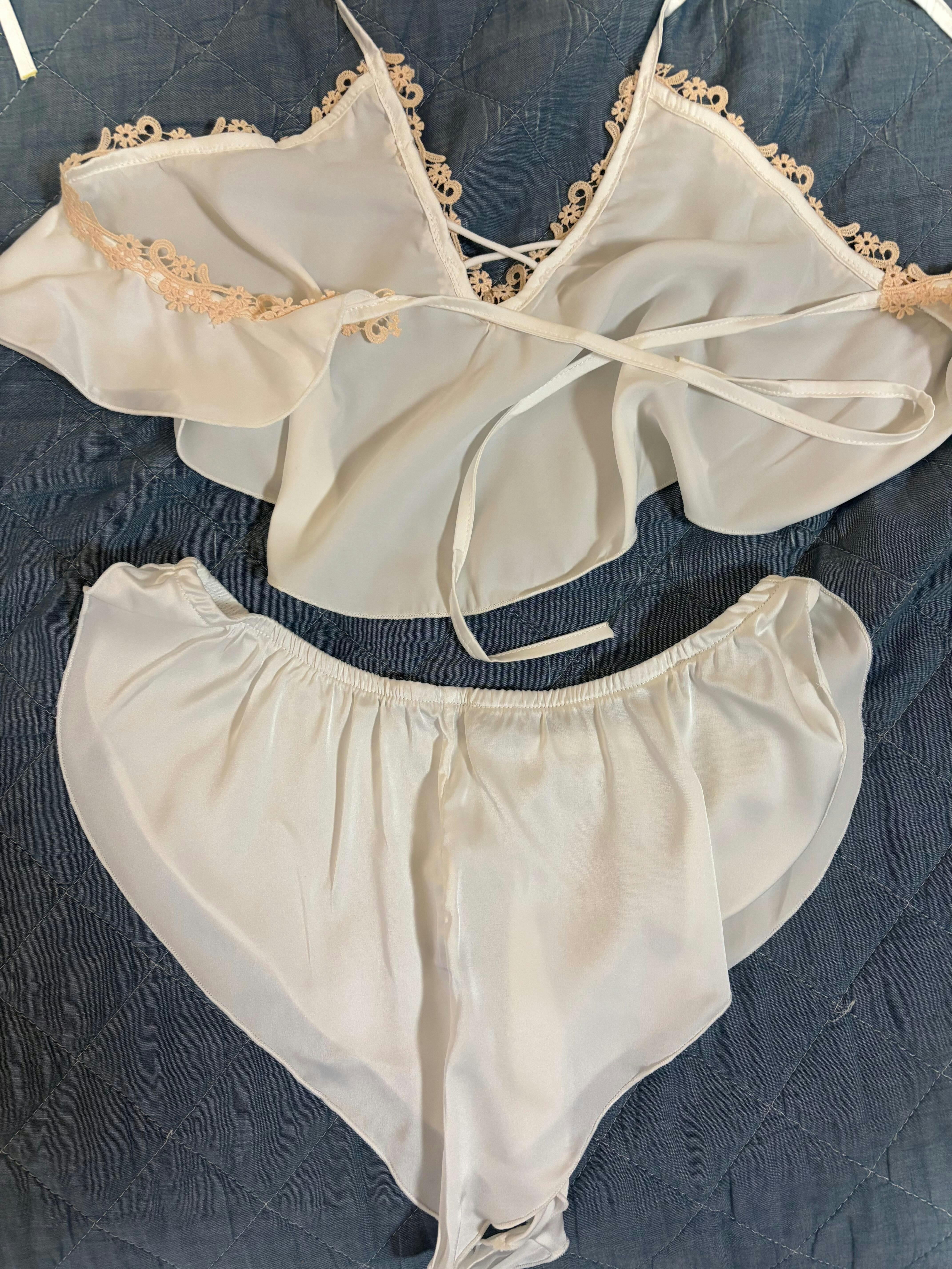 サテンレースで色気漂うルームウェア上下セット|夏の夜を彩る男ウケスタイル