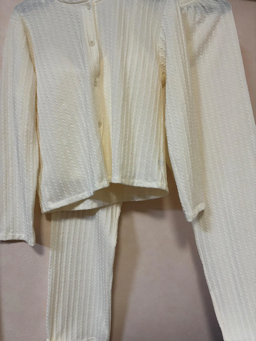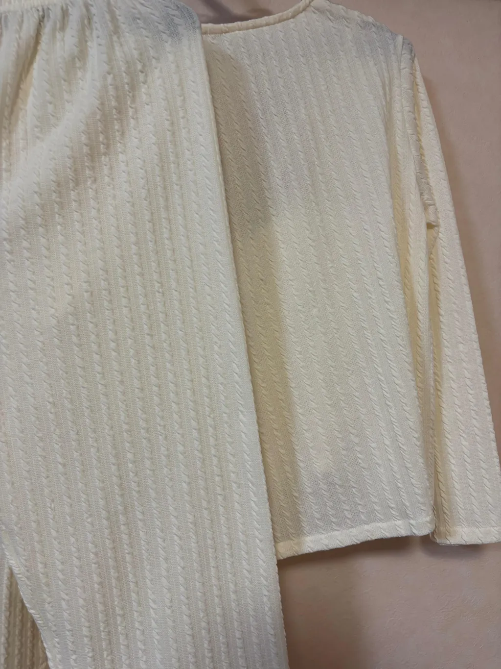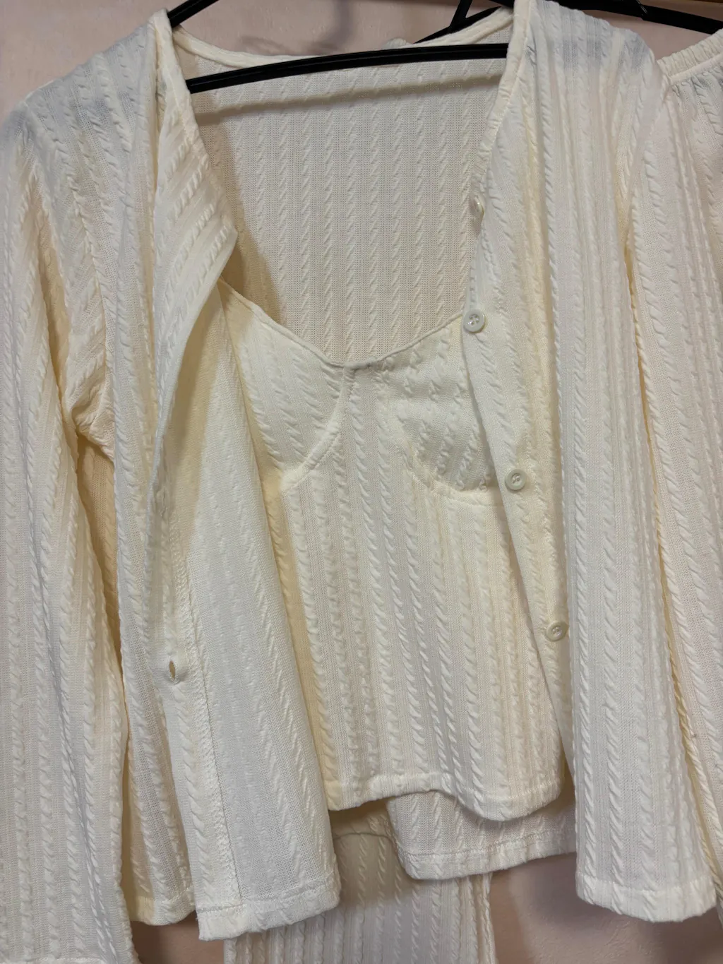 【おうちでも可愛くいたい】ワッフル生地3点セット カーデ×キャミ×ロングパンツ(胸パッド付き)