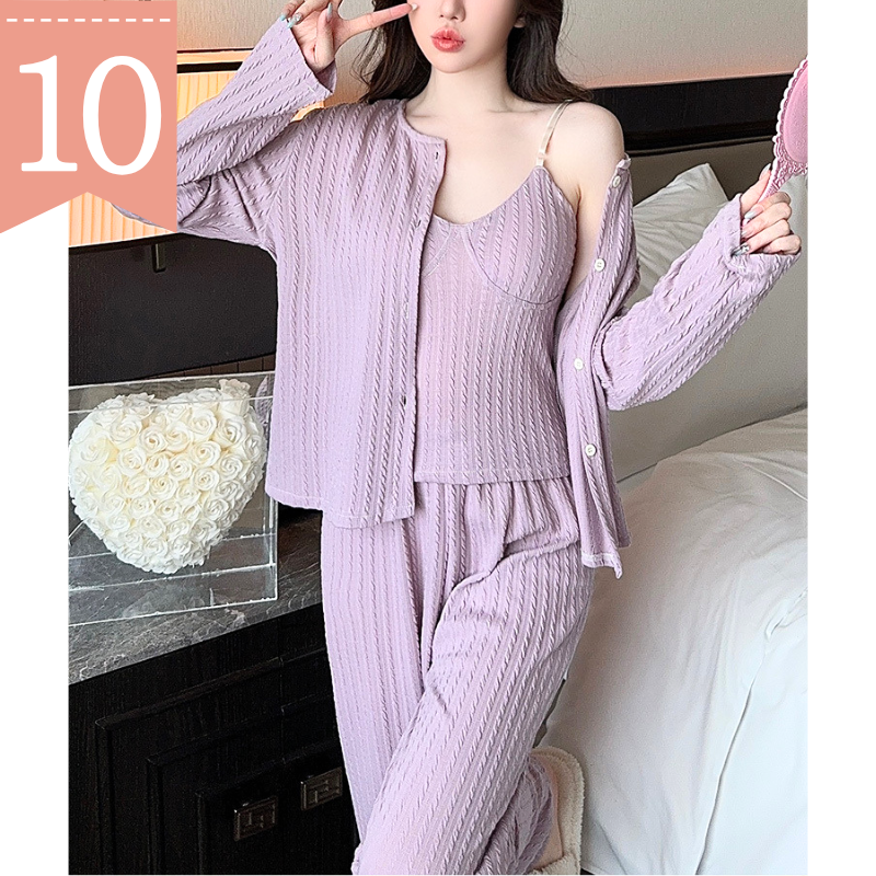 • カーデ付き3点セット: 羽織りやすいカーディガンで体温調整ができ、リラックスタイムからお泊まりデートまで幅広く活躍。