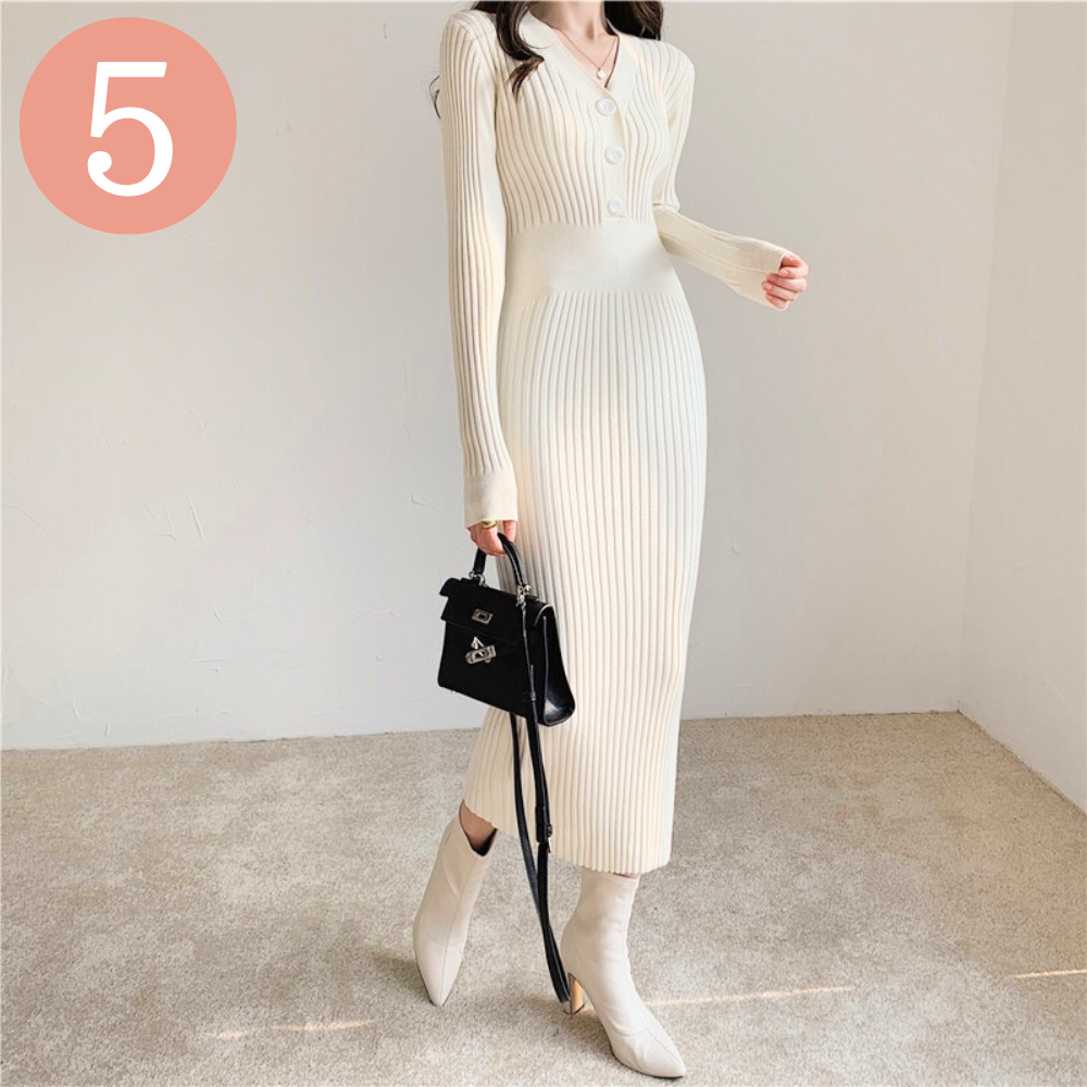 ▽ こう着れば完璧!Vネックニットワンピのスタイリング術
