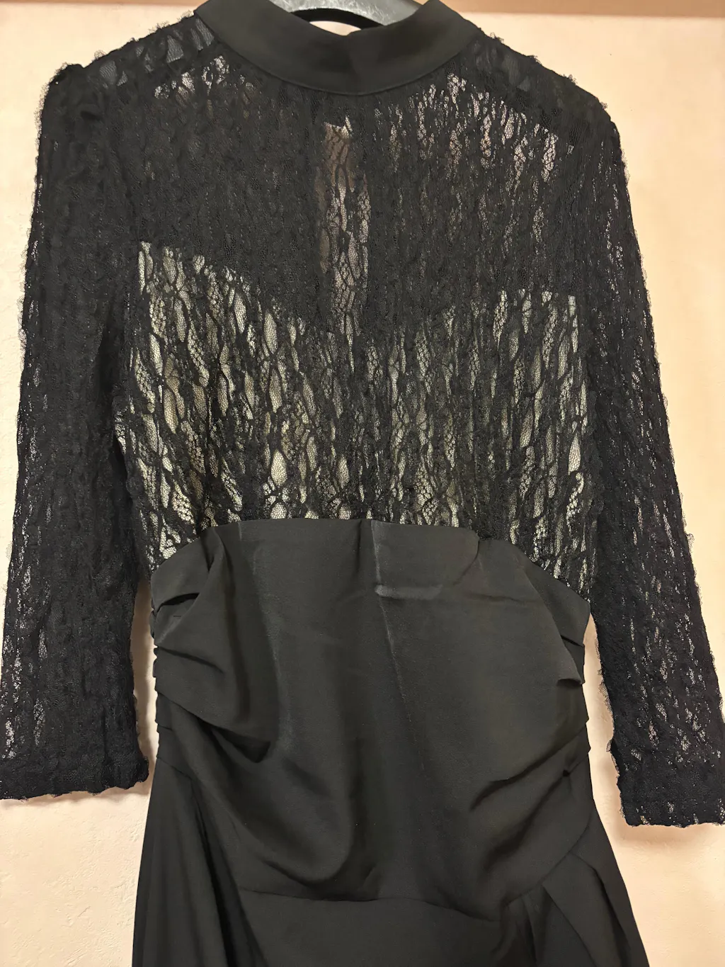 • レース×無地で絶妙なコントラスト: 上半身は繊細なレース、スカート部分はシンプル無地で、メリハリの効いた大人レディな印象に。