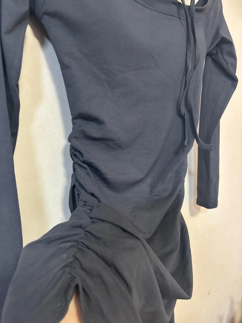 • サイドシャーリングでスタイルアップ: ボディラインに沿って施されたギャザーが、くびれを強調しつつ脚長効果も抜群。動くたびにドレープが流れ、美しい立体感を生み出します。