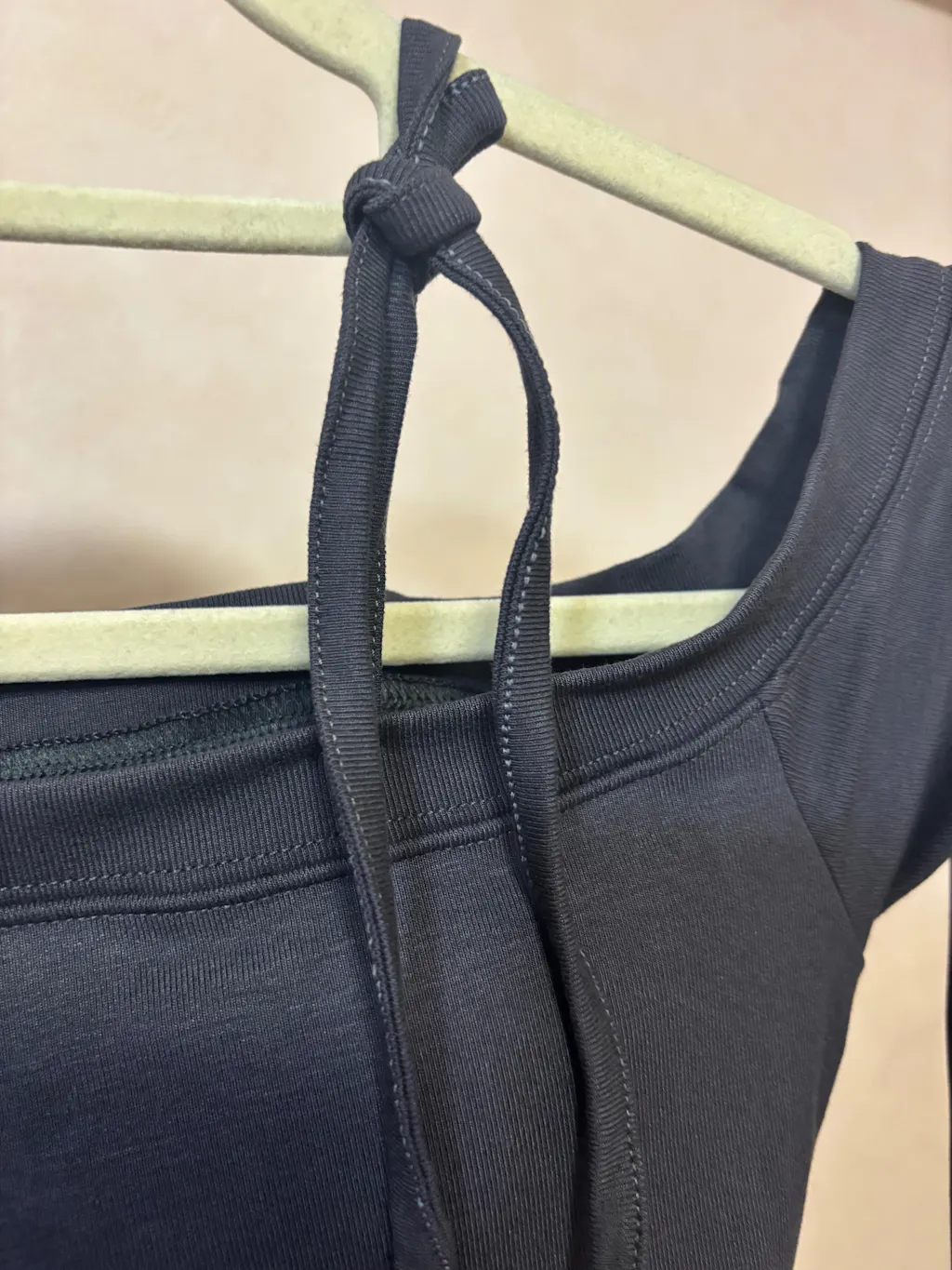 • 片肩リボンで視線を引き寄せるデザイン: 片側だけのリボンストラップが、上品な抜け感と女性らしい華奢さを演出。肩のラインを美しく魅せ、自然に色気を漂わせます。