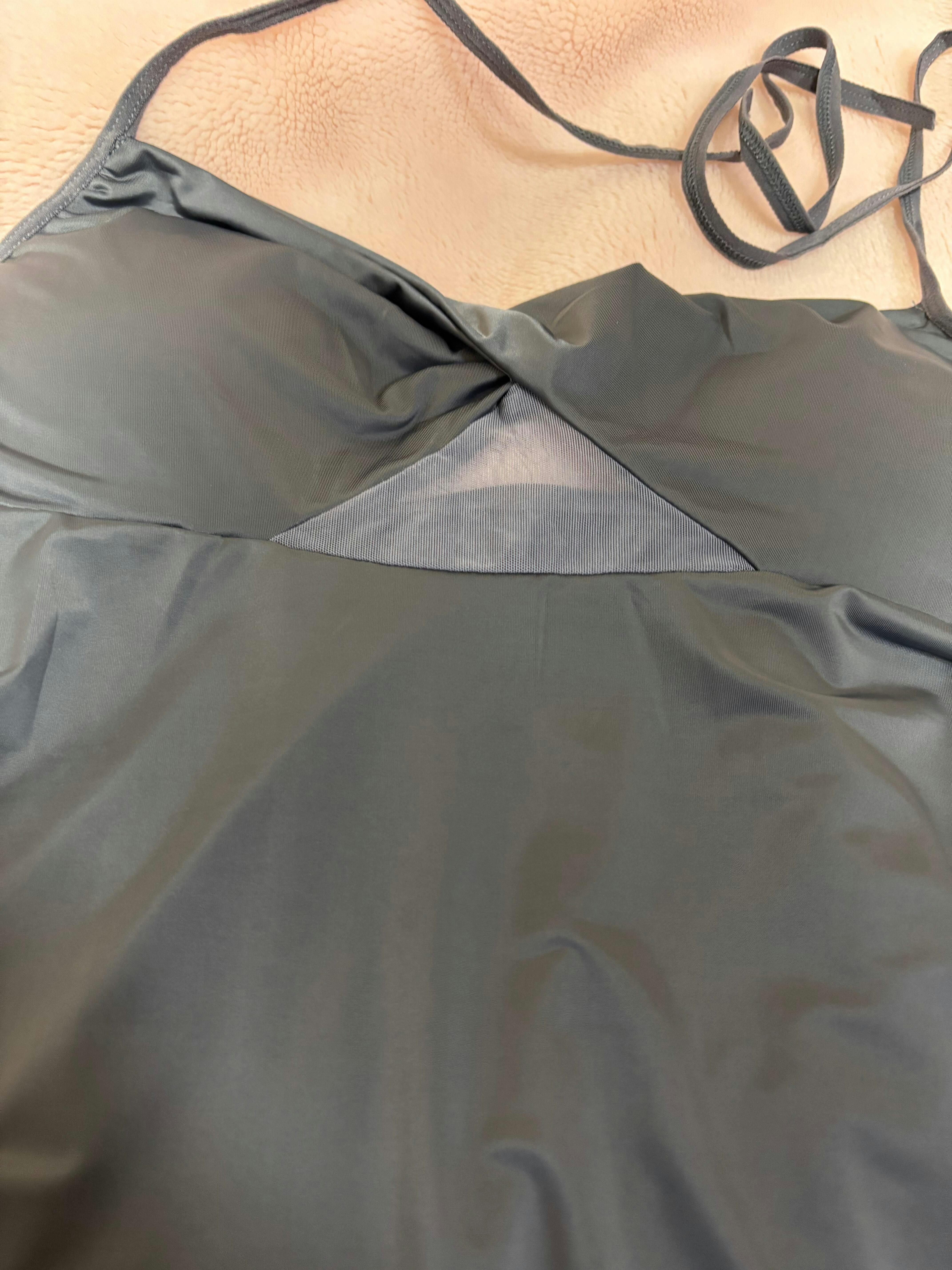 胸下のメッシュレースがほどよく肌を見せ、タイトなフォルムが色気を演出。 さらりとした艶感のサテン調生地は快適な着心地で、おうちデートや記念日にぴったり。 背中を大胆に魅せるホルターネックデザインで、いつもと違う自分を楽しめます。