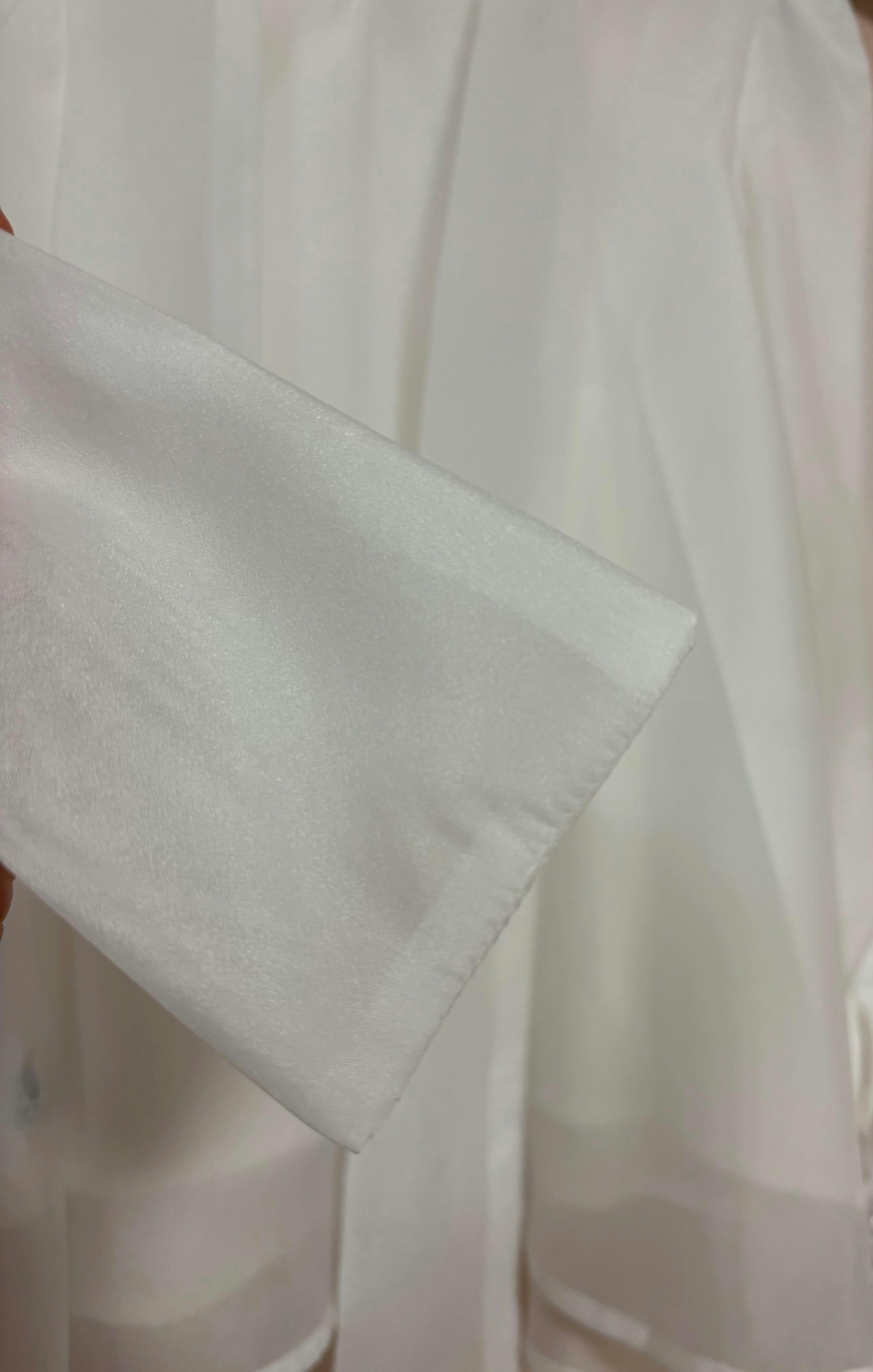 • ボリュームスリーブで華奢見え効果: 手首でキュッと締まるふんわり袖が、手元を華奢に見せてくれるデザイン。フェミニンさと上品さを両立します。