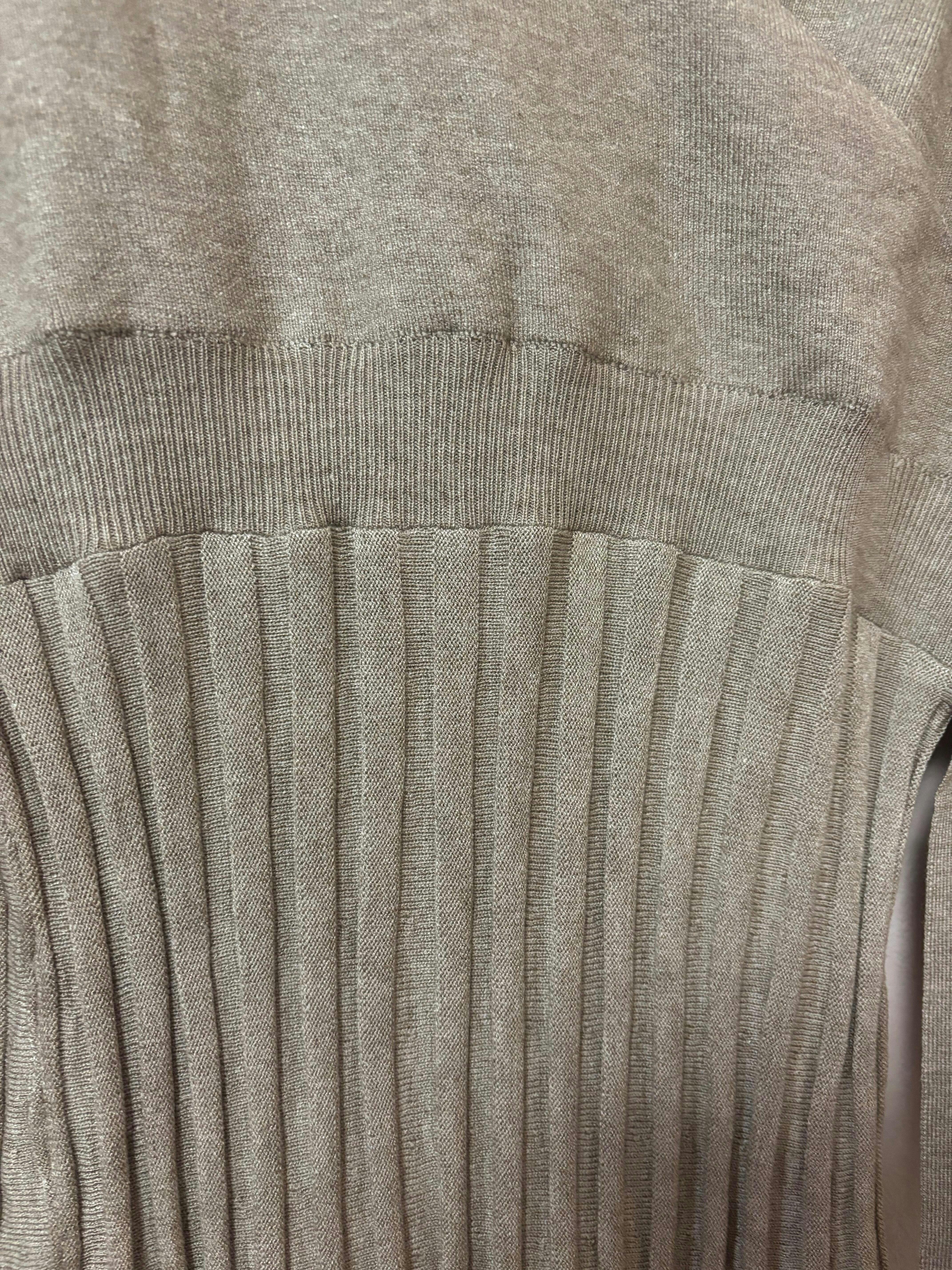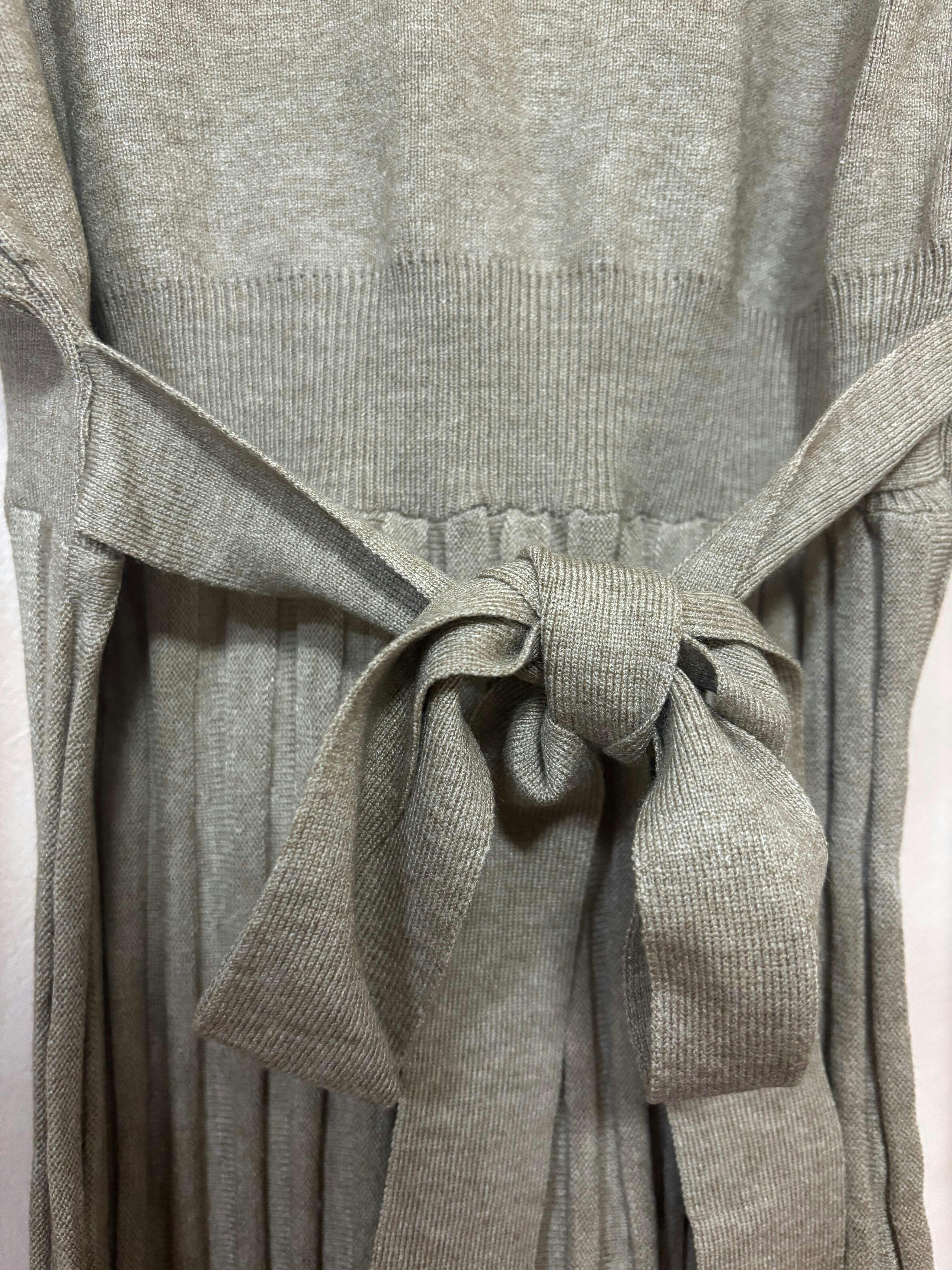 • プリーツ編みスカートのAラインシルエット: ウエストから裾にかけて広がるプリーツが、歩くたびに揺れ感を演出。上品かつスタイルアップ効果も狙えます。