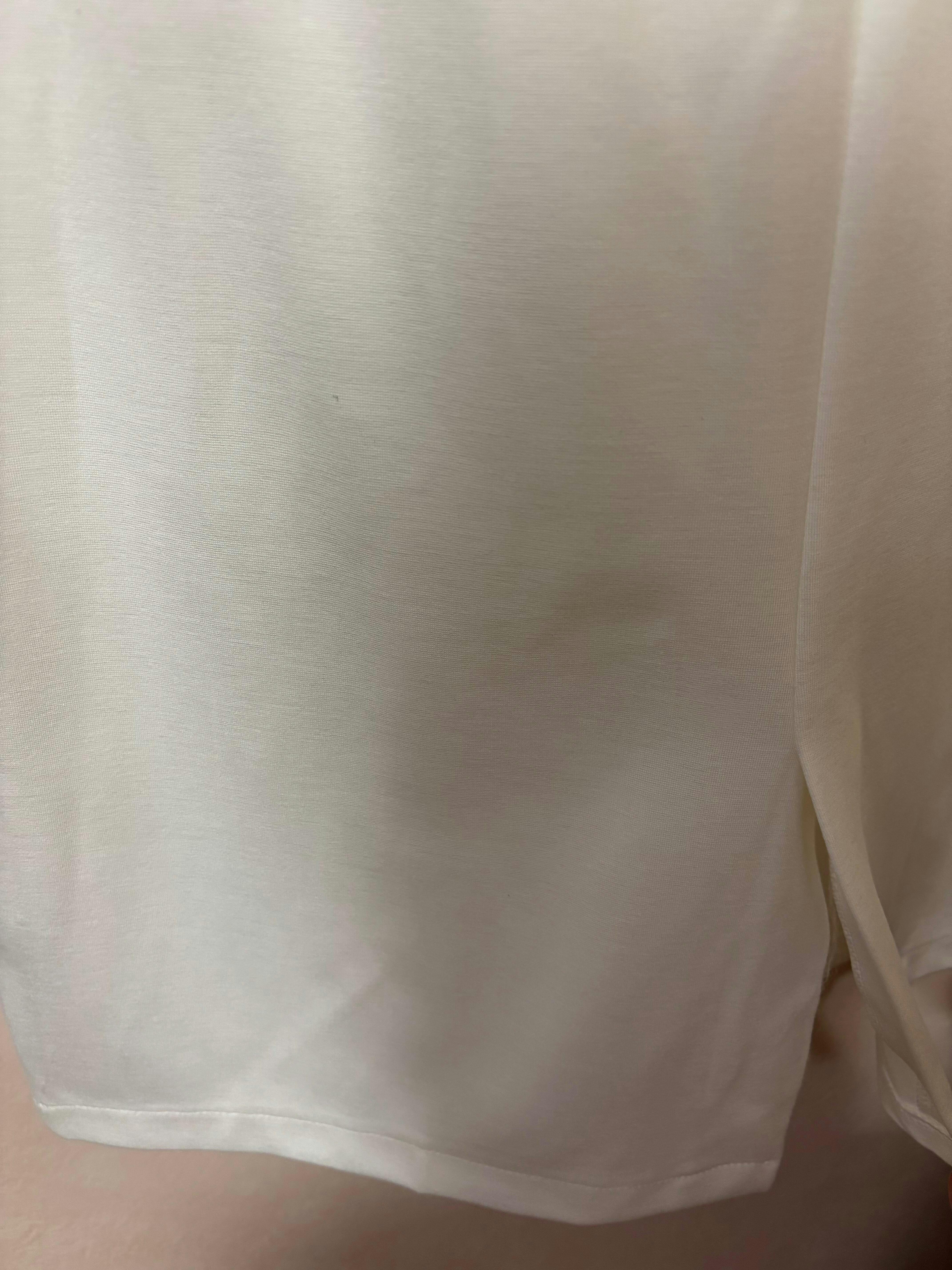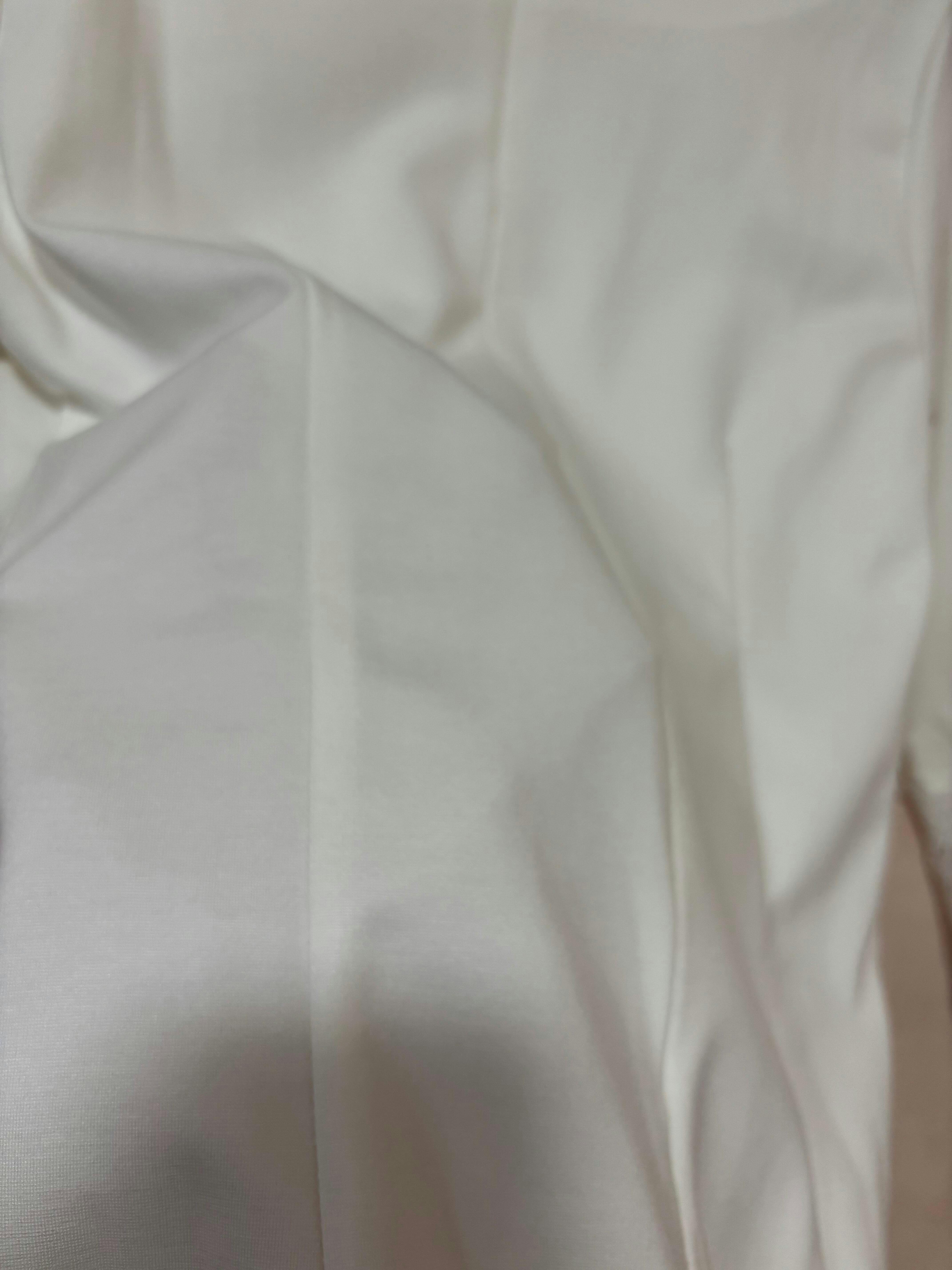 「シンプルだけど計算されたデザイン。特にボートネックの開き具合が絶妙で、女性らしい綺麗なデコルテが映えます。細身シルエットだけどレース袖がアクセントになっていて、気品を感じる一着ですね!」