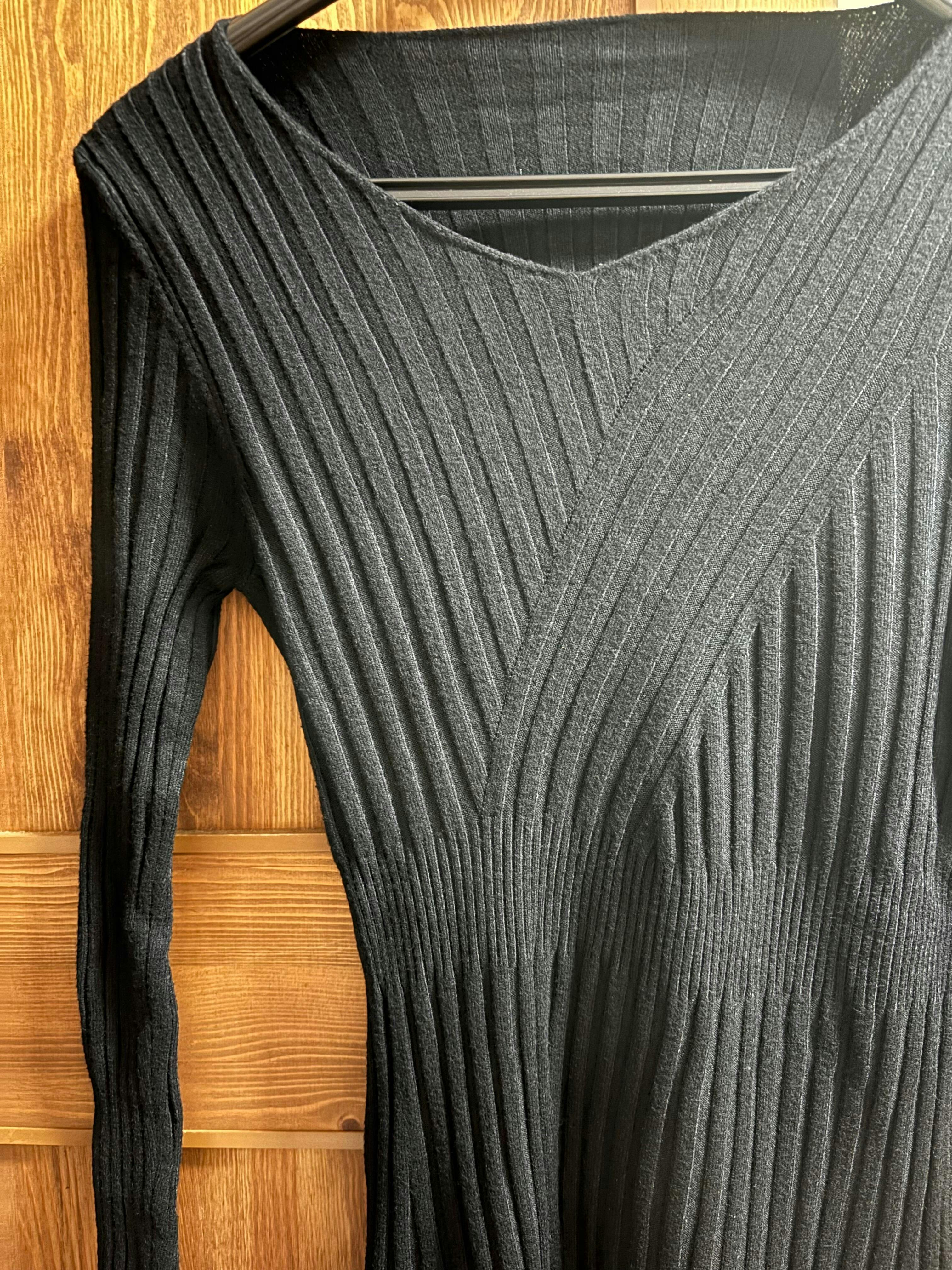 【カーヴィな女っぽさをアピール可♡】Vネックリブニットタイトワンピース