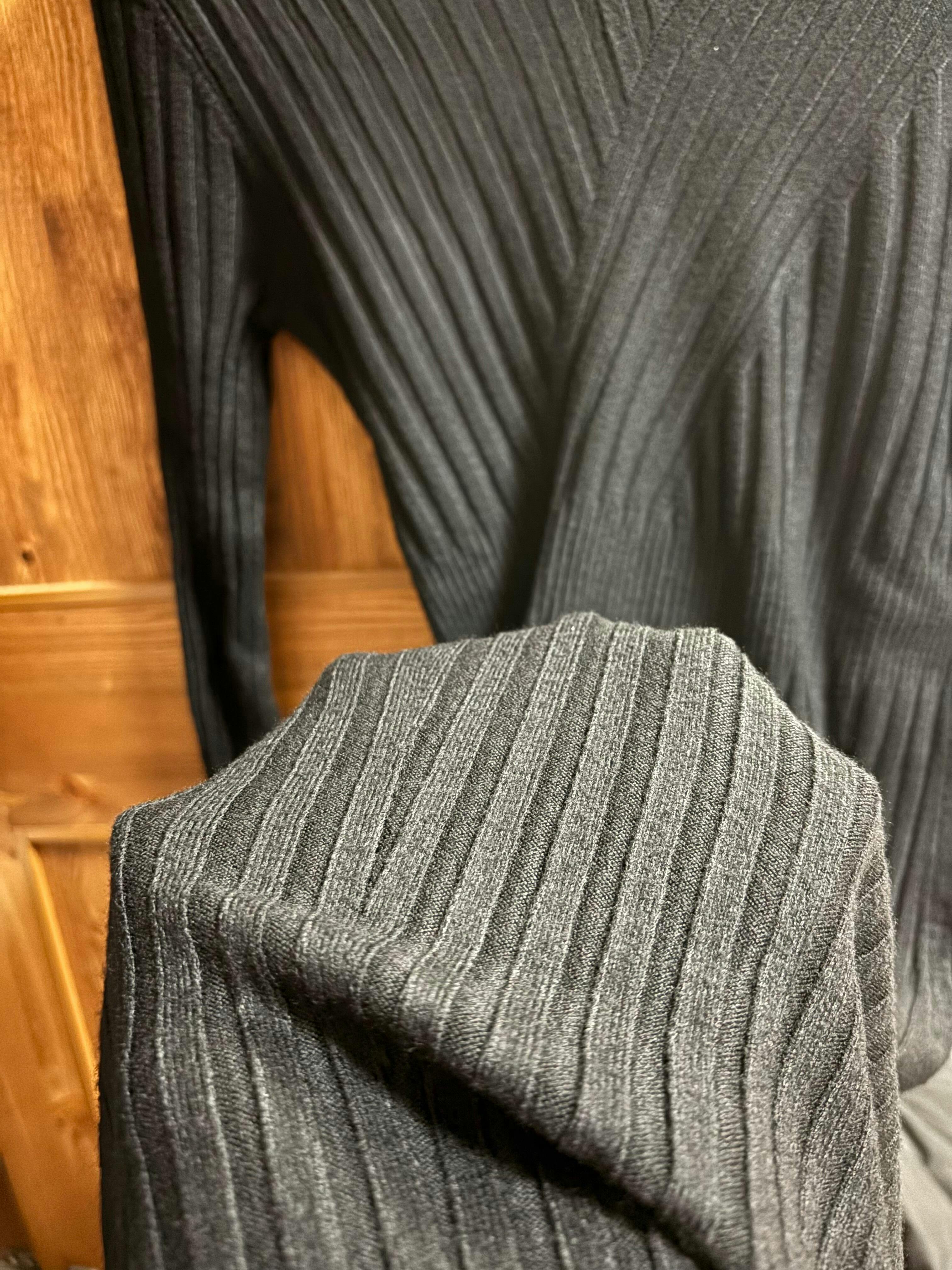 「太リブデザインが他にはない存在感を出していて、体にフィットしてるのに着心地良さそうに見えますね。