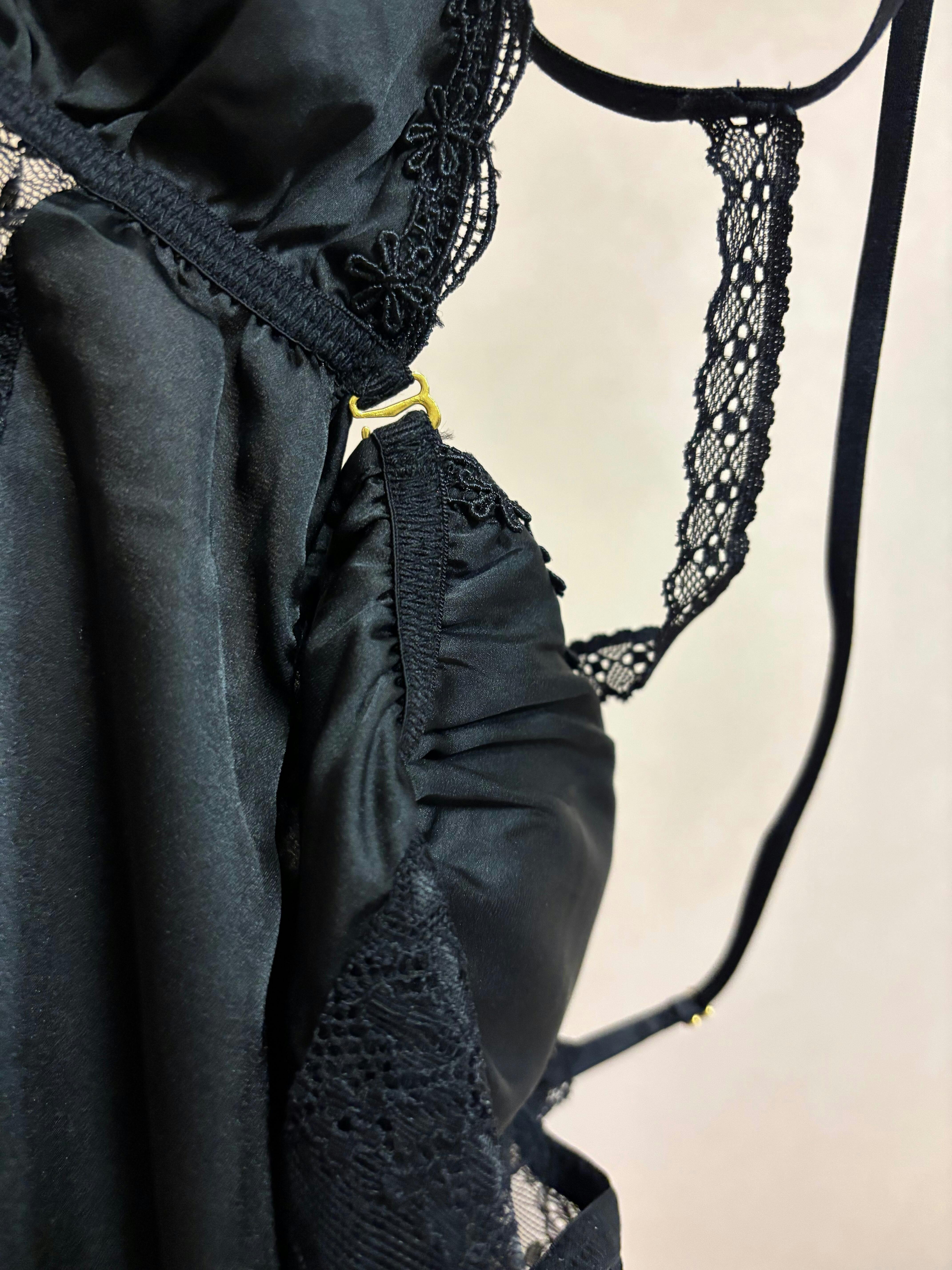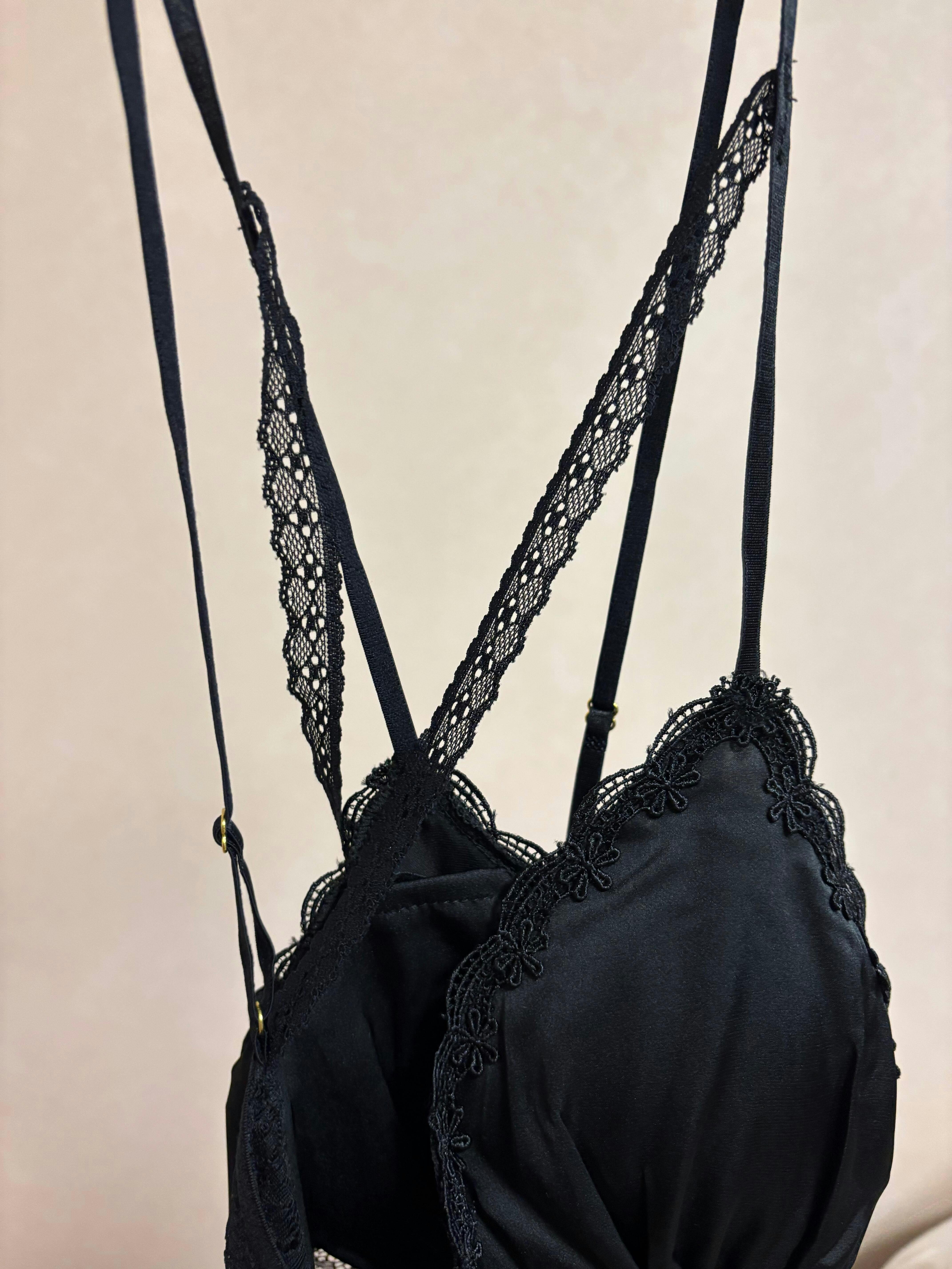 「ベビードール ランジェリー」でありながら甘すぎないレース使いと上品な透け感が、大人女子ならではの魅力を最大限に引き立てます。胸元や背中を大胆に見せつつも、ふんわりとしたシルエットも相まってどこか可愛らしさも感じさせる絶妙なデザインで、「セクシーすぎない」ルームウェアやベビードールを探している方にもぴったりです。