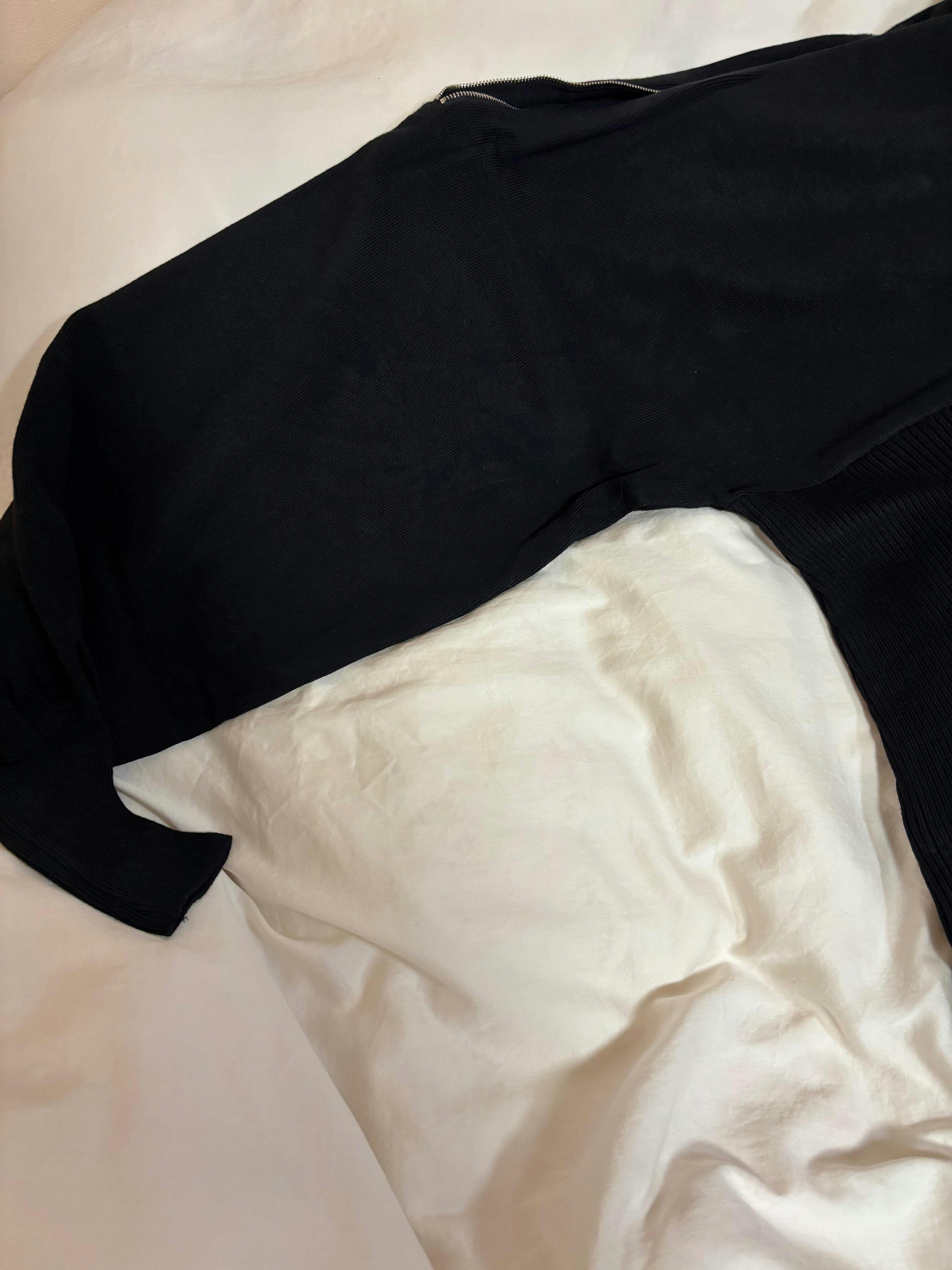 • ドルマンスリーブの立体感: ゆったり袖×タイトボトムのメリハリで、モードかつ女性らしいラインに。デートにも映えるバランス設計。