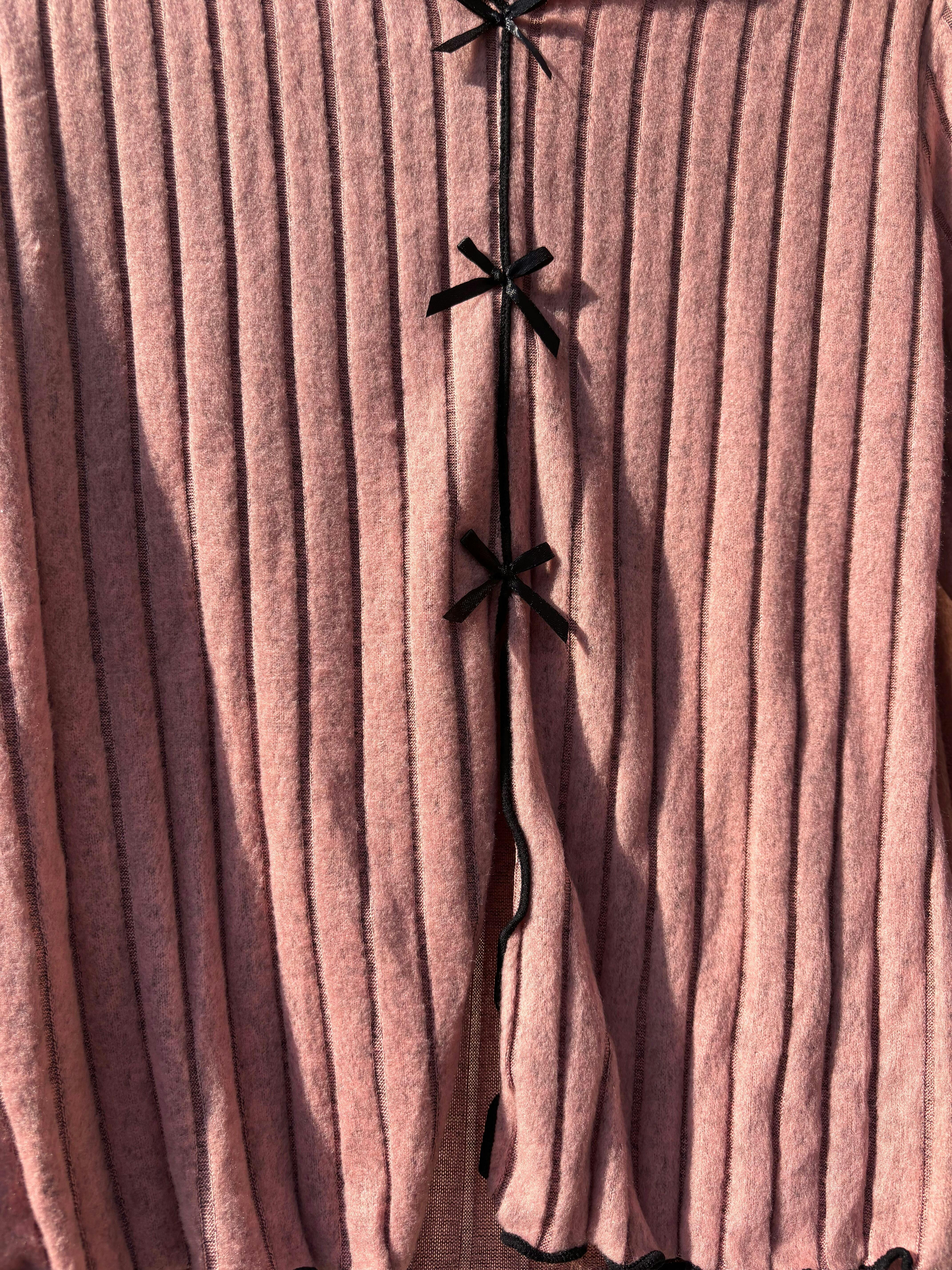 「ふわっと柔らかい素材感で、思わず触れたくなるような雰囲気。リボンが効いてて、上品なのにちゃんと女っぽさがある。こんな部屋着を着てくれてたら、おうち時間がもっと楽しみになりますね。」