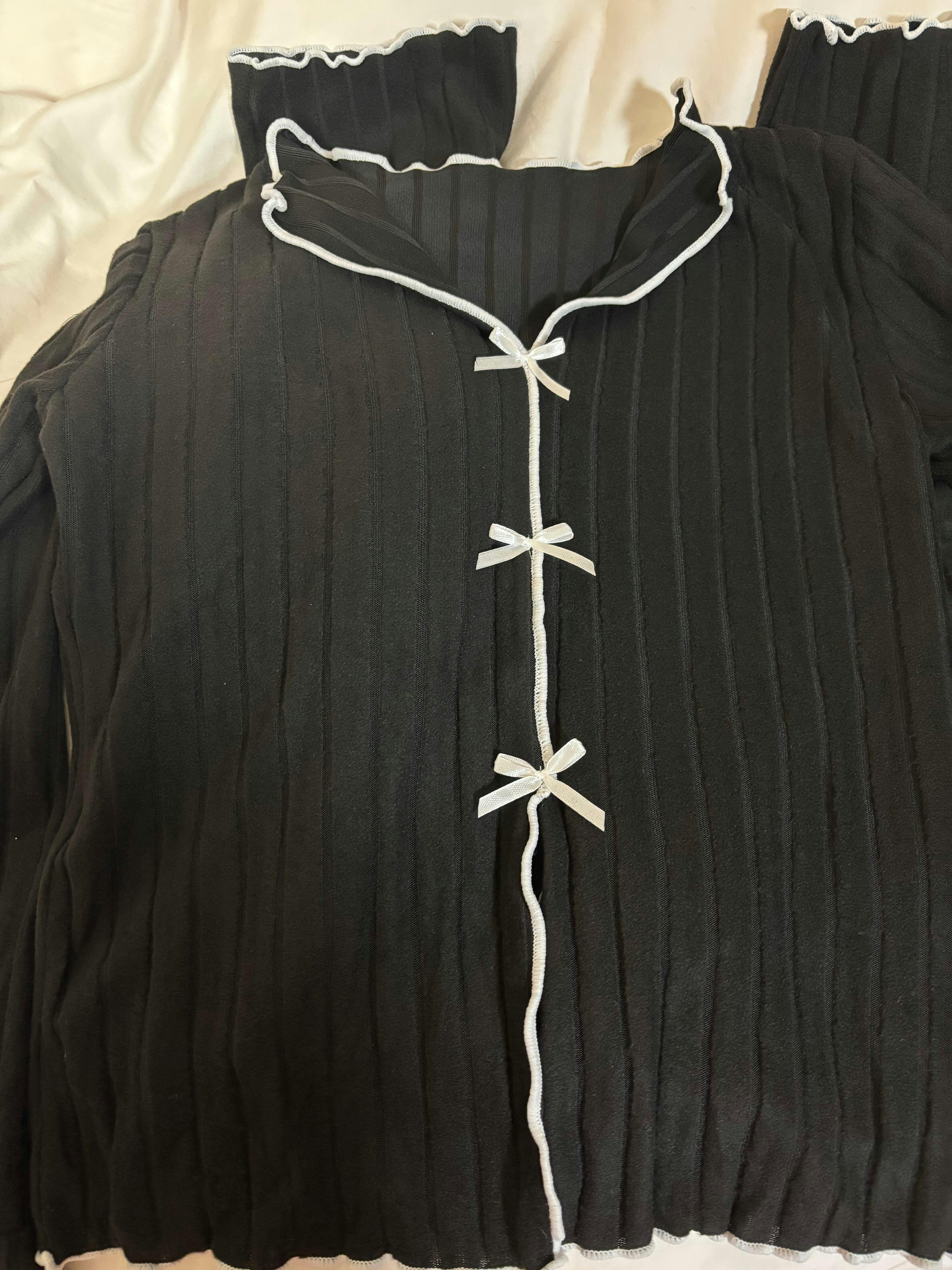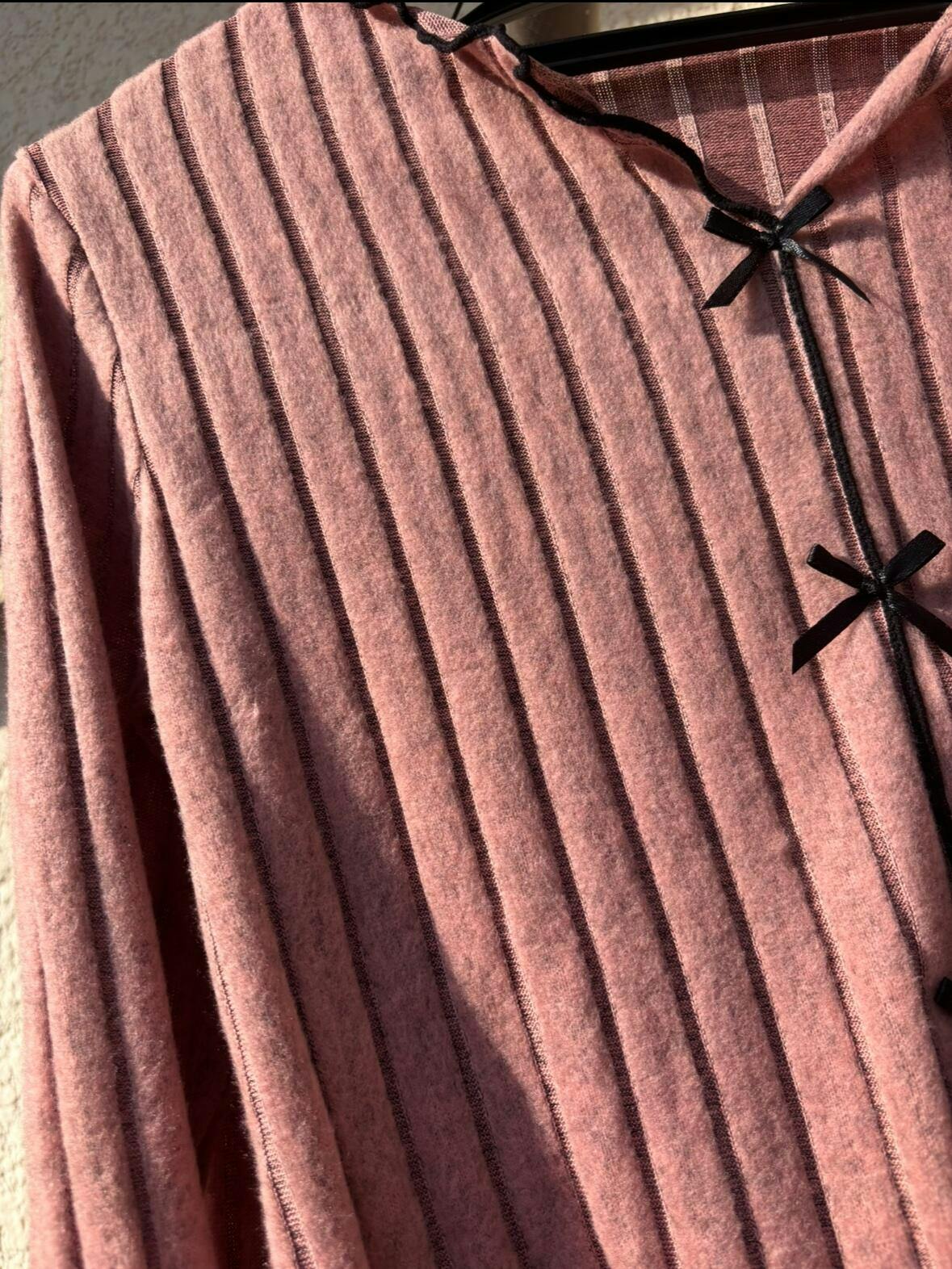 • 大人可愛いリボンボタン: 胸元に並んだリボン風のボタンがアクセントになり、シンプルながらも愛されデザイン。