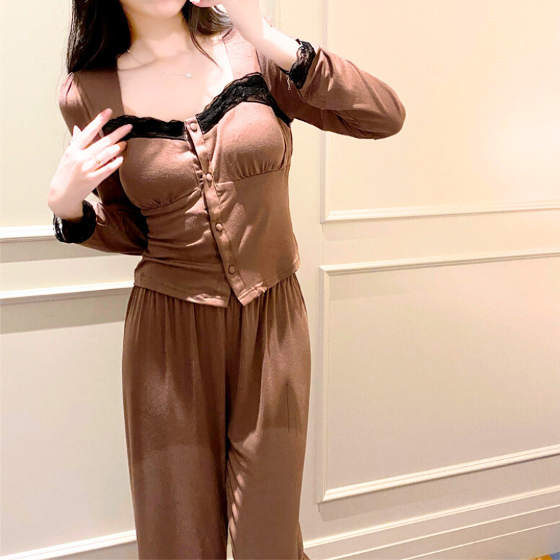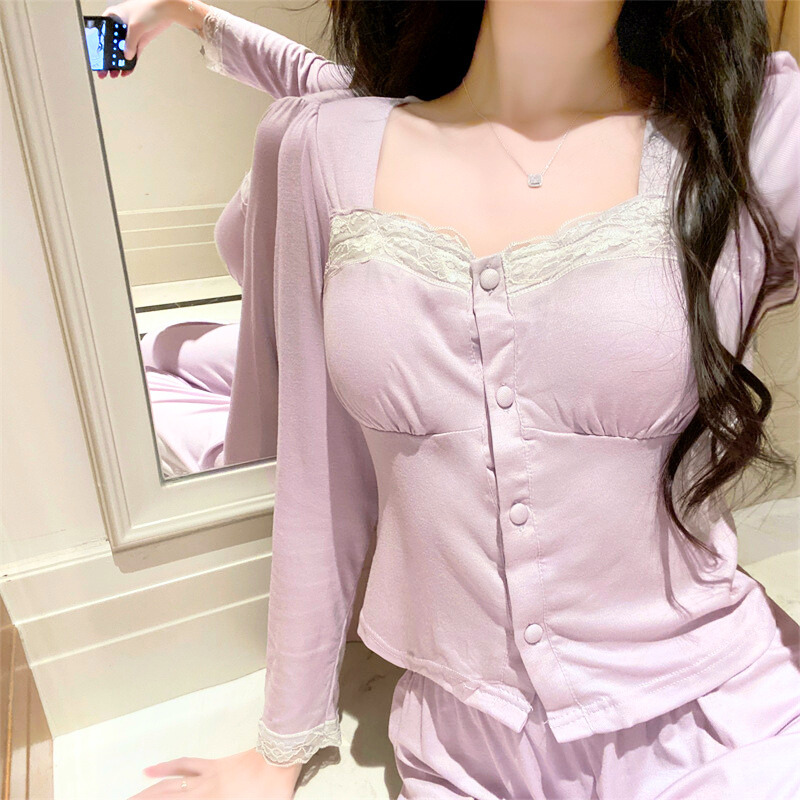 上品×色っぽ可愛い♡レース切替カップ付きルームウェアセットアップ(春秋)