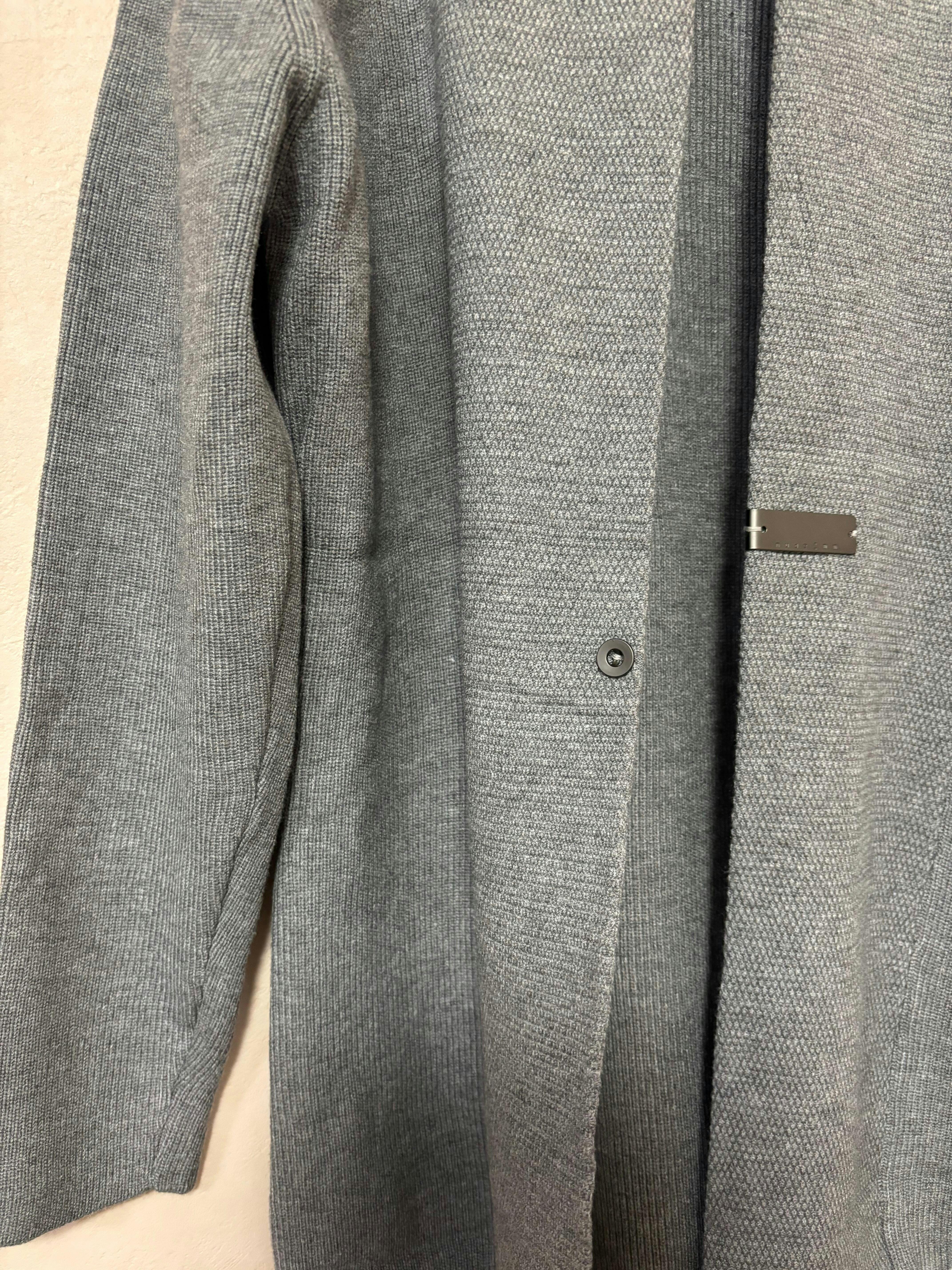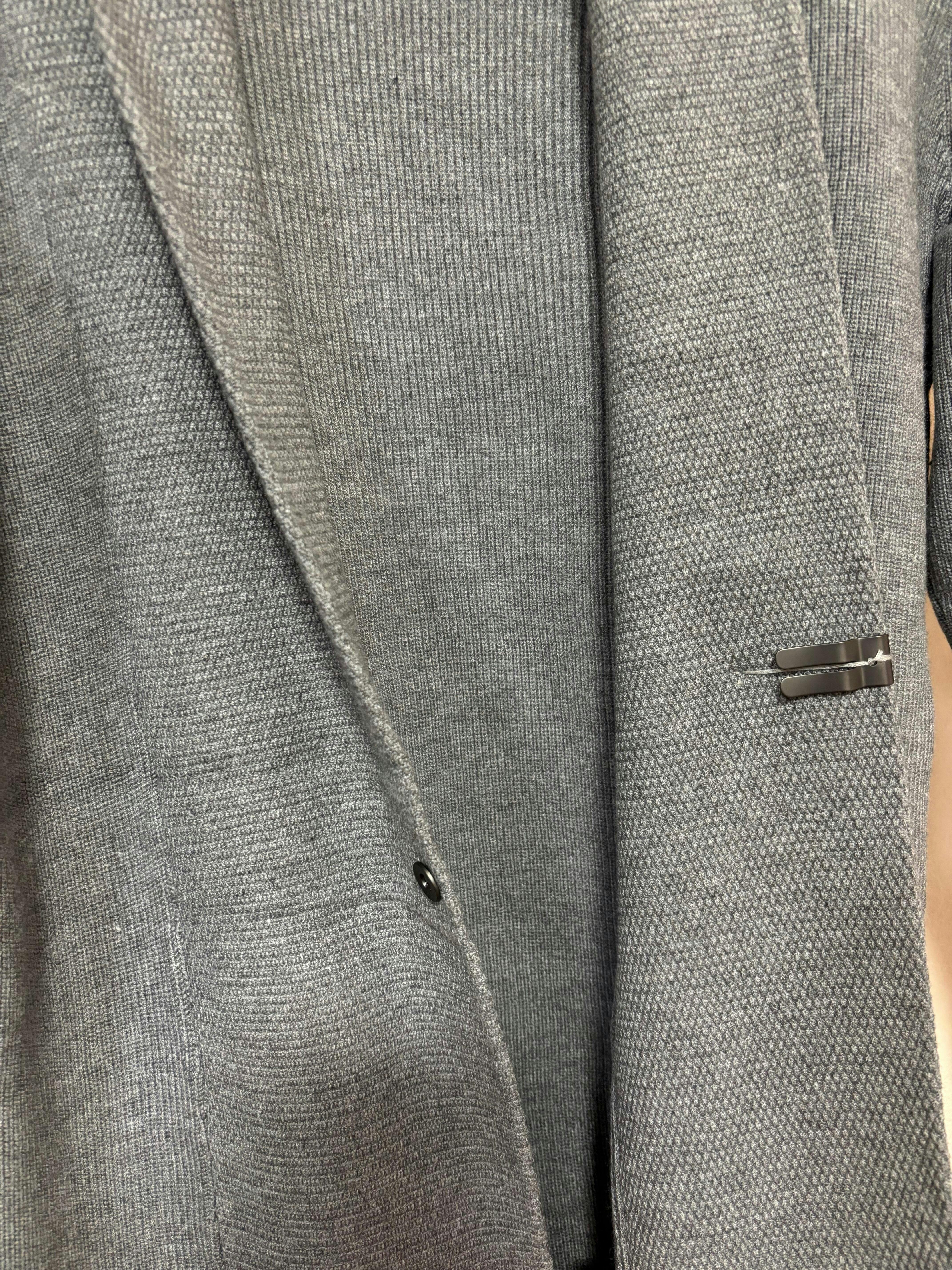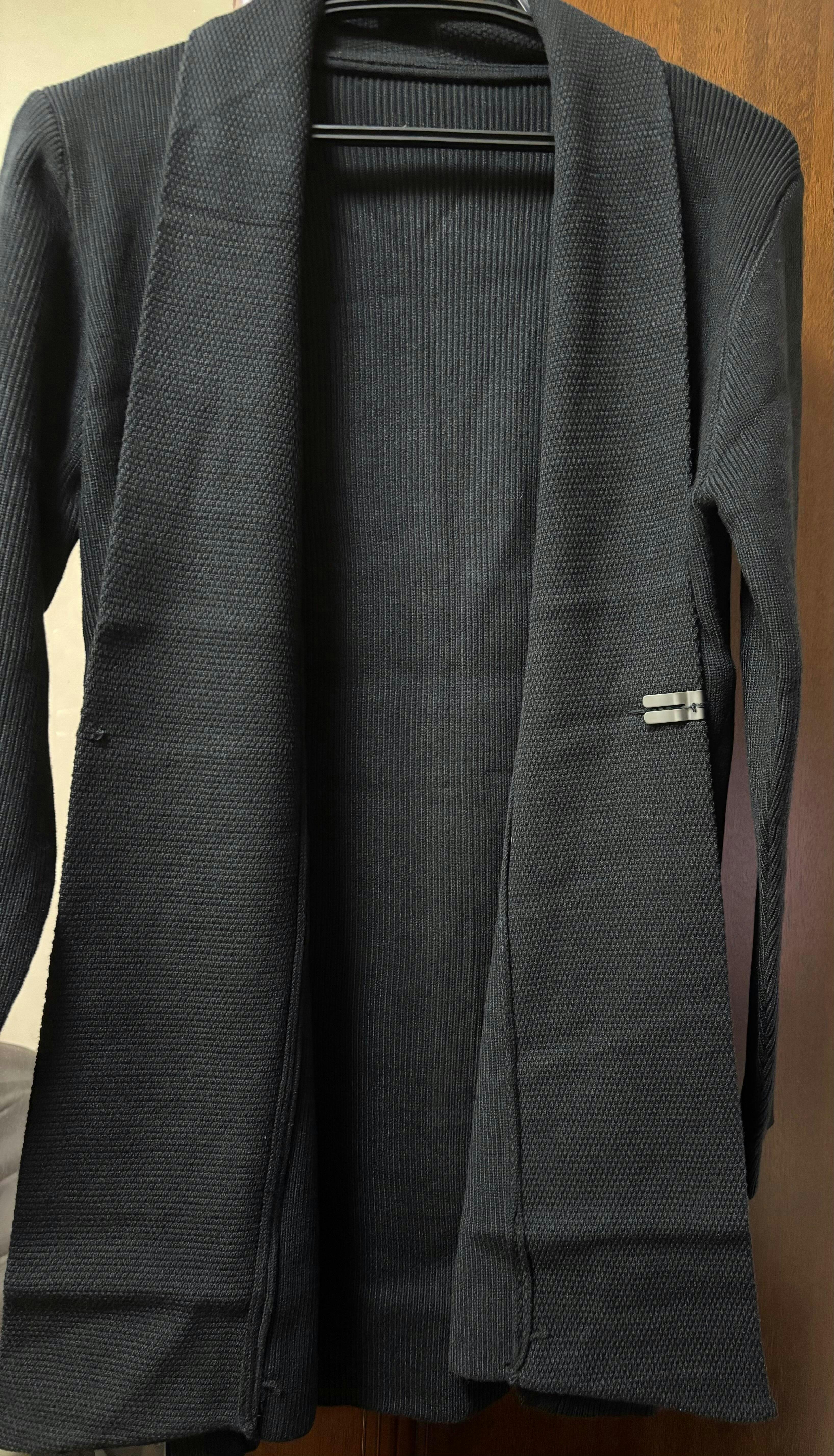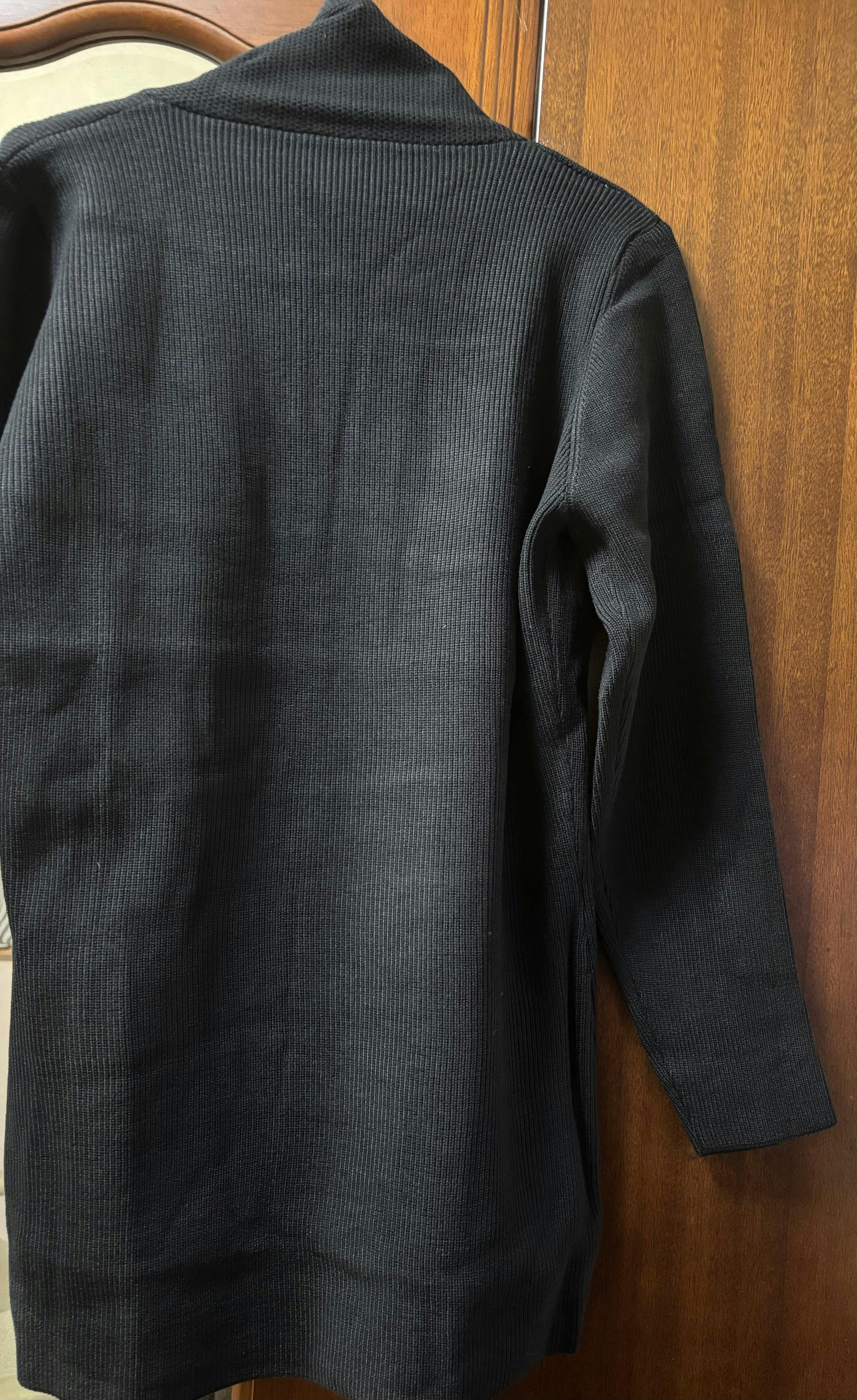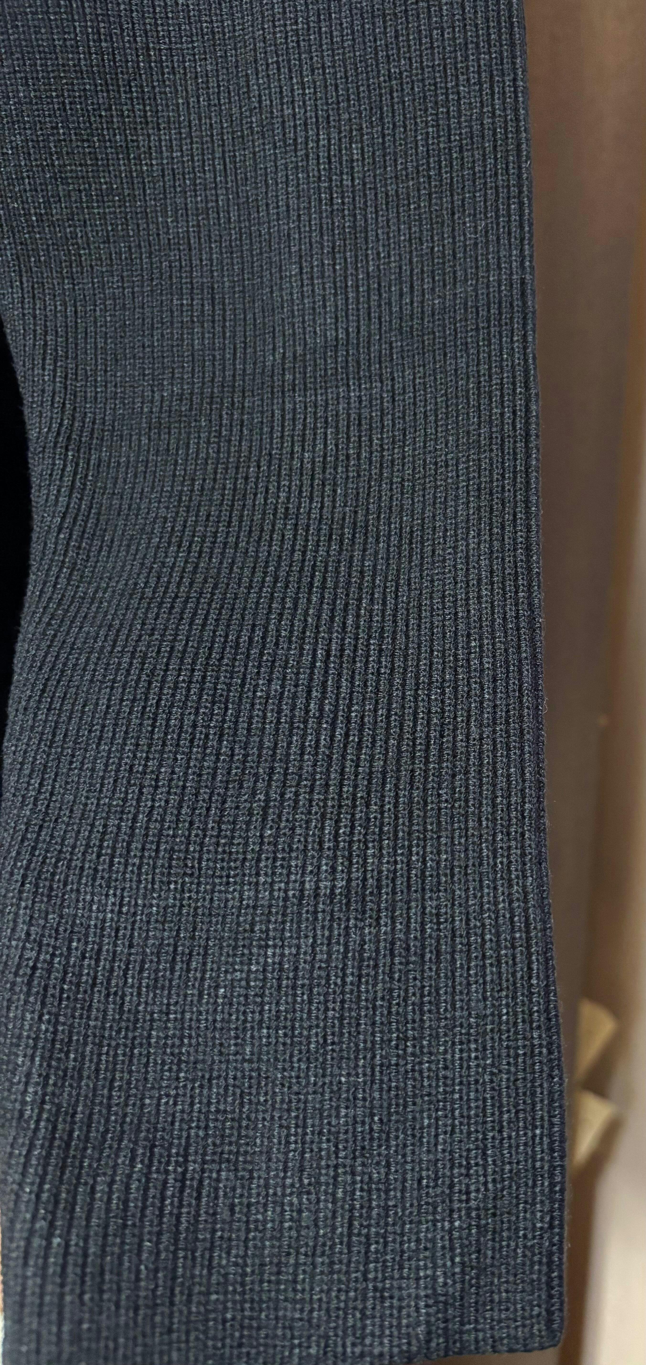 • スタイルアップを叶える縦ライン: 前立てに向かって入る編み目とスリムなシルエットが、体型を縦長に見せ、好印象に。