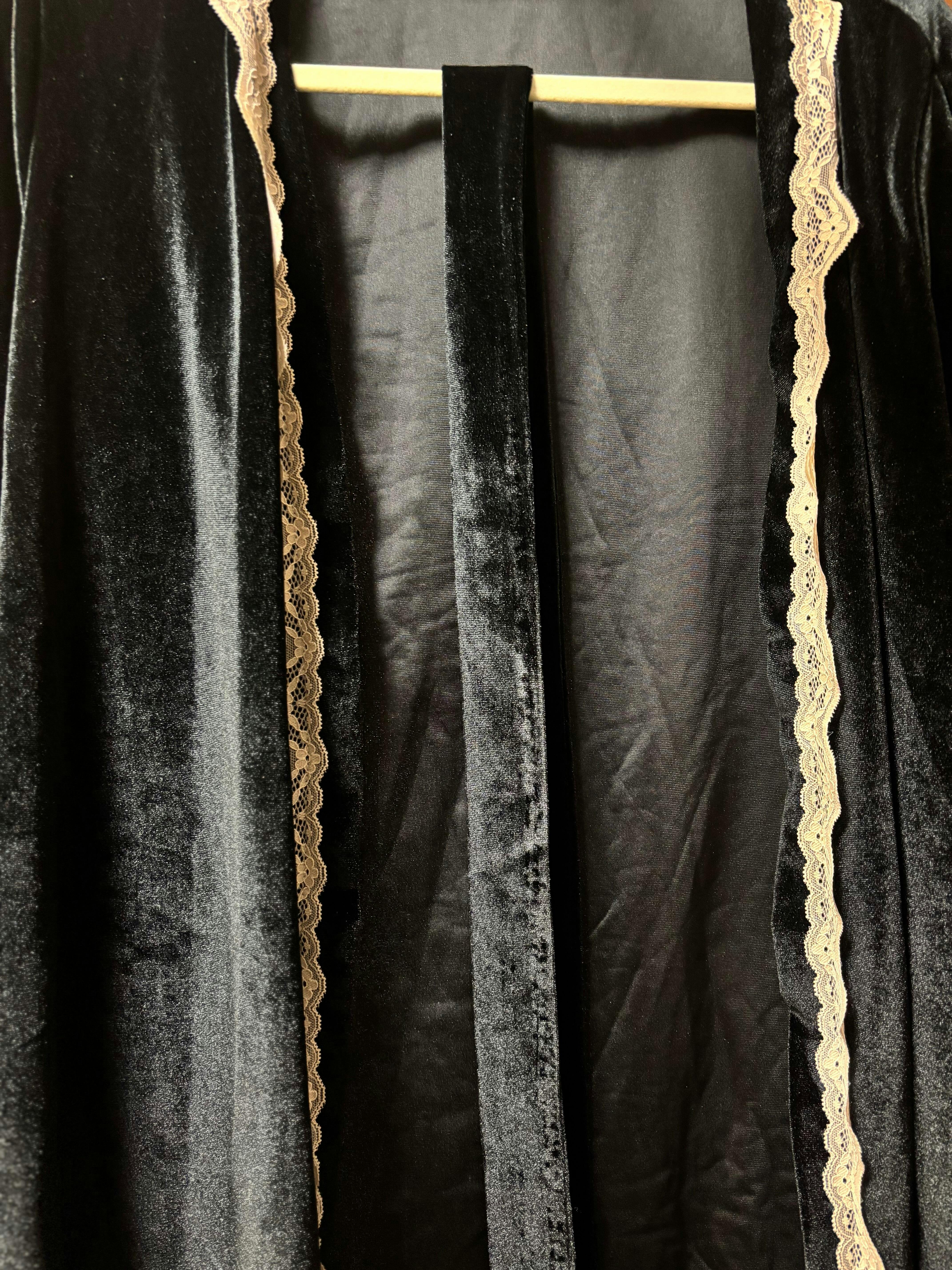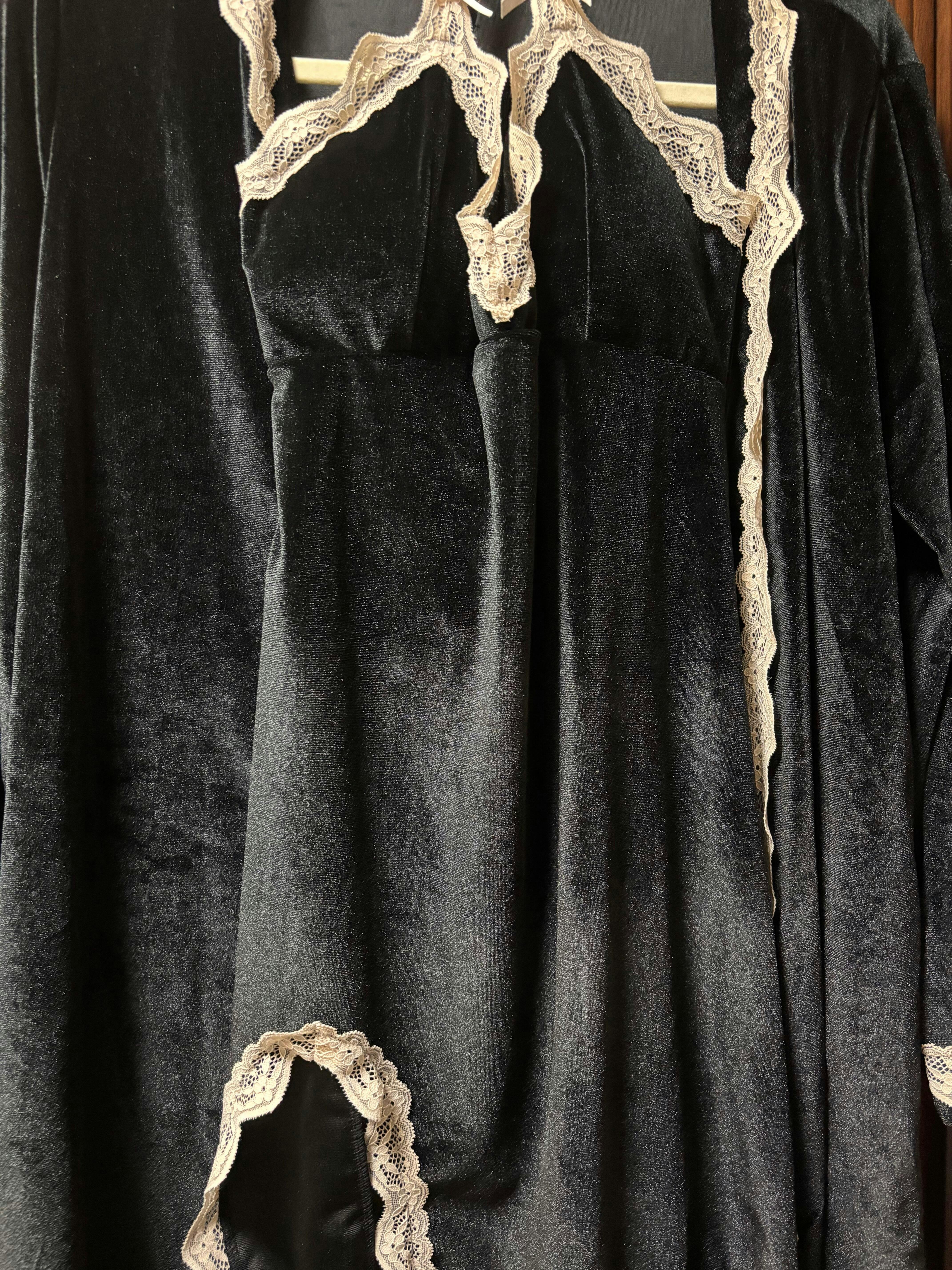 【ベロア×レース】胸パッド付きスリットキャミワンピース+ガウンで大人可愛いルームウェア