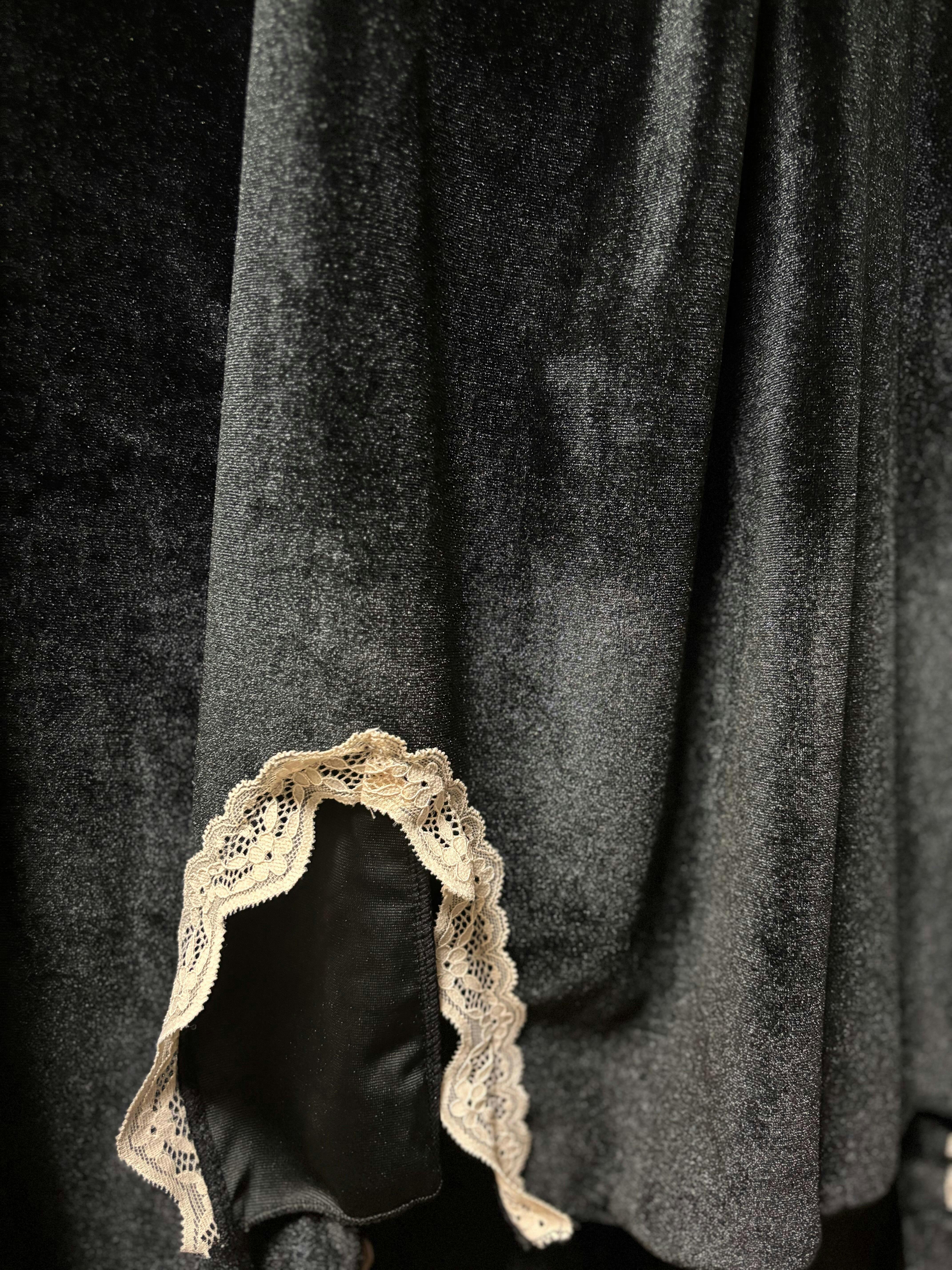 ブラックM当日発送可【とろけるベロアで色っぽナイト】ベロアレース スリットキャミワンピ(胸パッド付き)|選べるガウン付き