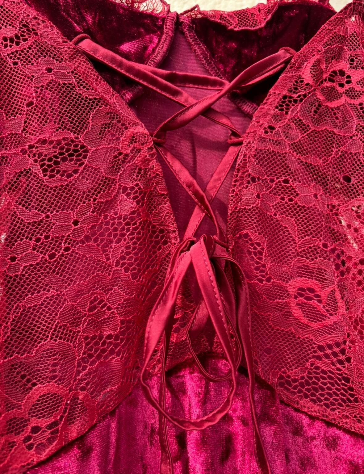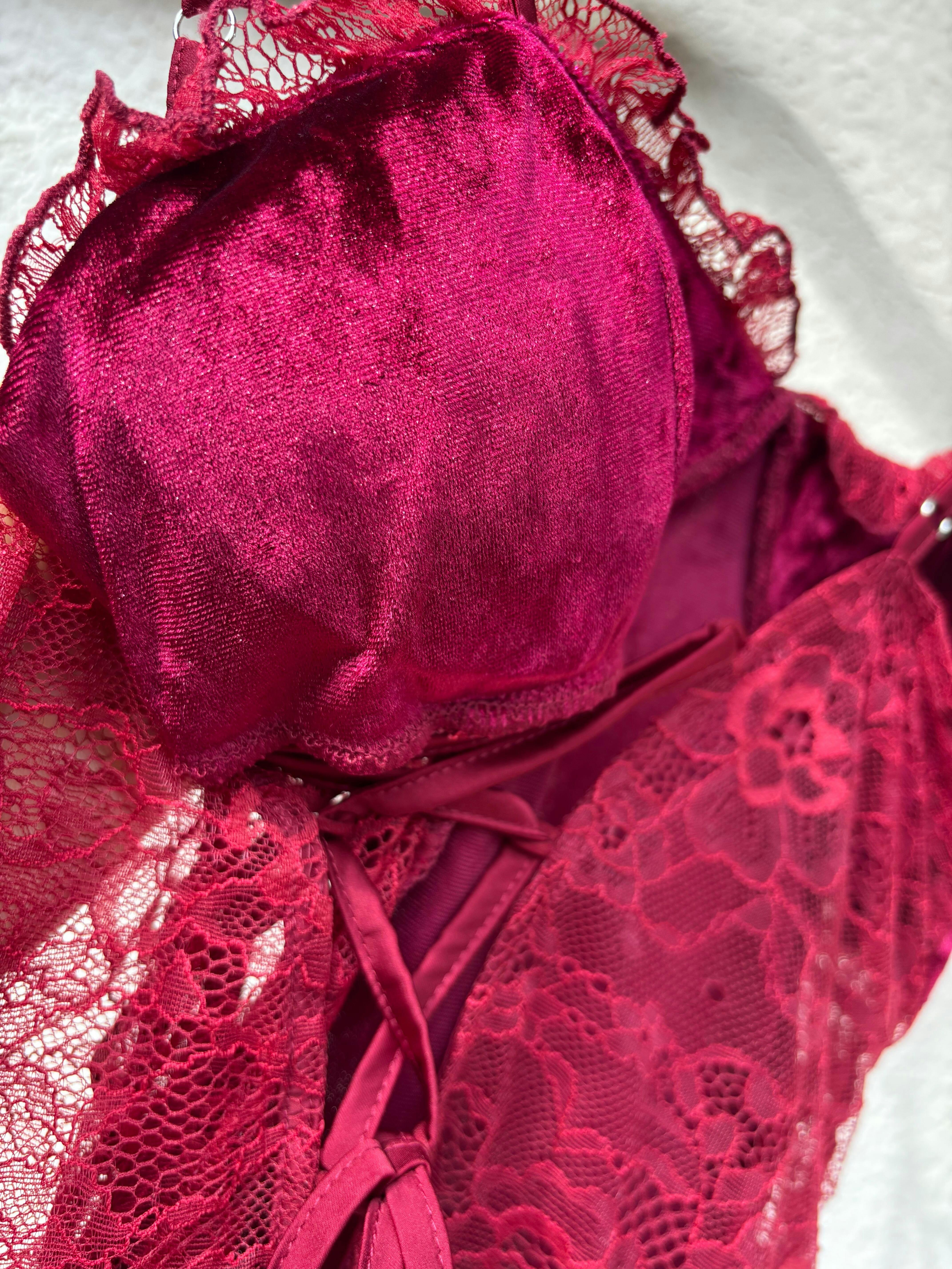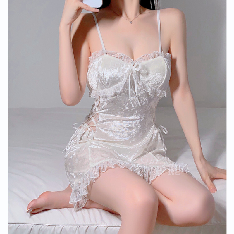 【ベロア×フリルレース】大人可愛いレースアップベビードール