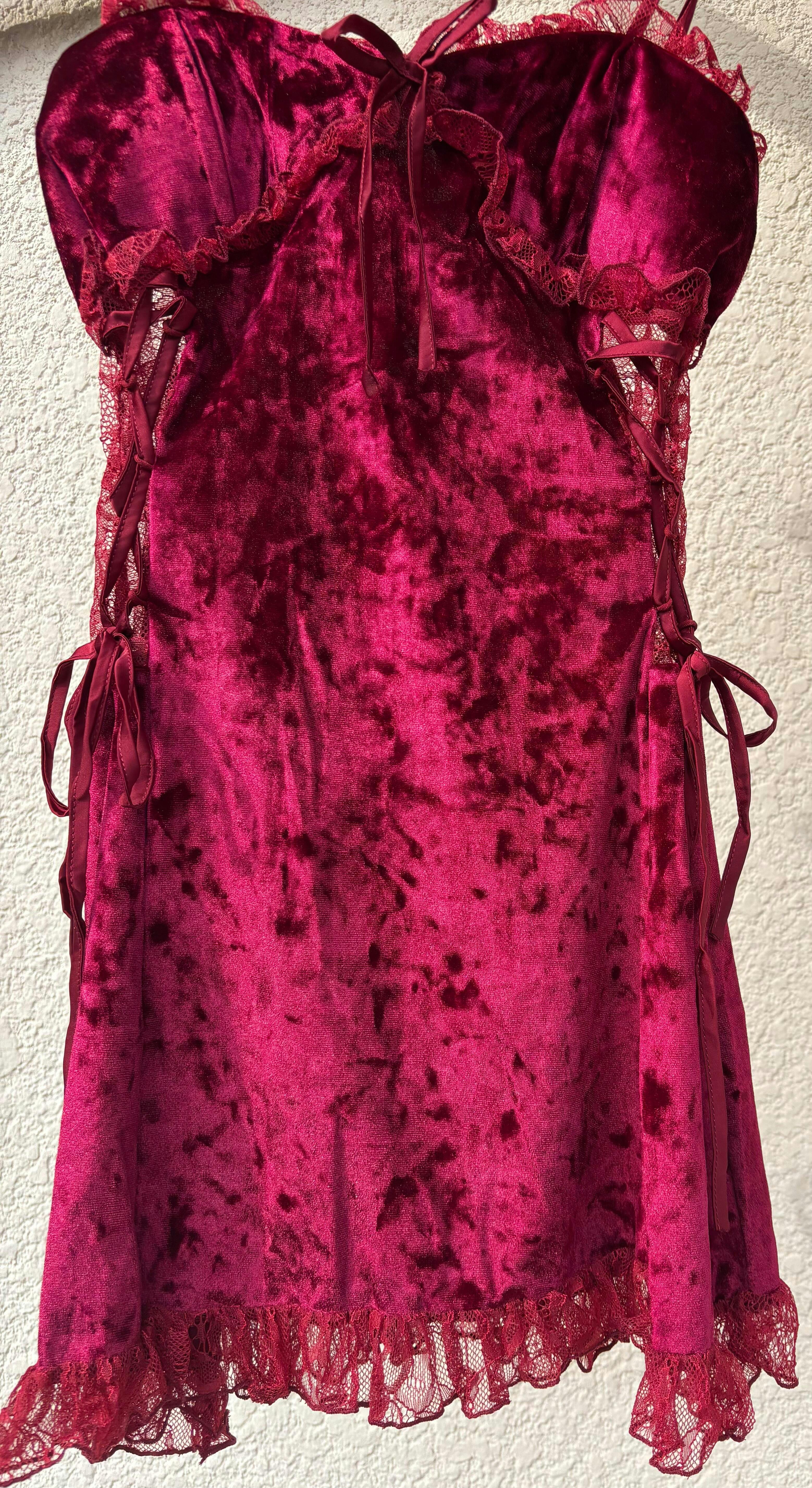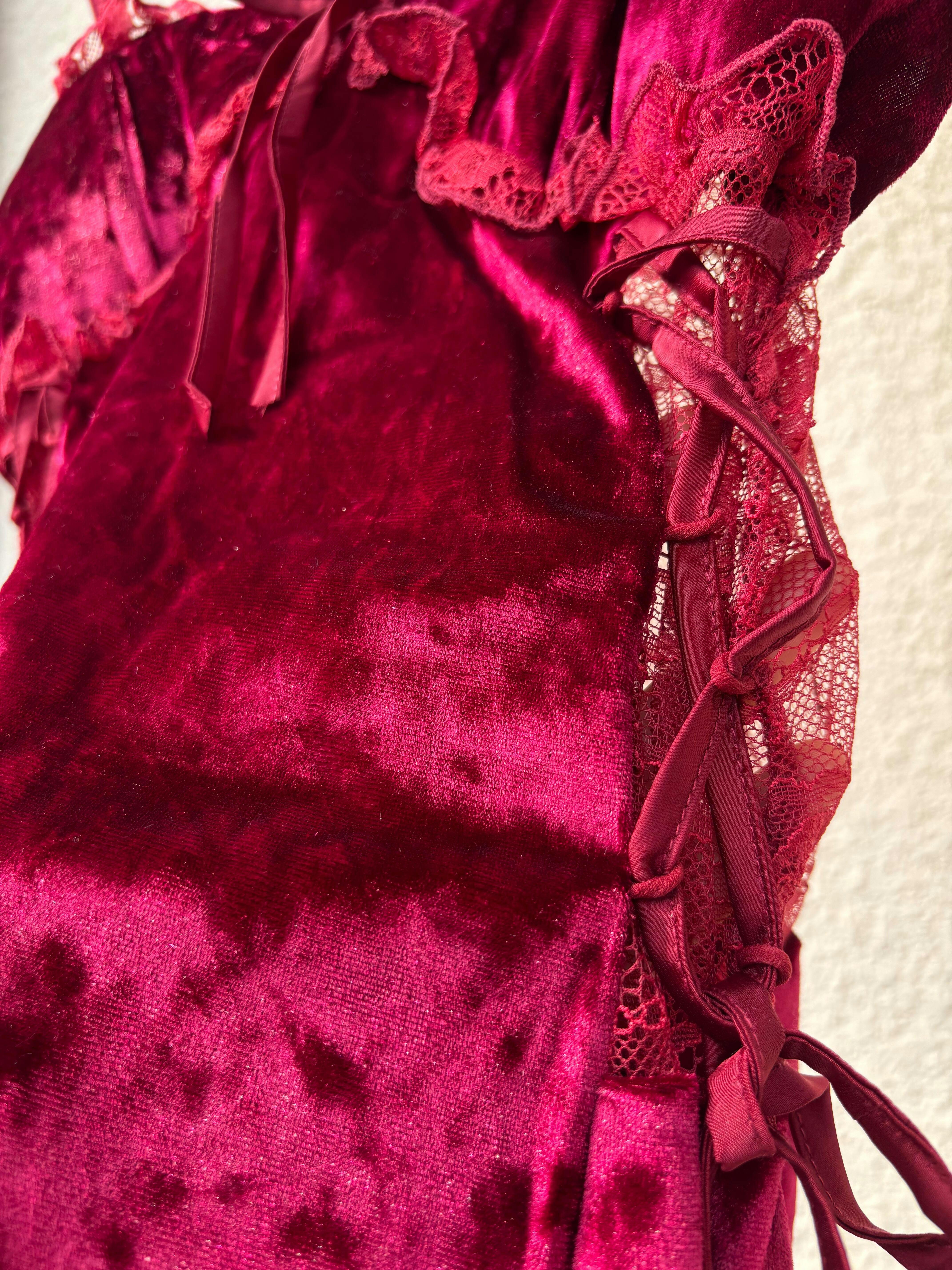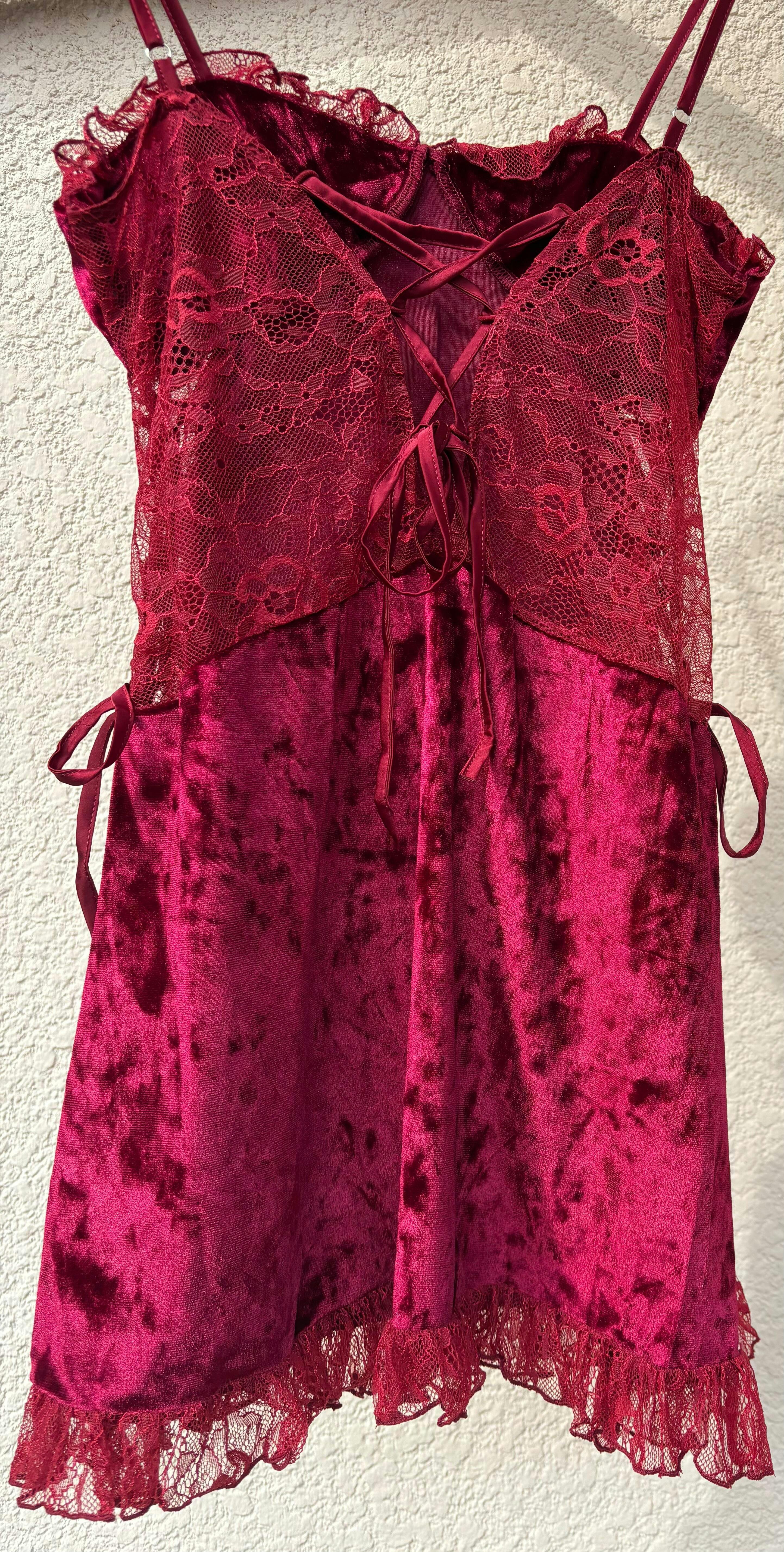 【ベロア×フリルレース】大人可愛いレースアップベビードール