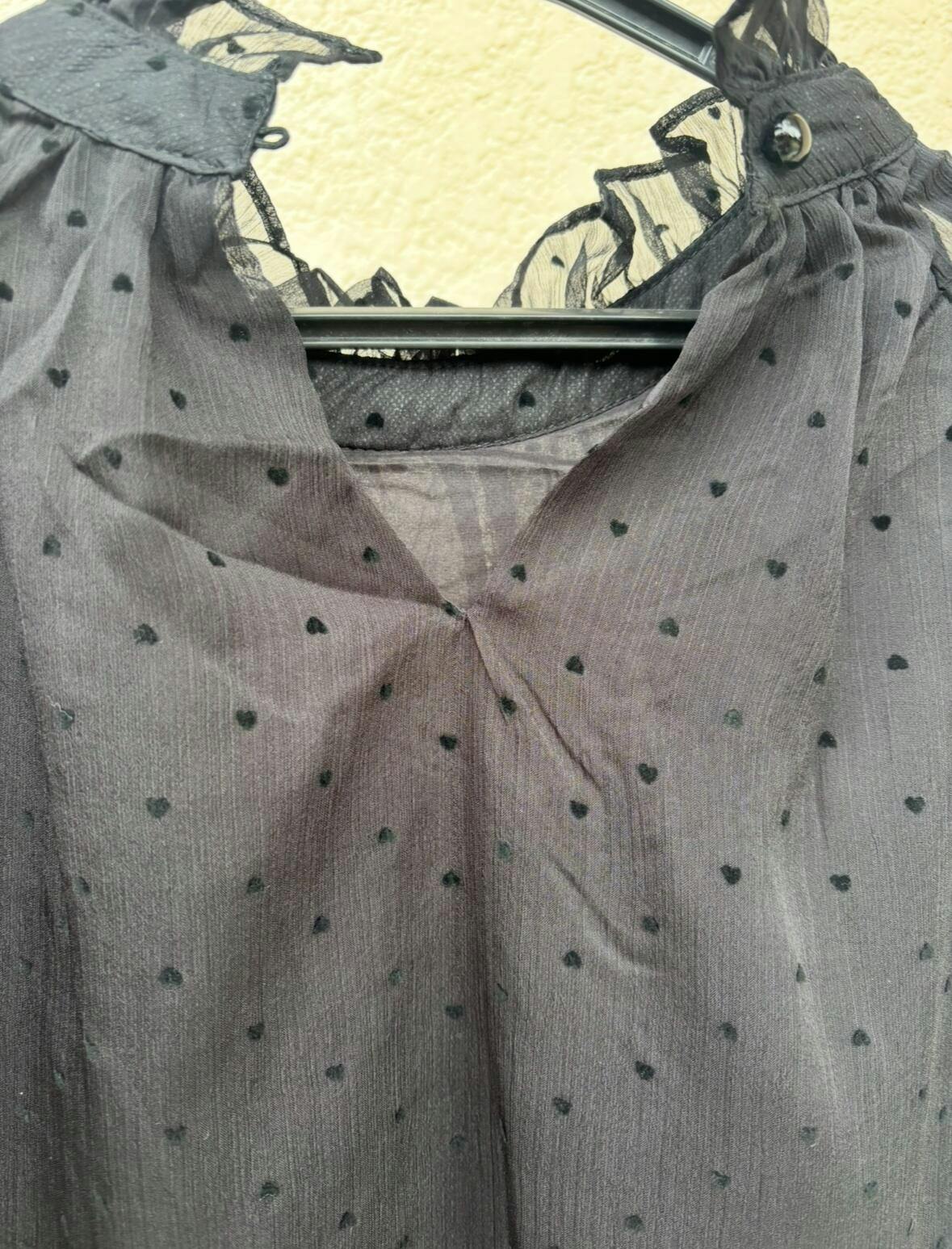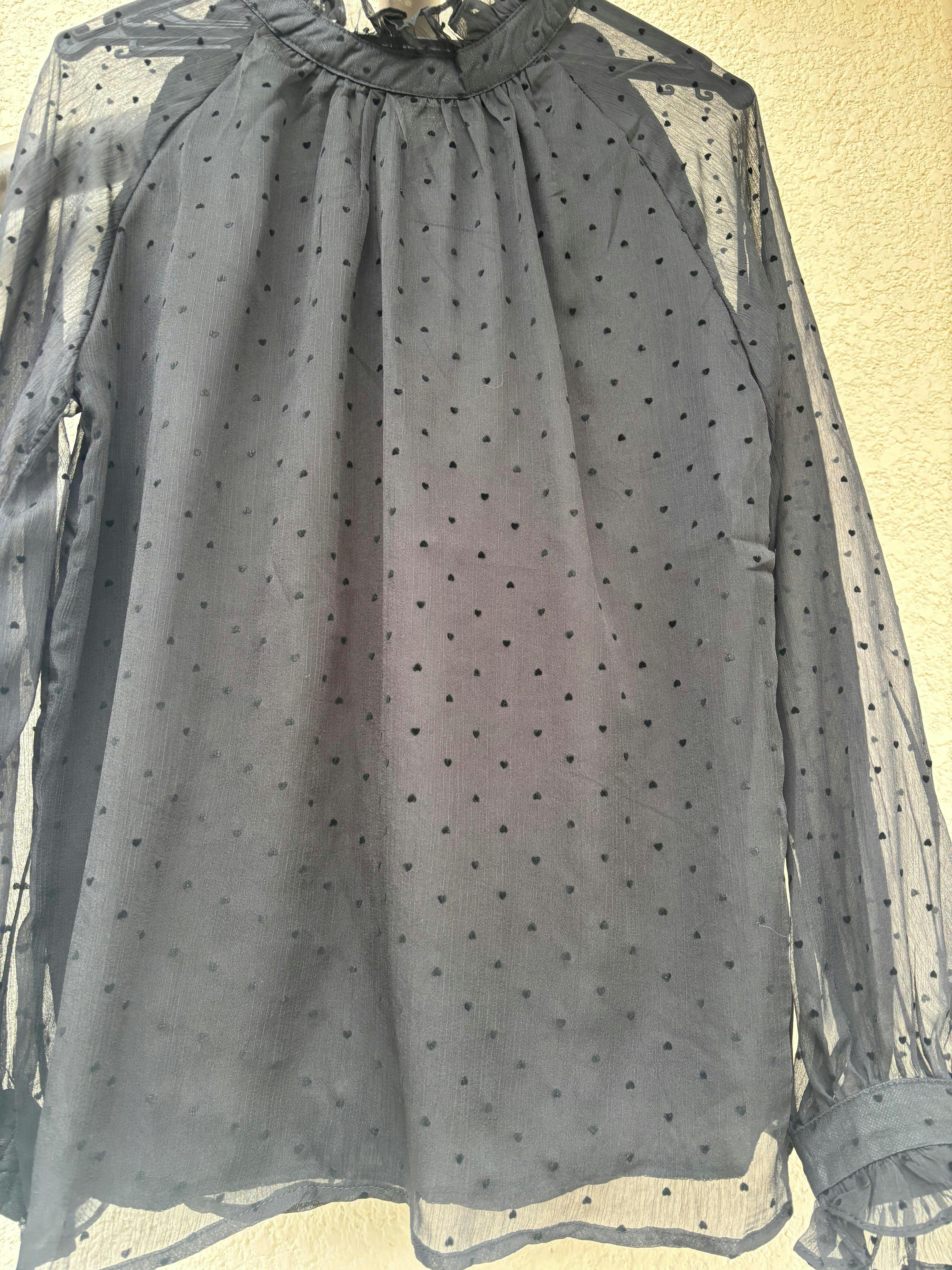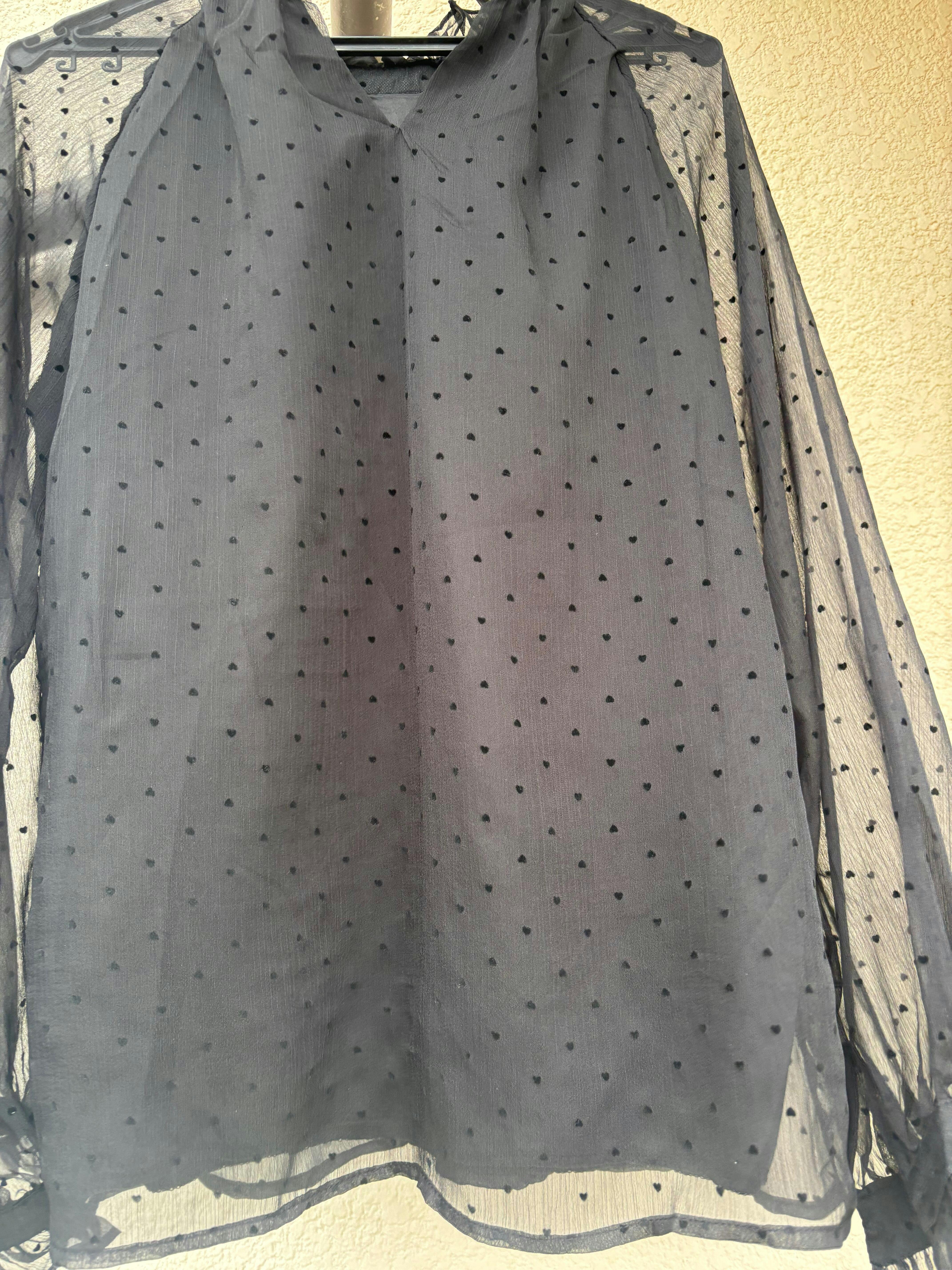 Mサイズ 当日発送可【透け感で上品な甘さをプラス】シアーハートドットハイネックブラウス