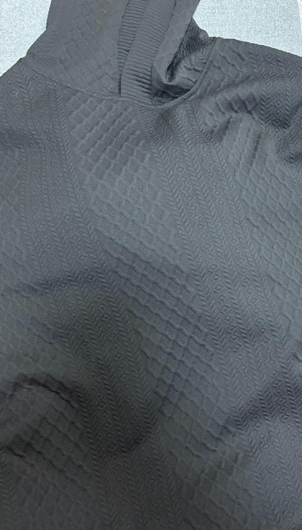 • 立体感のあるジャカード編み: 表面に凹凸を感じる幾何柄の編み地が特徴。シンプルなカラーでも奥行きのある着こなしに。