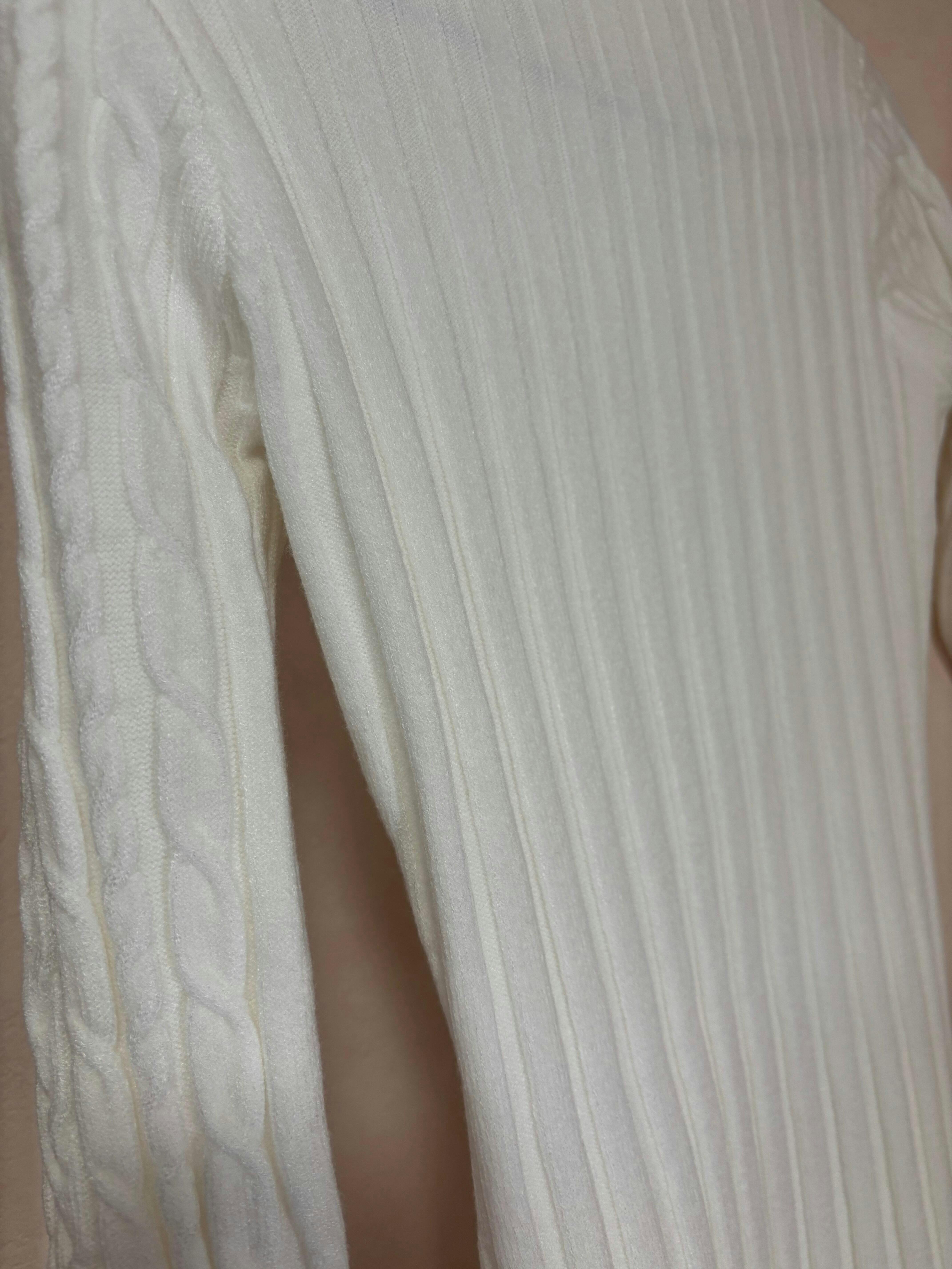 • タイトフィットで女性らしいシルエット: 伸縮性のあるニット素材がボディラインにしなやかにフィットし、メリハリのあるシルエットを演出。