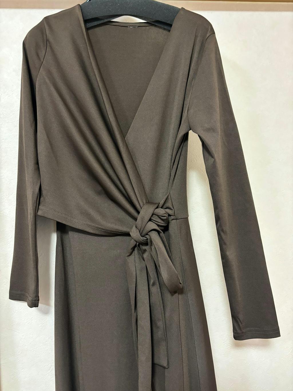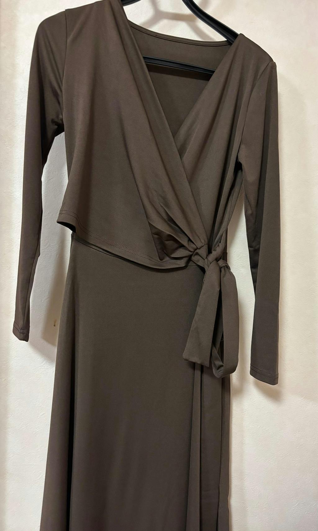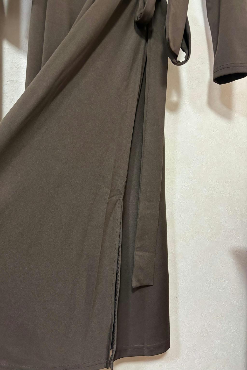 【腰紐で魅せるカシュクールデザイン】スリット入りロングワンピース