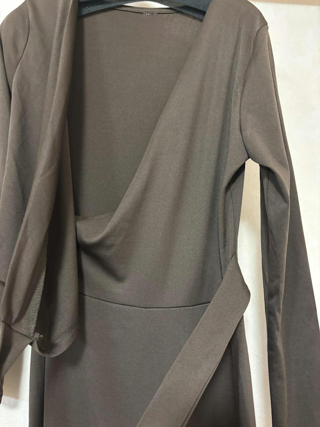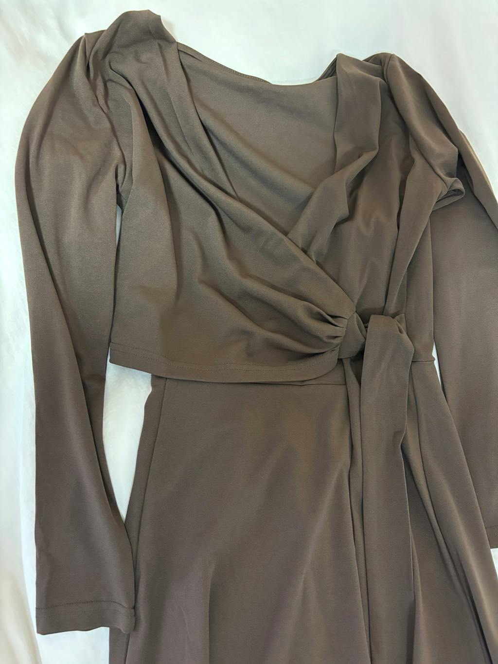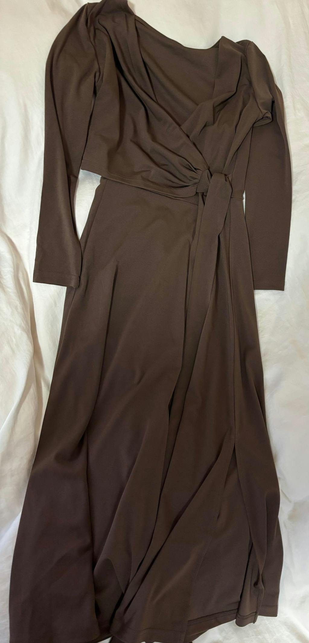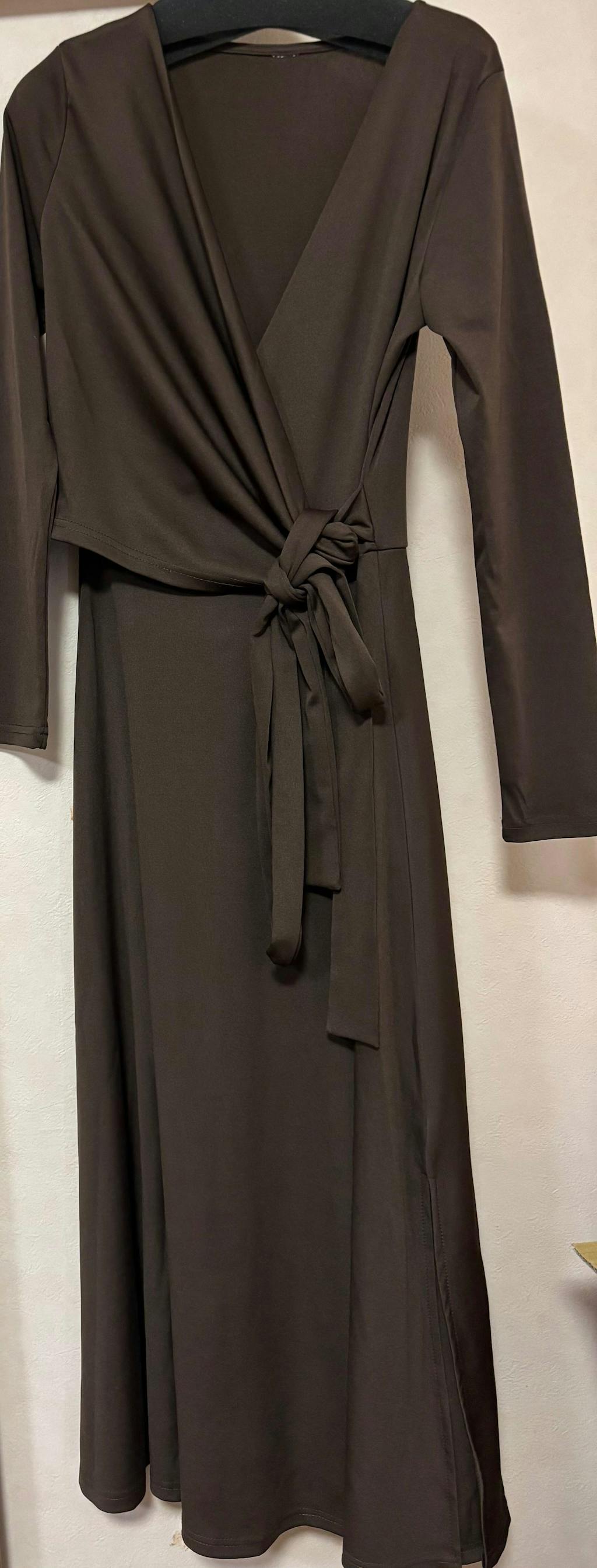 【腰紐で魅せるカシュクールデザイン】スリット入りロングワンピース