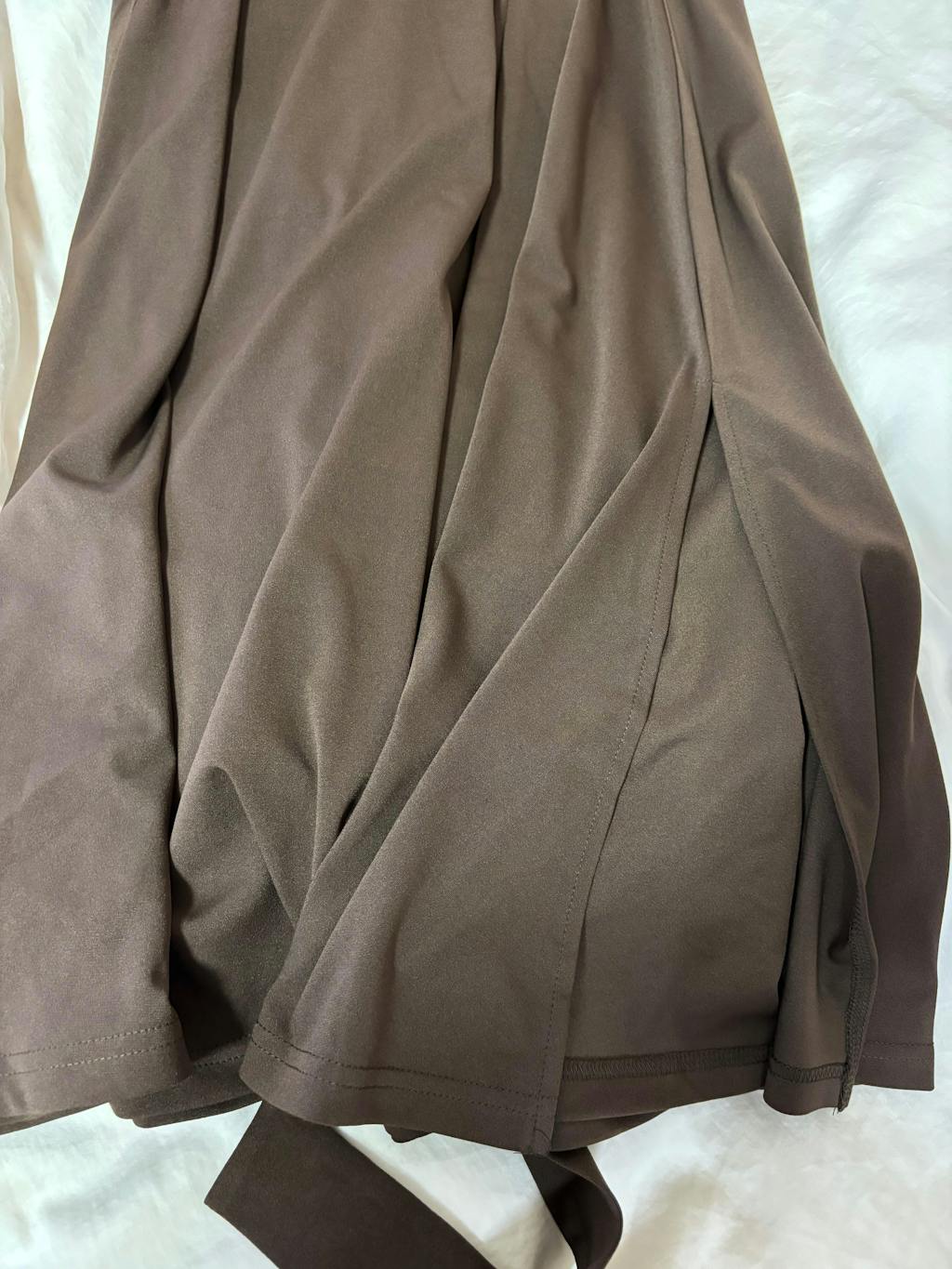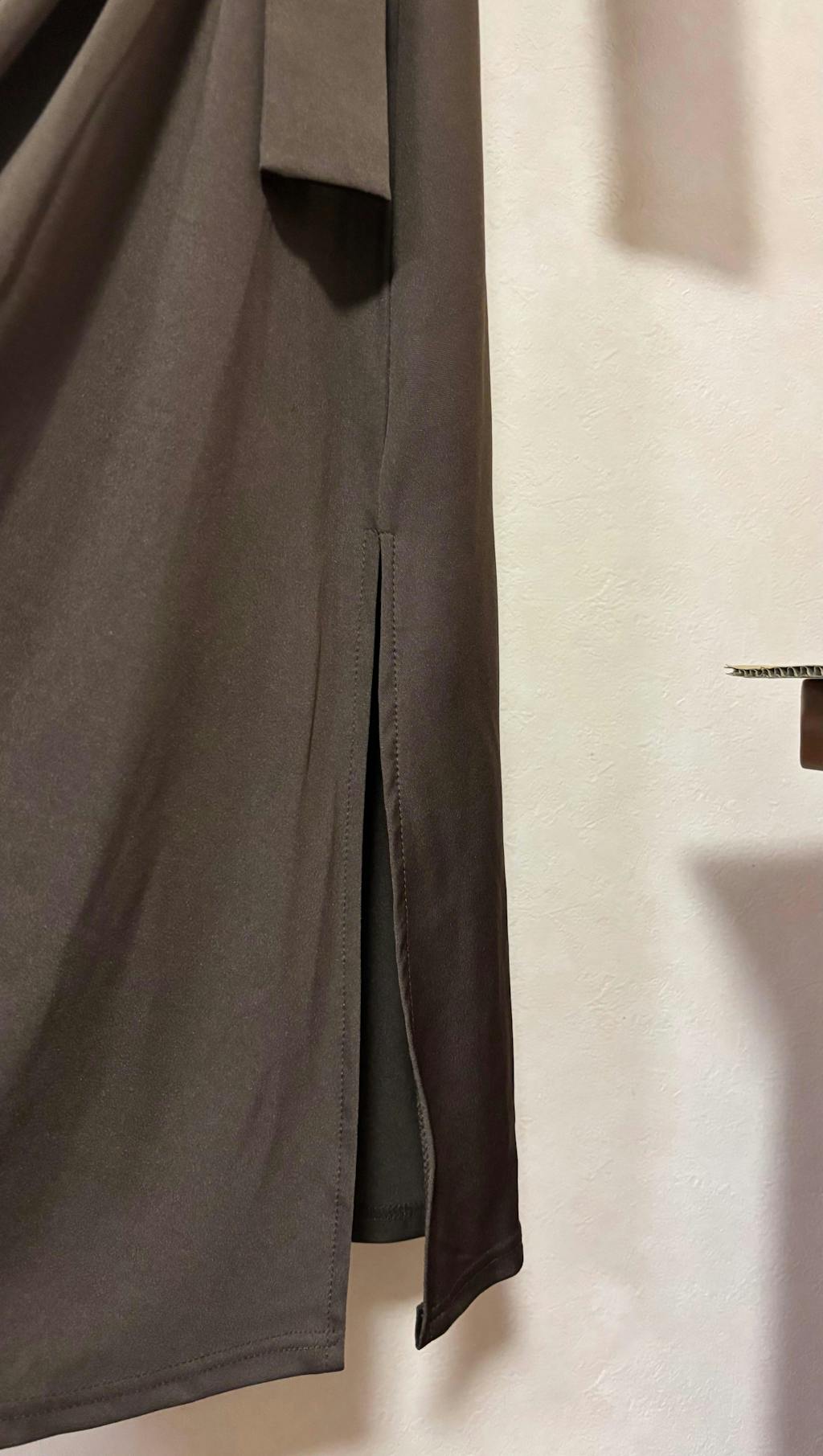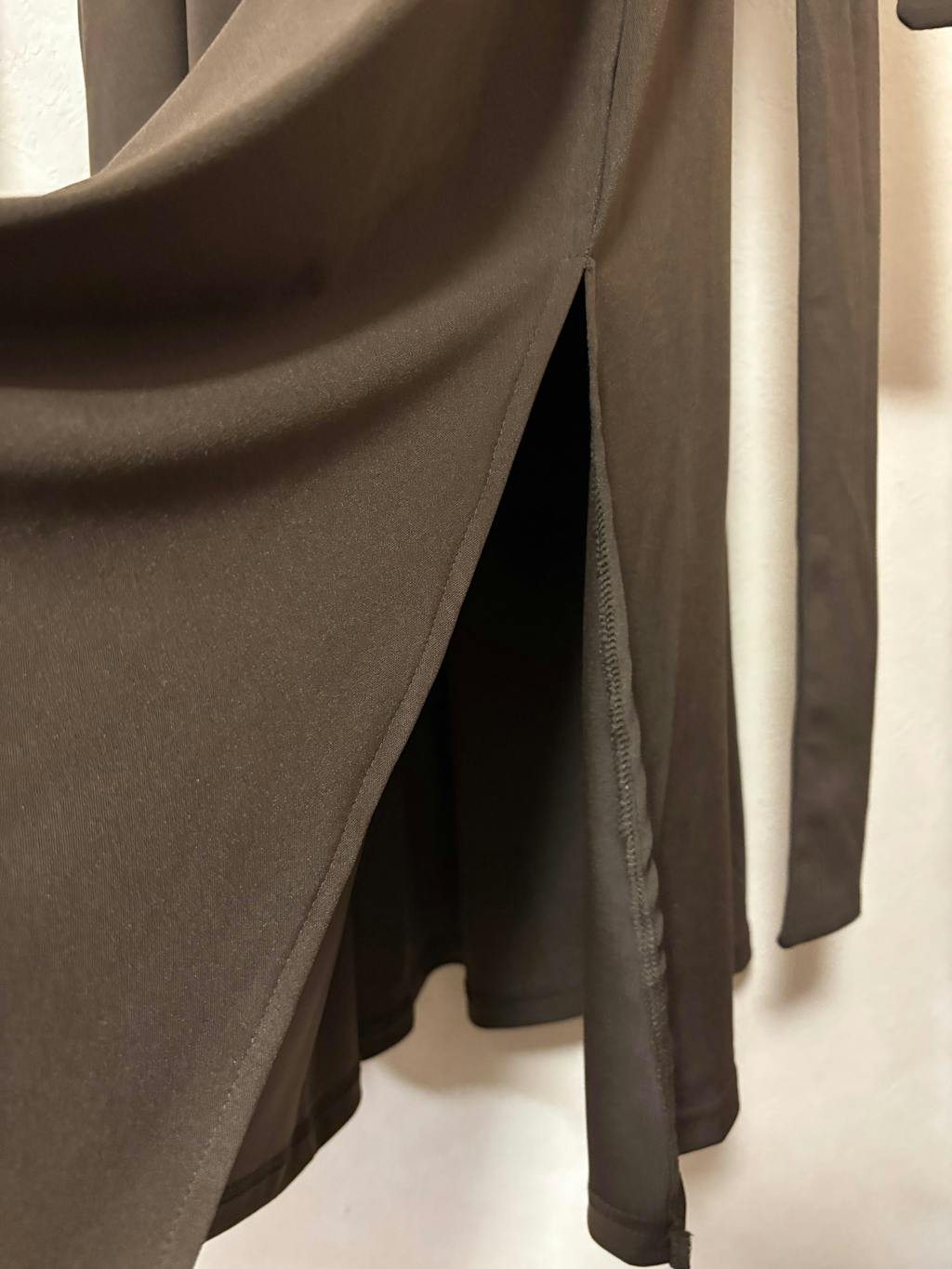 • ロングフレア裾のスリットが色っぽさをプラス: 歩くたびにちらりと見える脚がセクシー。動きやすさも確保しながら、女性らしい雰囲気を演出します。