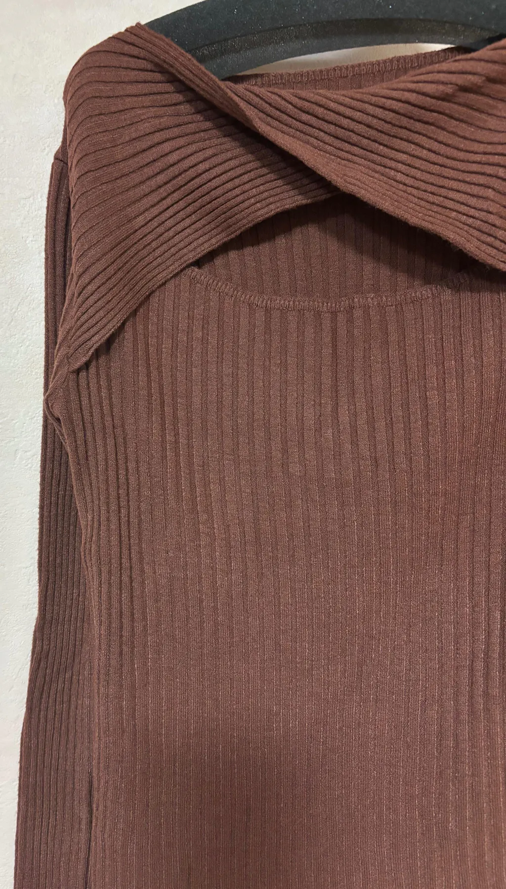 程よい肌見せでセクシーさを演出しつつ、上品なリブ素材が清潔感もキープ。