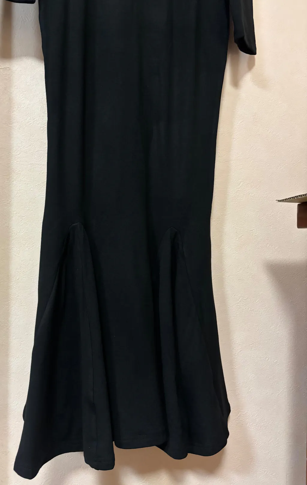 • タイトシルエット×マーメイド裾: 上半身からヒップにかけてはタイトにフィットし、裾がフレアに広がるマーメイドライン。お尻や腰まわりを美しく魅せ、男ウケも期待できるデザインです。