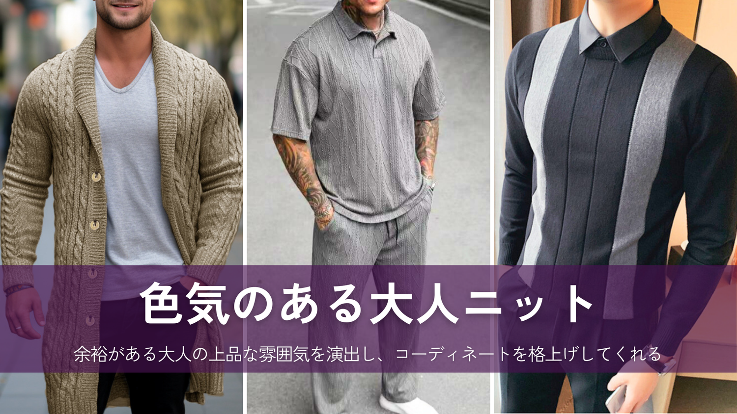 秋冬の大人コーデに欠かせないニット素材アイテムを厳選。セットアップやニットジャケット、カーディガン、セーターまで幅広く展開。リラックス感がありながら上品に決まるスタイルで、自然体のおしゃれを楽しみたい30代・40代メンズにおすすめです。