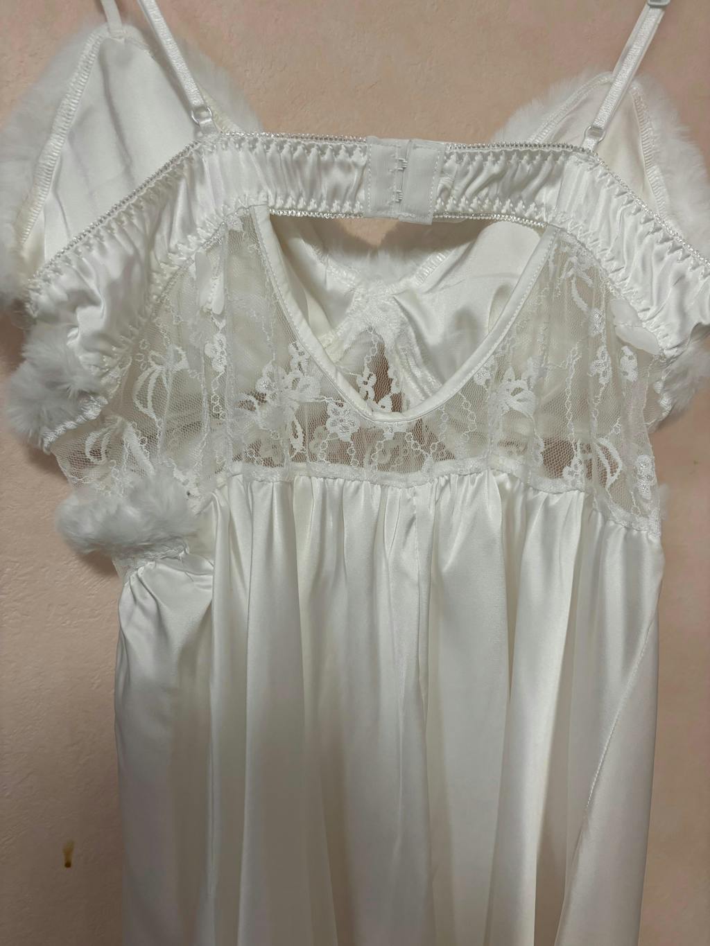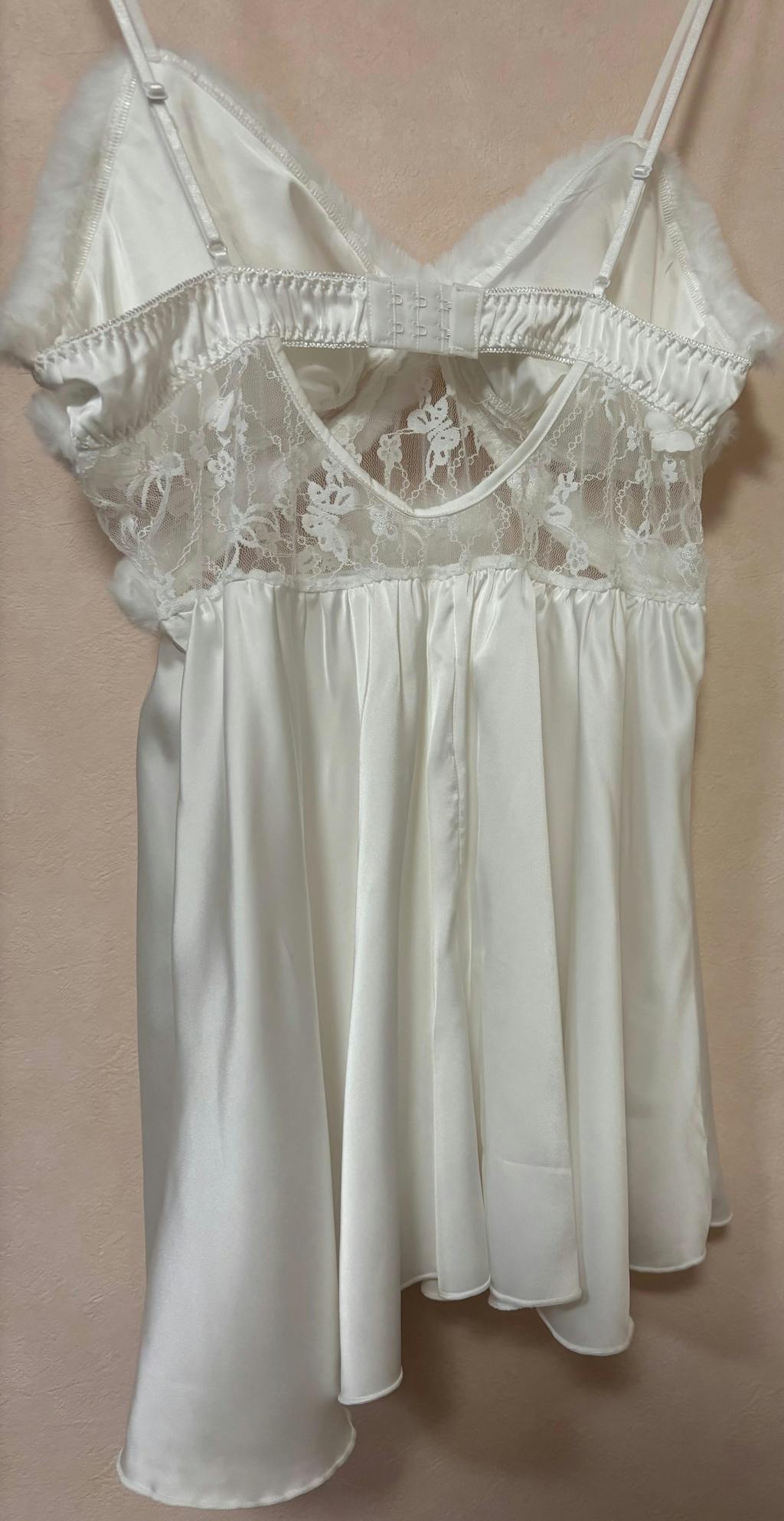 ファー×レース切替 とろみサテンフレアベビードール(胸パッド付き)|選べるガウン付き
