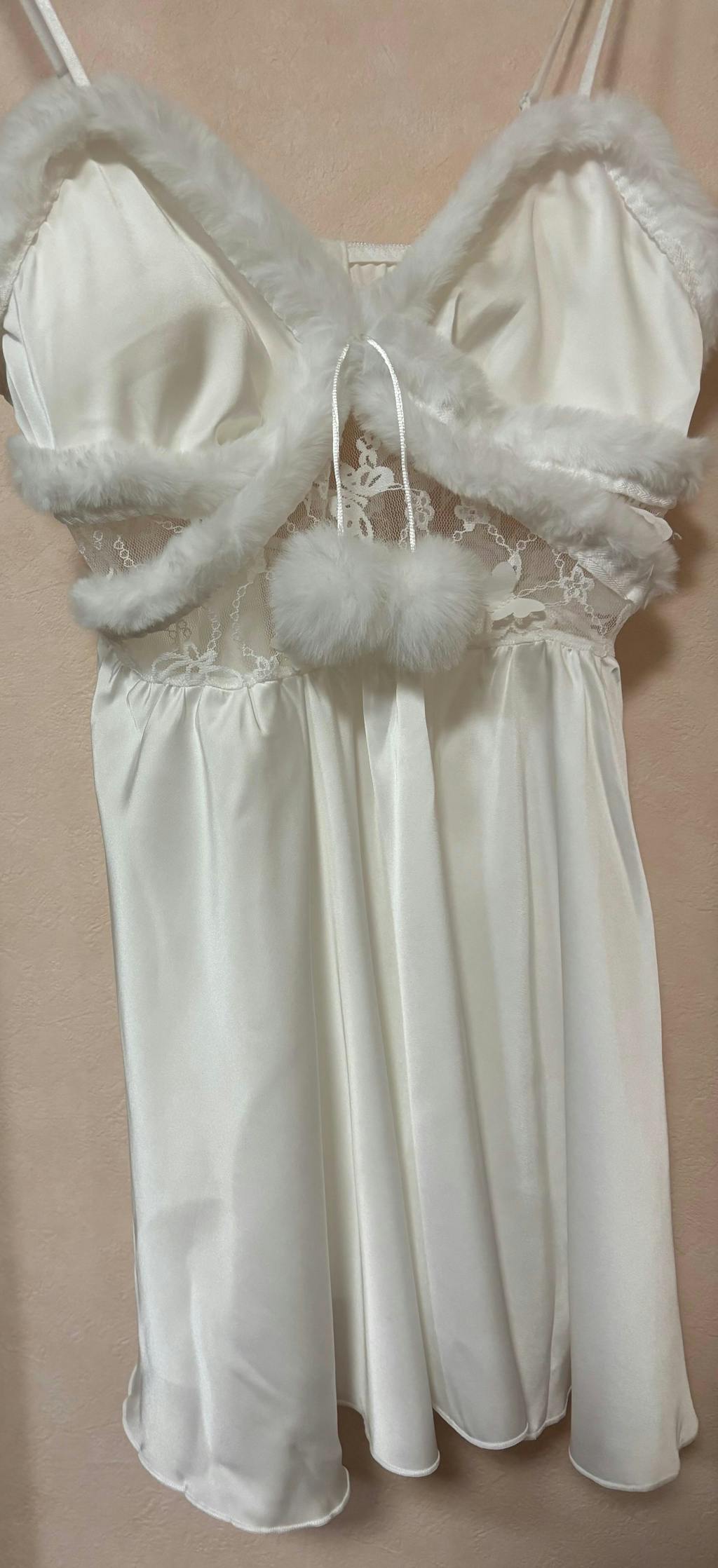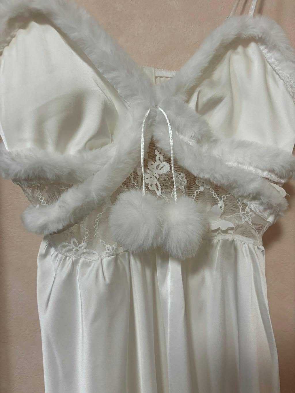 • ふわふわフェイクファーが男ウケ抜群: バストラインに沿ったファーが柔らかいムードを演出。思わず触れたくなる“愛されディテール”。