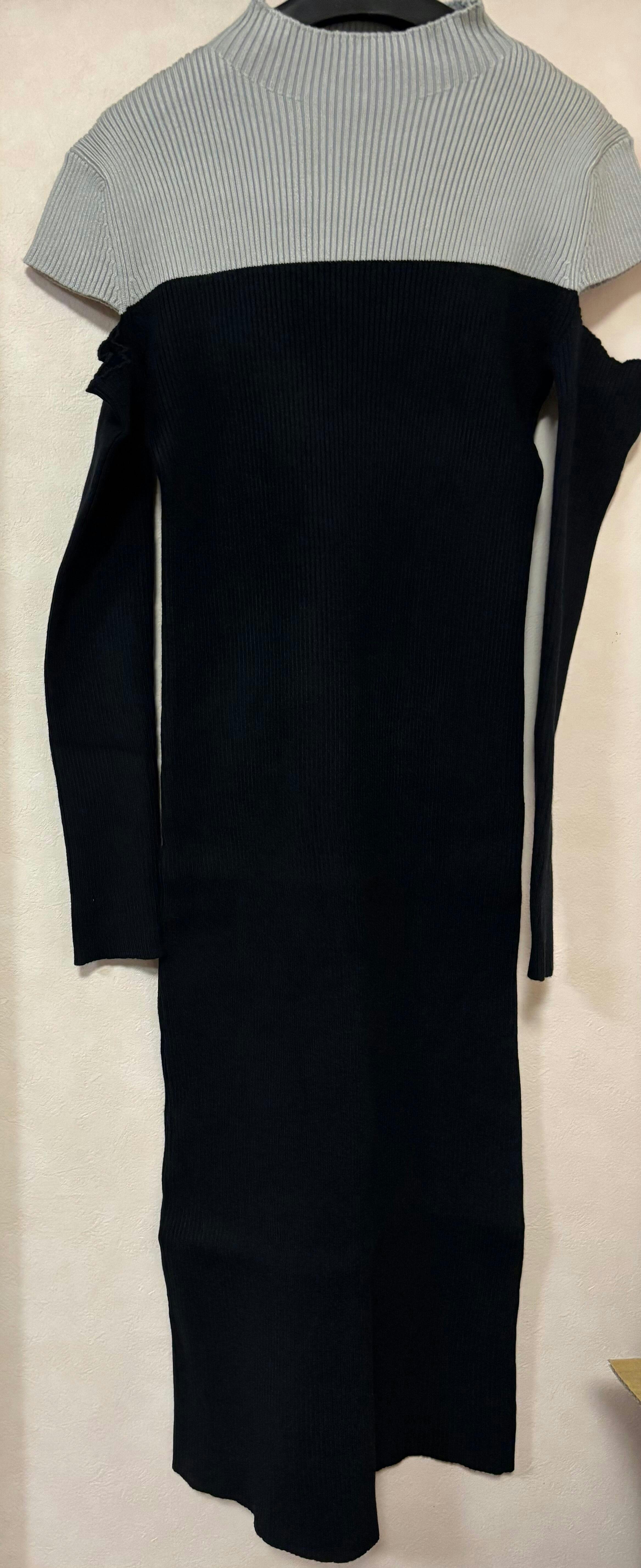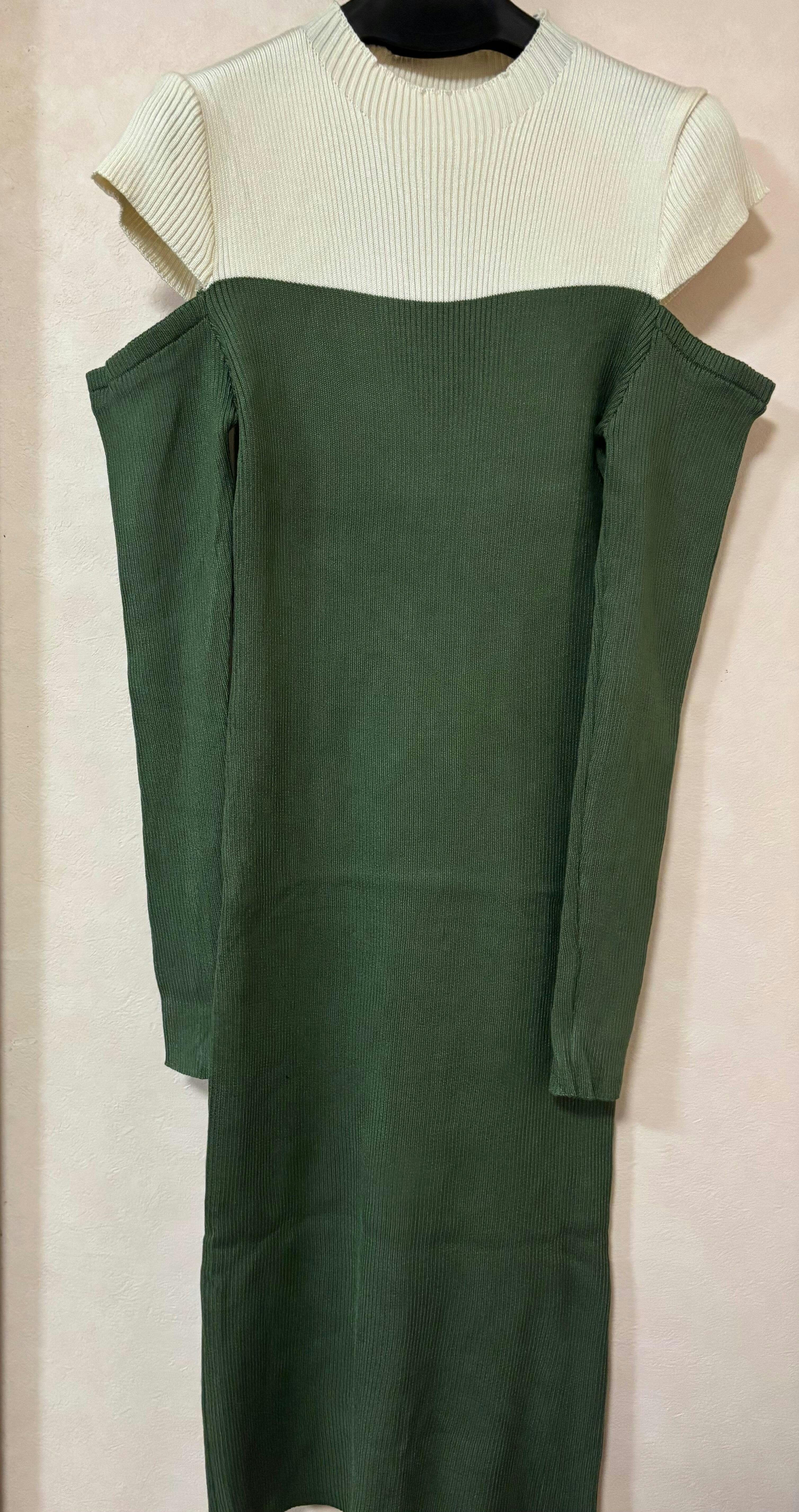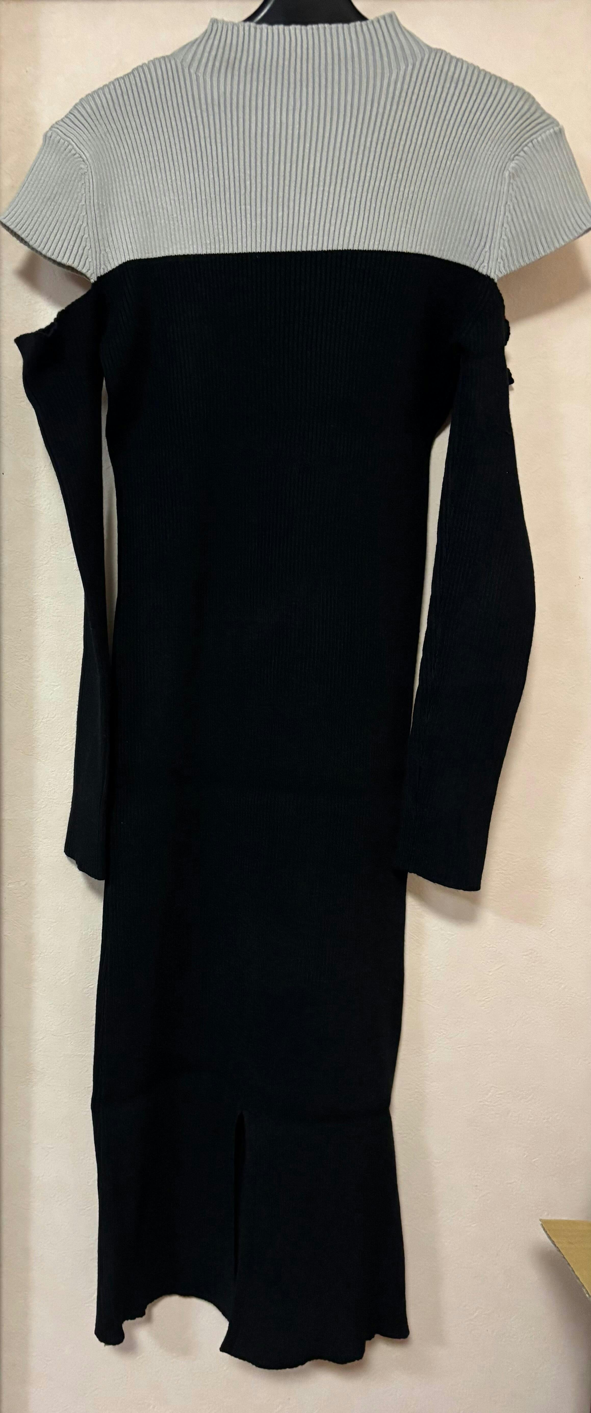 【男ウケ確実】肩見せバイカラーリブニットワンピース