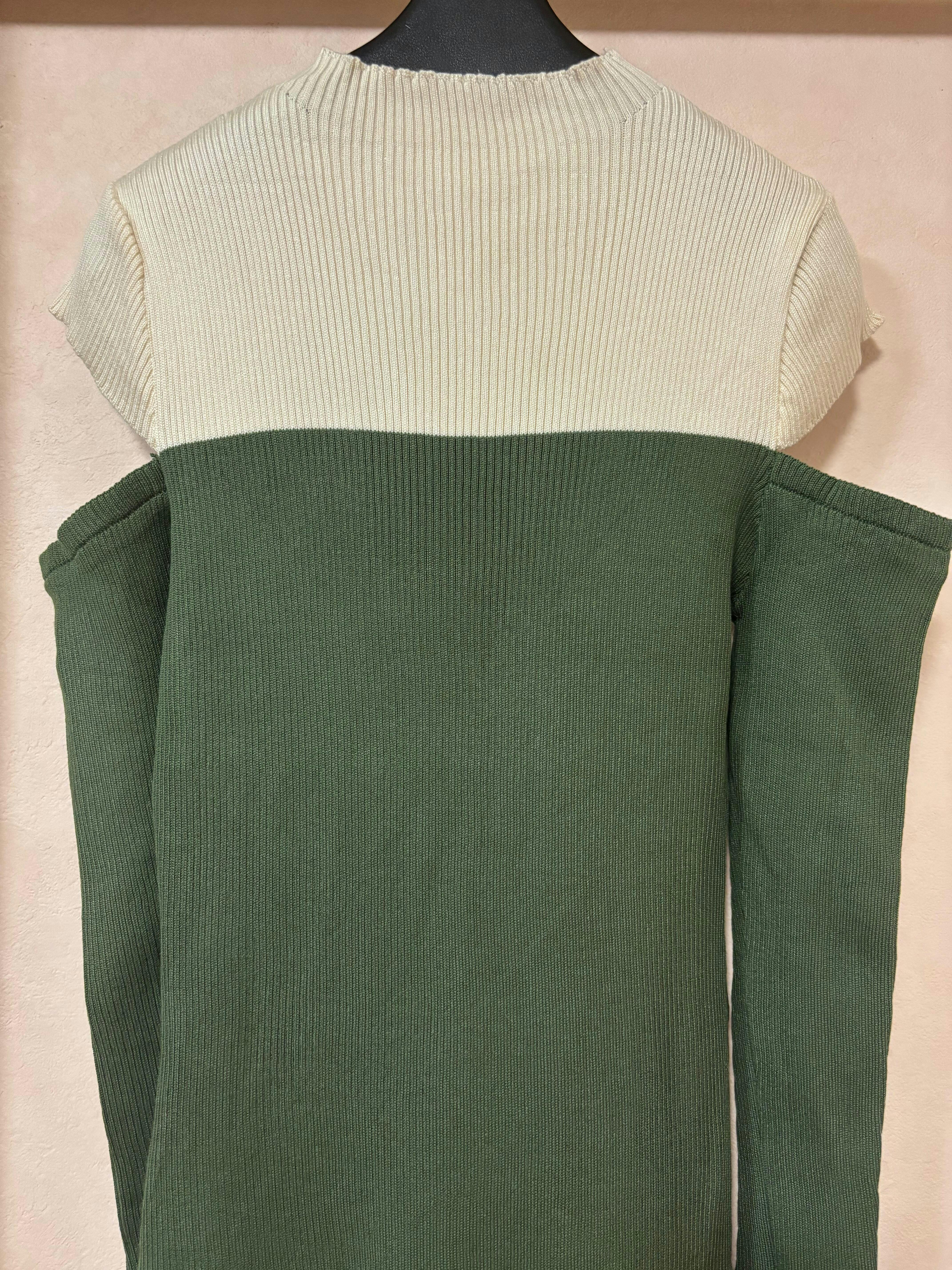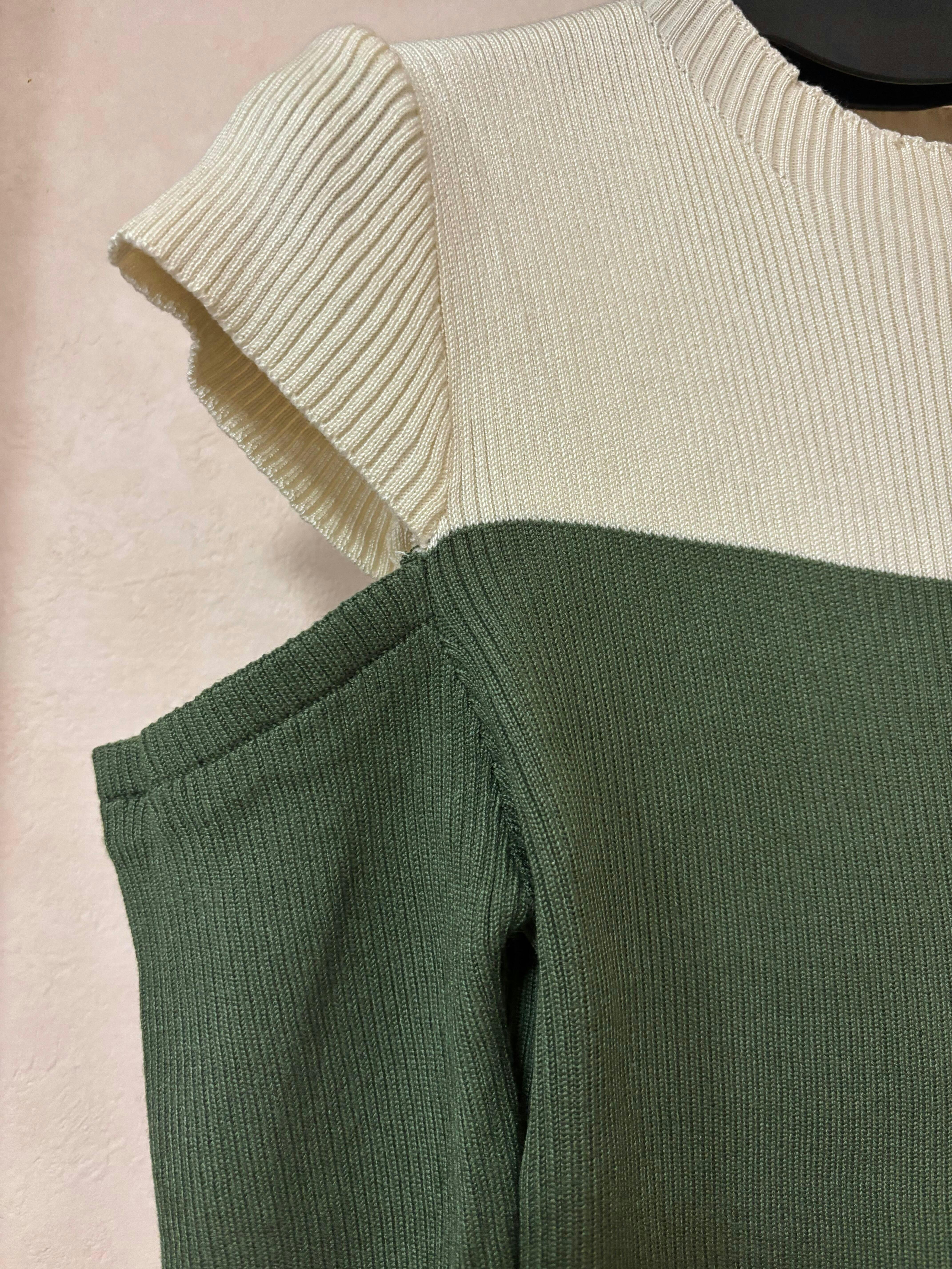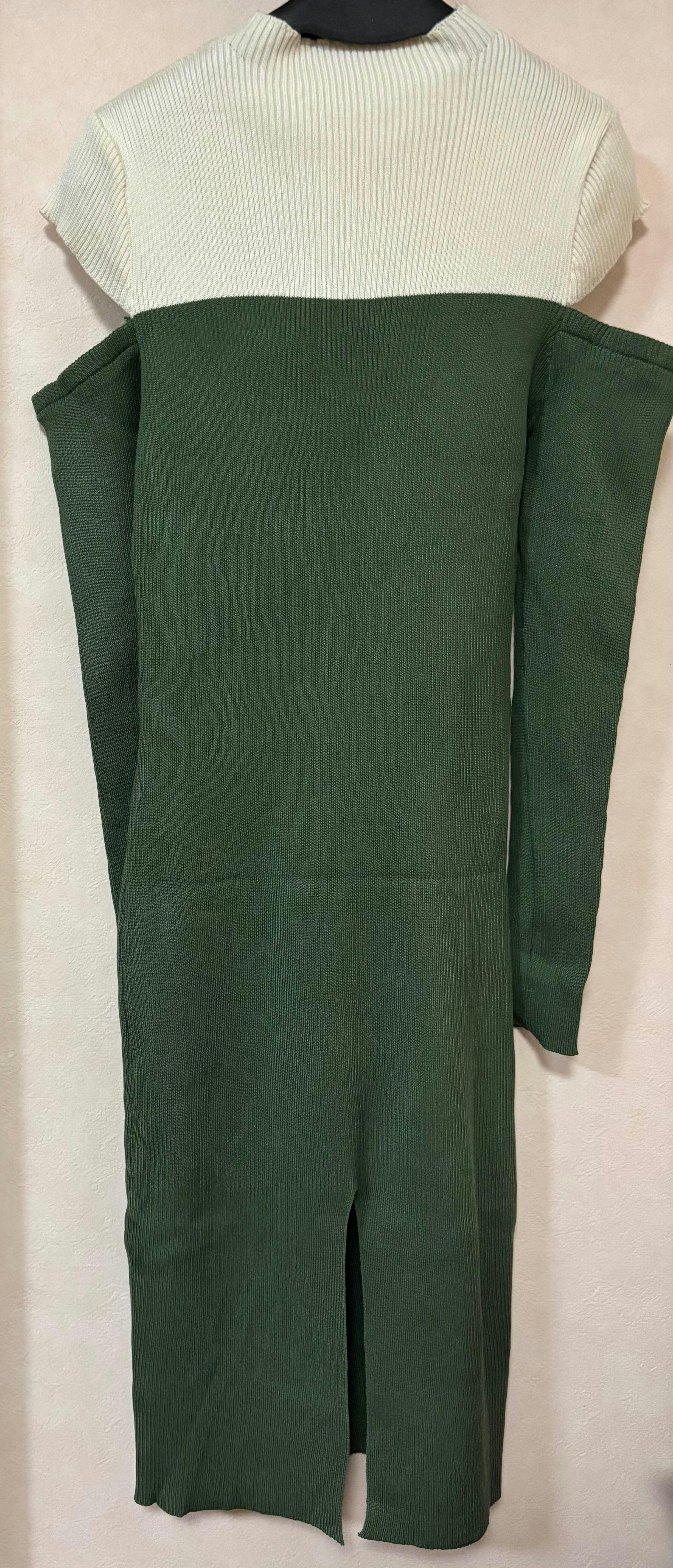 【男ウケ確実】肩見せバイカラーリブニットワンピース