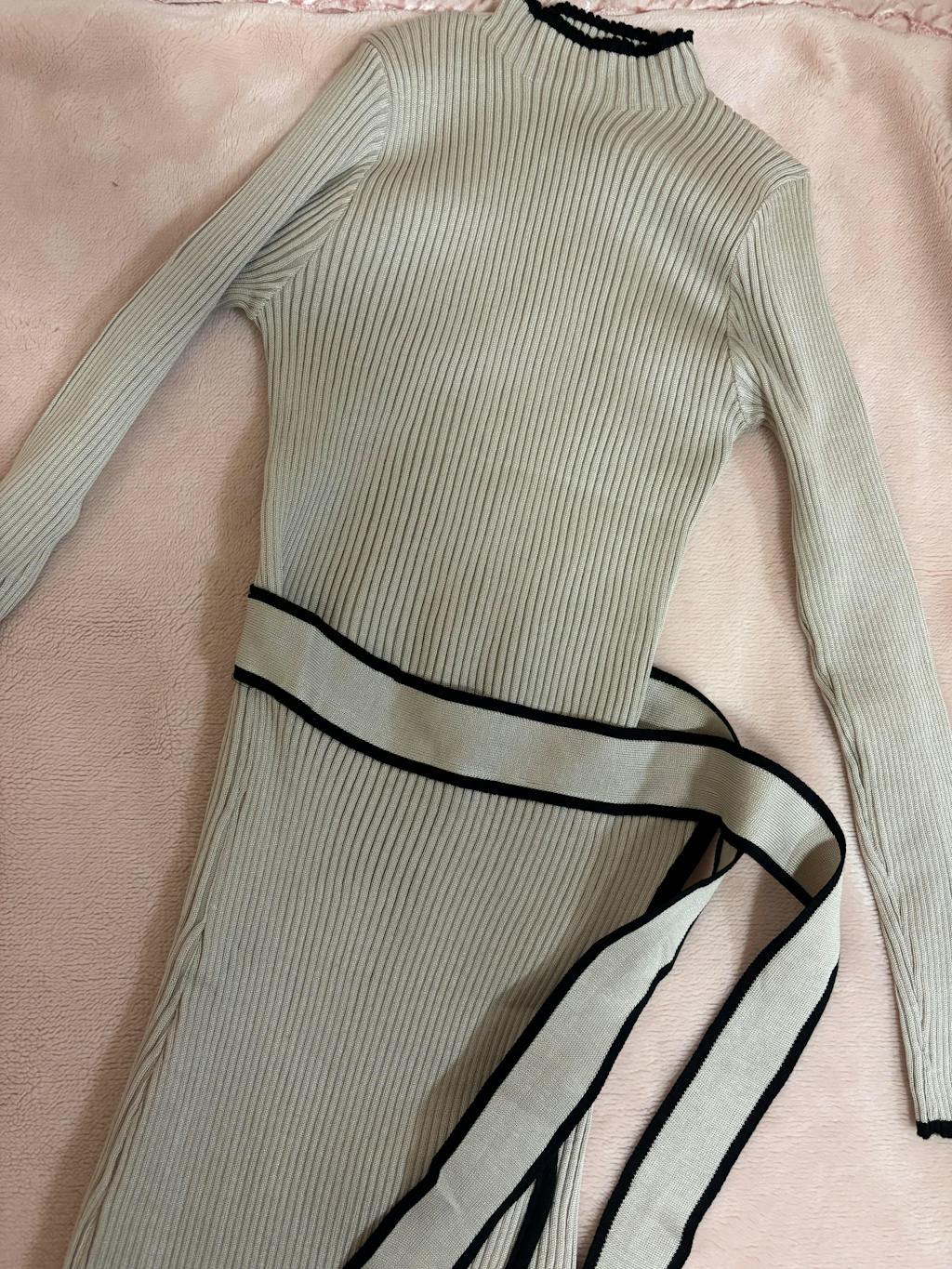 【品のある配色×ラップデザイン】バイカラーリブニットワンピース