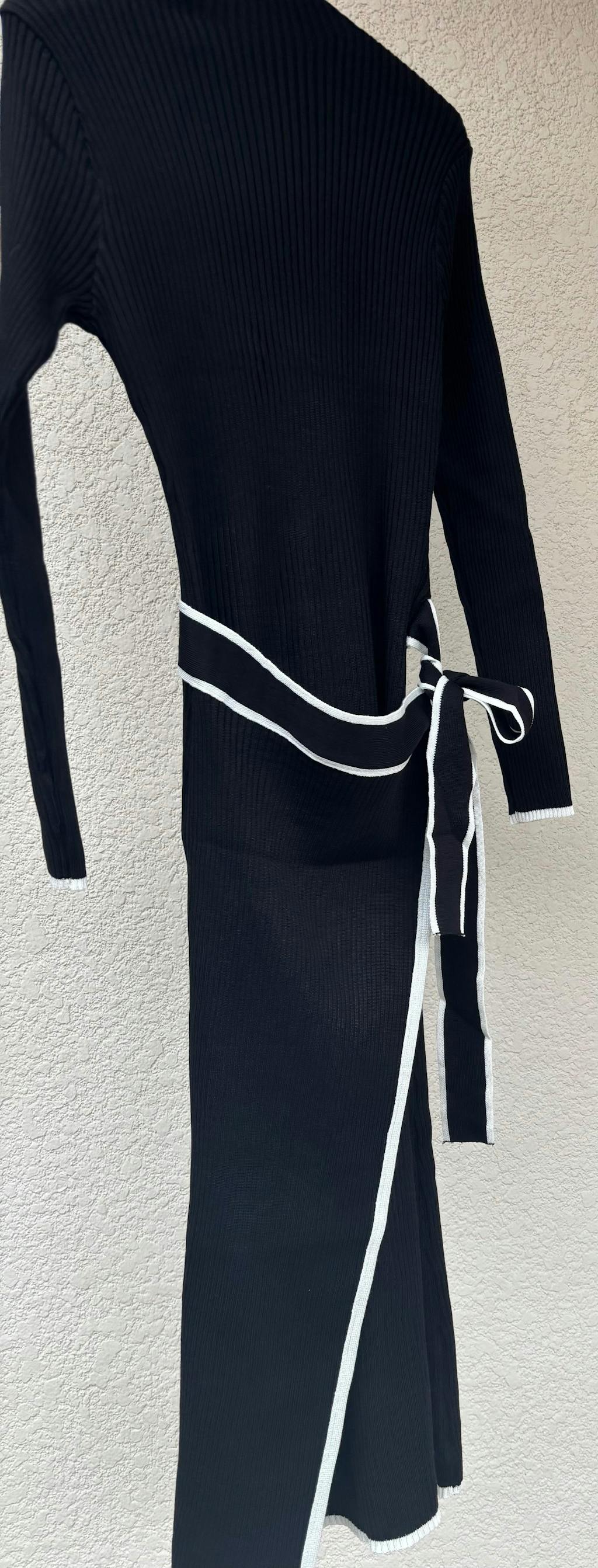 当日発送可【着た瞬間から美人オーラを放つピタめリブニット】バイカラーリブニット ラップワンピース<アウトレットあり>