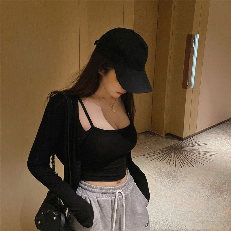 サイズ感:クロップド丈(カーディガン)+タイトフィット(キャミソール)