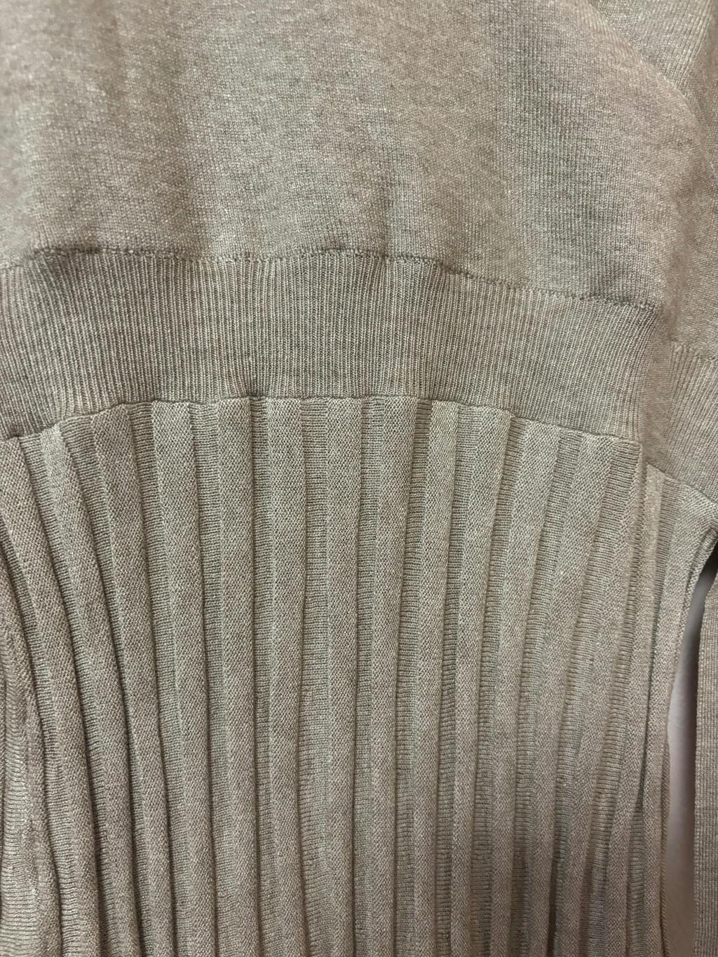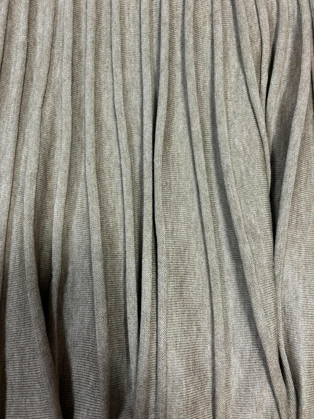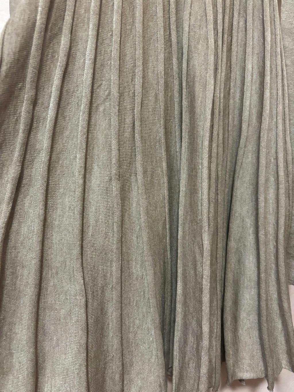 • プリーツ編みスカートのAラインシルエット: ウエストから裾にかけて広がるプリーツが、歩くたびに揺れ感を演出。上品かつスタイルアップ効果も狙えます。