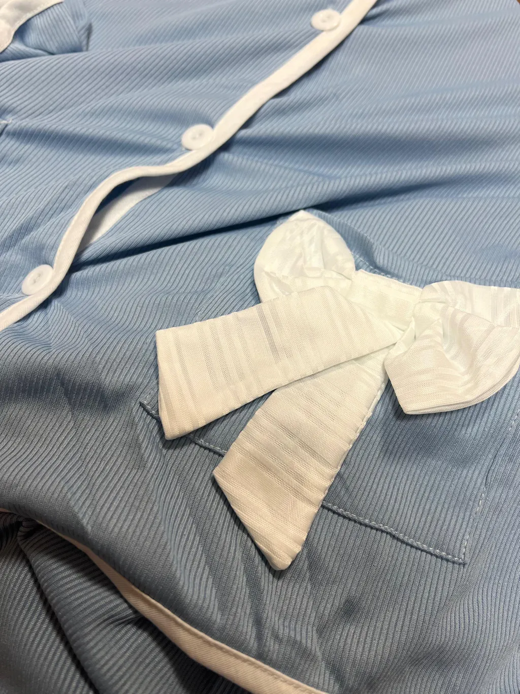 「リボンが付いていると甘めかと思いきや、落ち着いたカラーやパイピングで大人っぽく見えるのがいいですね。