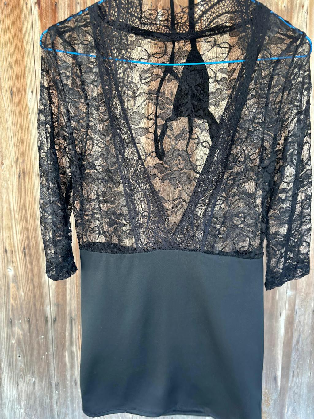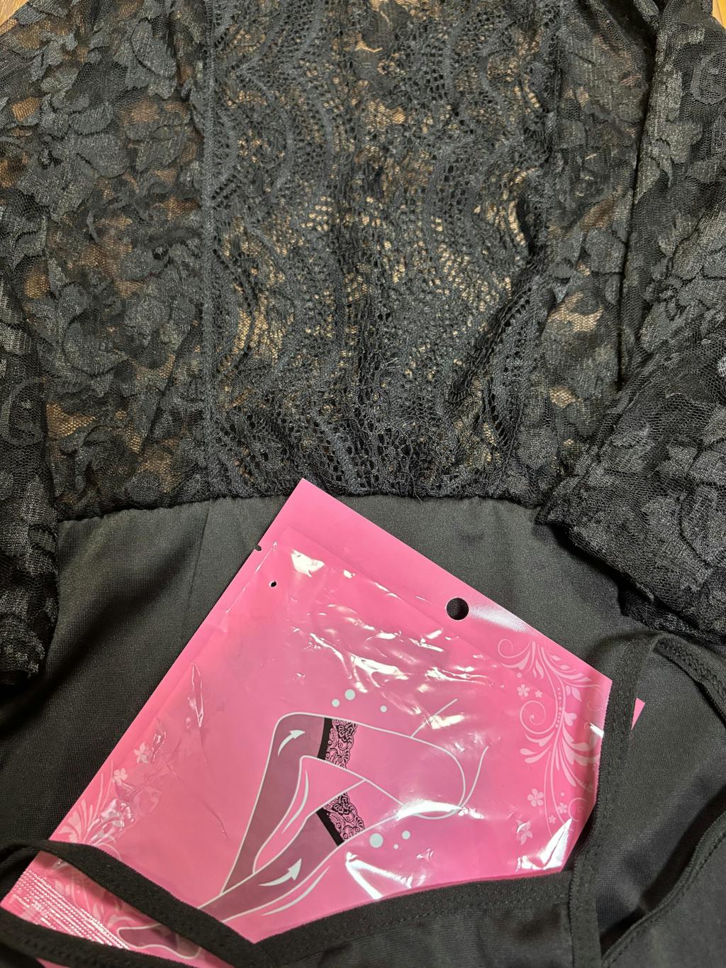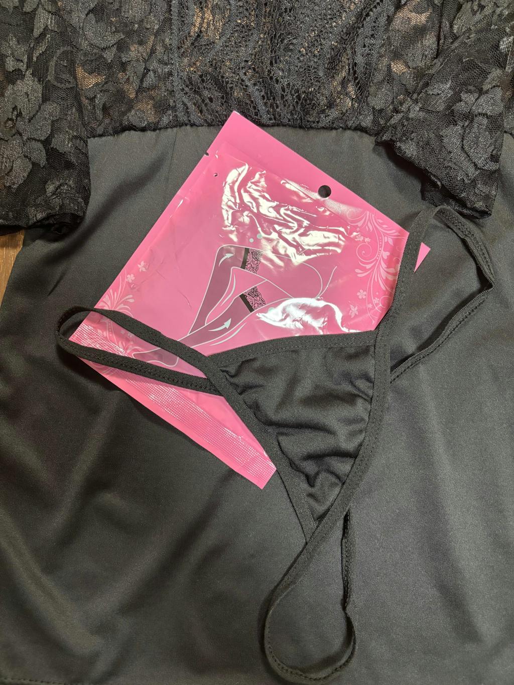 ブラック 当日発送可【レースから覗くボディに釘付けに】深V透けレース5分袖タイトドレスベビードール(Tバック付き)