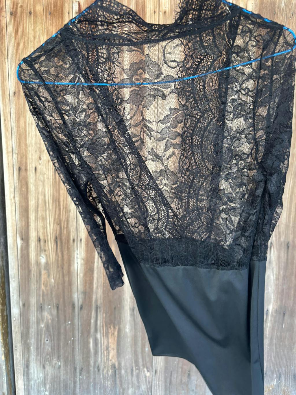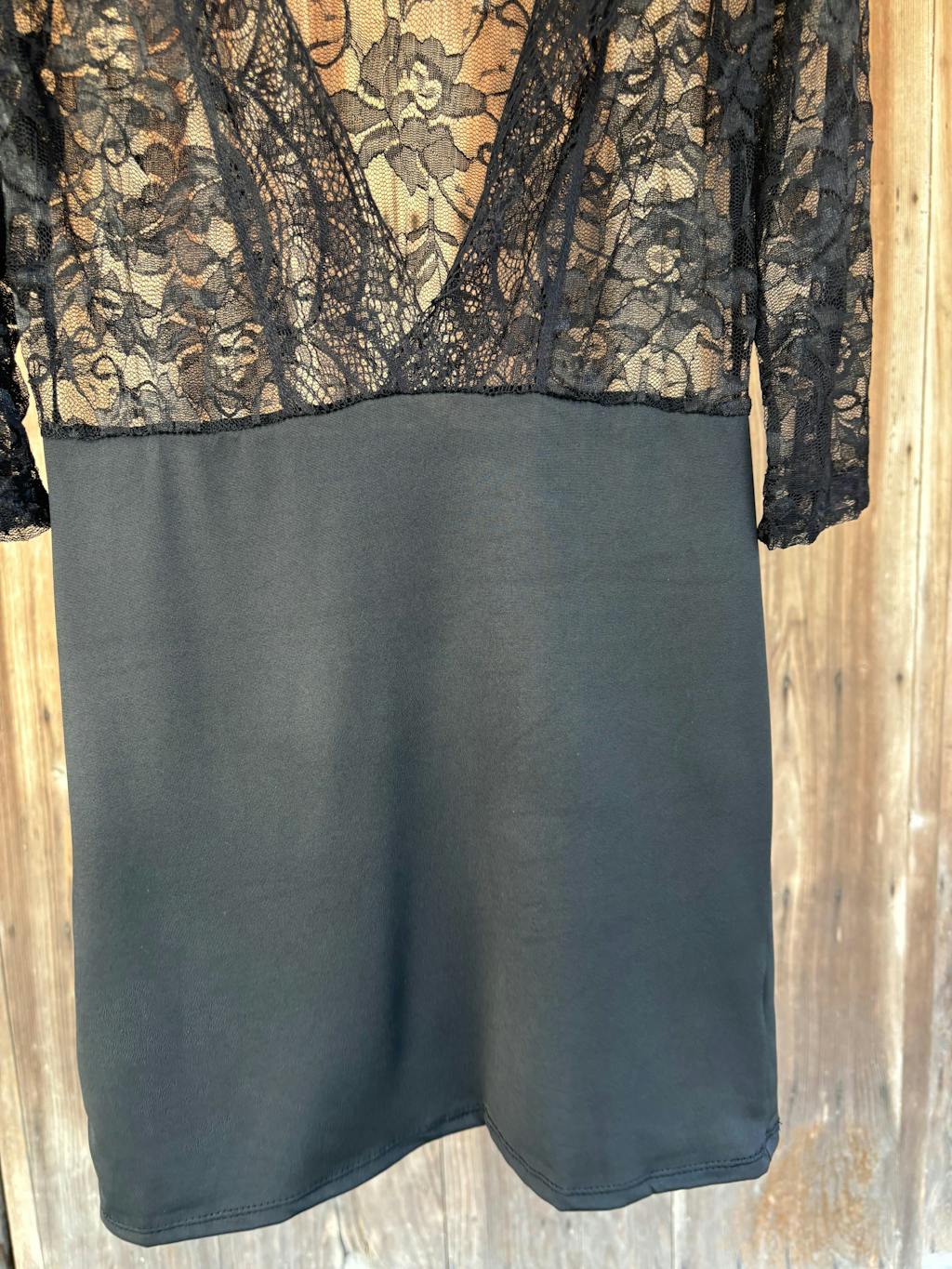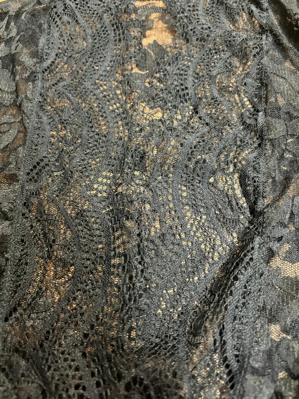 ブラック 当日発送可【レースから覗くボディに釘付けに】深V透けレース5分袖タイトドレスベビードール(Tバック付き)
