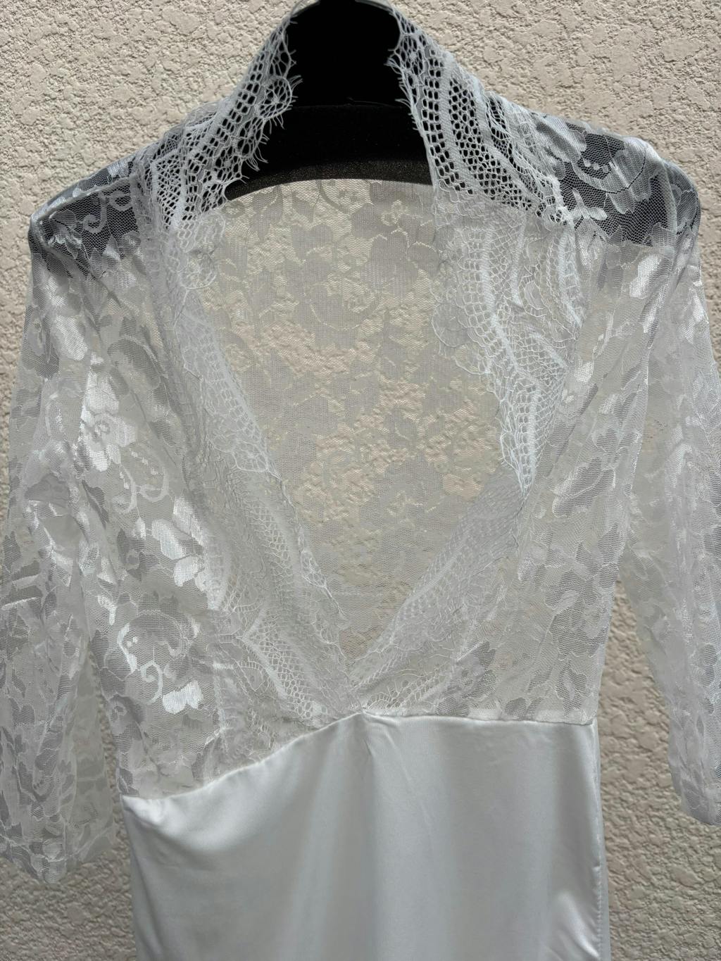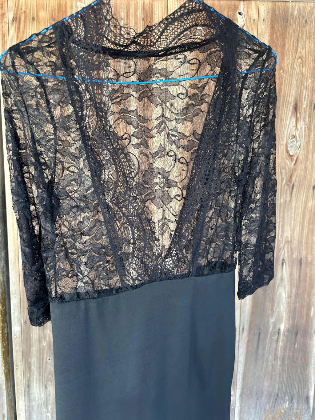 レースを贅沢にあしらったトップス部分と、ワンカラーでまとめたタイトドレスが織りなす絶妙なバランス。