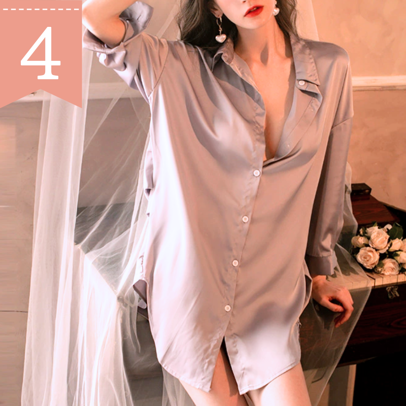 【光沢シャツワンピ】男ウケをさりげなく狙う華奢見えルームウェア