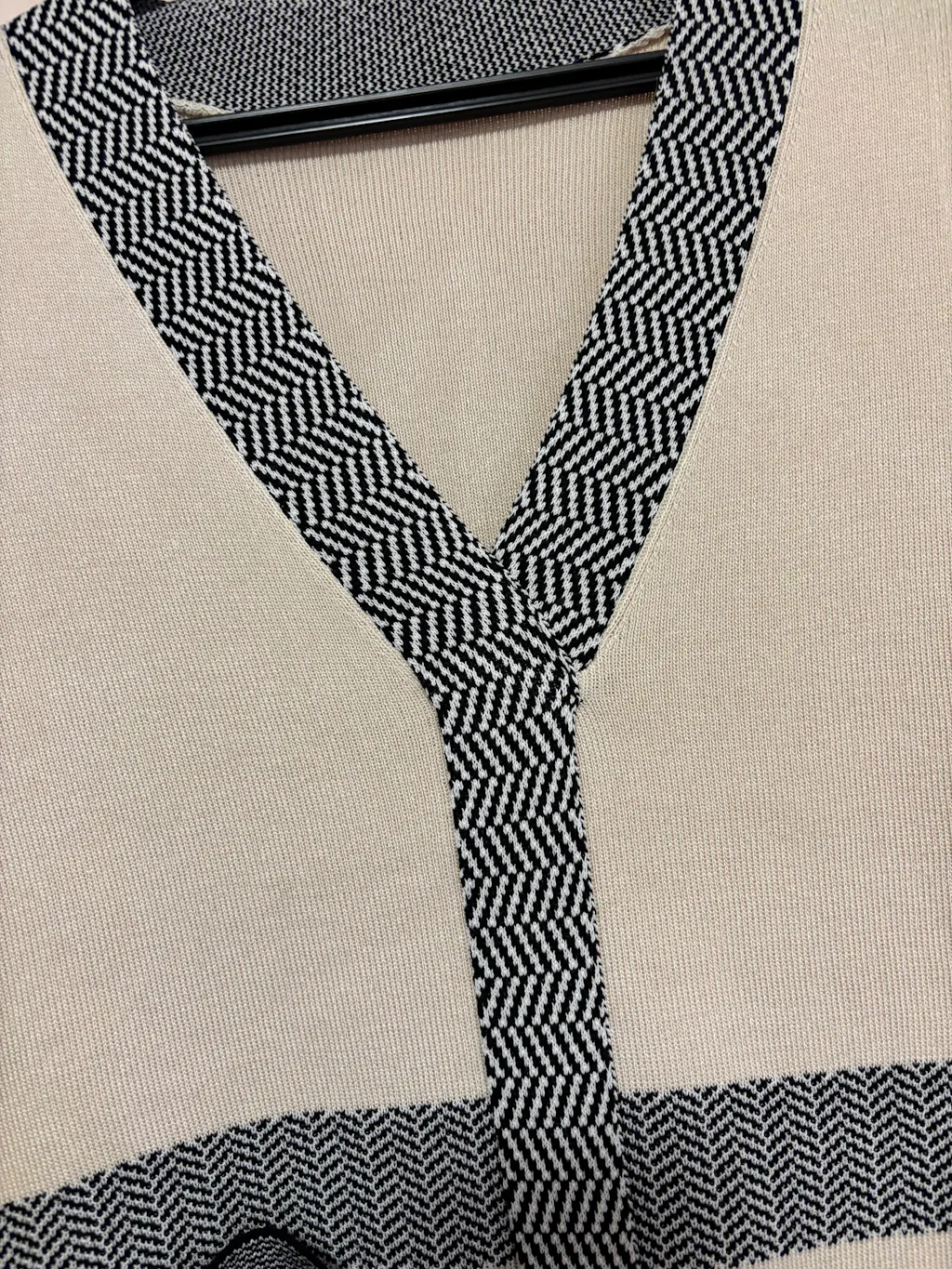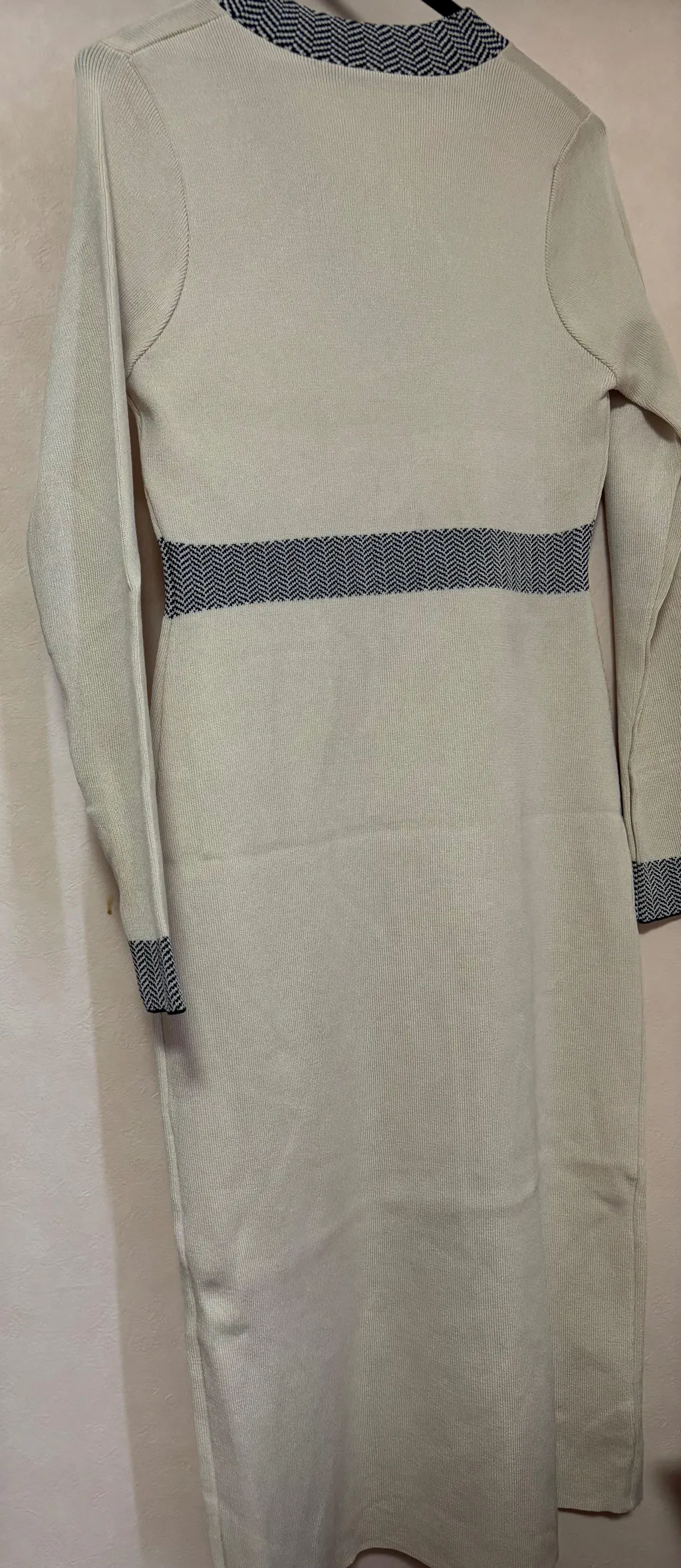 Vネック配色ニットワンピース